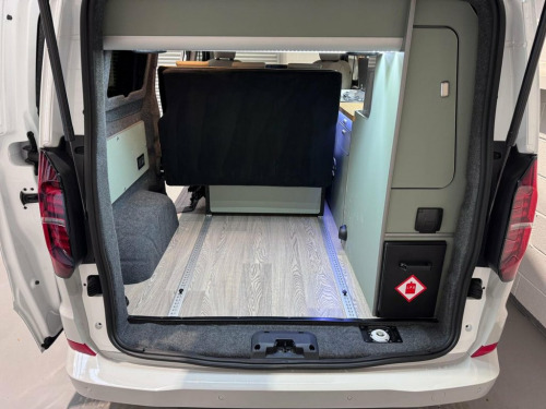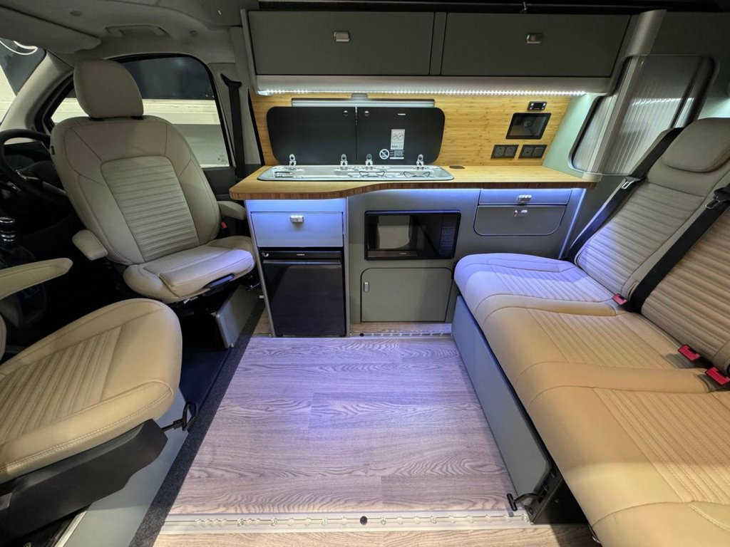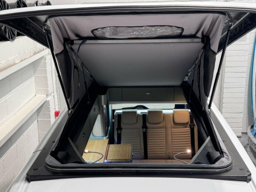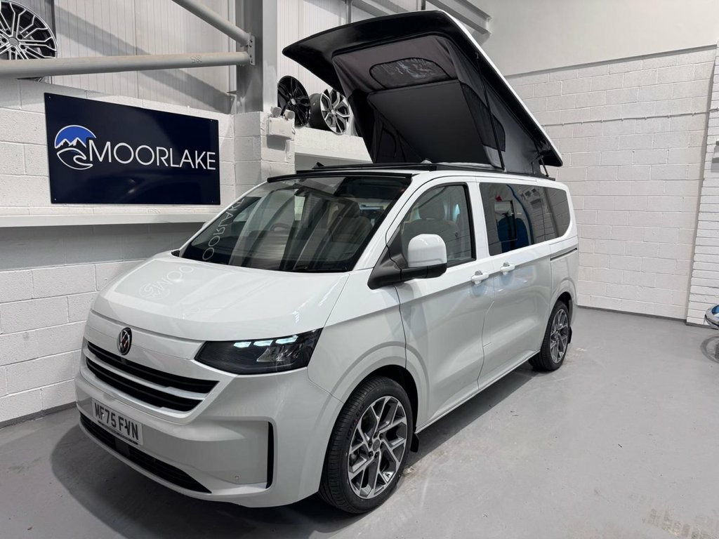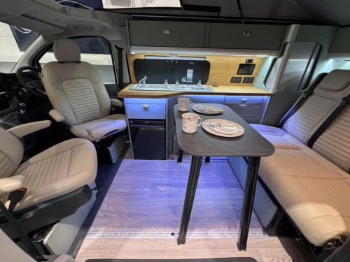Welcome to the ALL-NEW VW Transporter (also know as the T7). This is the BRAND NEW version of this iconic camper with over 75 years of pedigree. We have these in stock now, and more vans available to redesign to your preferred specification. These vans come with 5 YEAR warranty and 5 YEAR servicing included. We also offer a 5 YEAR warranty on the interior campervan conversion (Ts and Cs apply). The standard spec on all our new Transporters is as follows: CAMPER SPEC: • Three-seater rear seat on sliding rails, bringing your passengers closer to you, giving you a huge amount of boot space. • Solar panel • Night heater • Rear shower • Microwave • Gas hob • Sink with running water • Electric 240v hookup • 12v leisure battery • Isofix on rear seats • 4 berth with sprung bed platform up top • Scenic roof (opens up completely) • Integrated table • Van Shades Window Blinds • USBs • Wireless phone charger • LED lighting • 50L fridge with freezer compartment VAN SPEC: • Rear speakers • DAB • Car play • Keyless start • AC • Bluetooth • Touchscreen • Cruise Control • Multifunction Steering Wheel • Keyless Start • Parking sensors • Electrically adjustable door mirrors • Front electric windows ALSO ON THIS CAMPER: • Rear camera • Heated rear screen, • Heated front screen, • 20" Velare wheels (change to ano 13in Digital Drivers Display, 13in Touchscreen Infotaintment Display w, 16in Steel Wheels - 6.5J, 2 LED Lights in Roof of Load Compartment, 2 x 15-W USB-C Data and Charging Ports i, 2-Seater Bench and Single Drivers Seat i, 2-Seater Bench with Load-Through System , 4 Speakers - x2 in Dashboard - x2 in Cab, 4-Way Head Restraints - Adjustable in He, 5 Plus Promise, 55L Fuel Tank, 5G Modem, 6-Way Adjustable Driver Seat, AGM Vehicle Battery and 2nd Battery - Un, Air Conditioning System with Manual Cont, Alternator - 230A, Anti-Theft Alarm System with Interior Mo, Black Plastic Scuff Plate for Sliding Do, Black Plastic Scuff Plate in Front, Body-Coloured Add-On Parts and Body-Colo, Body-Coloured