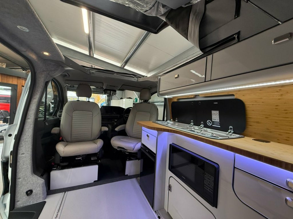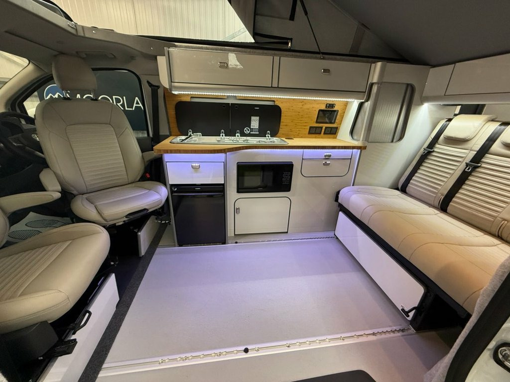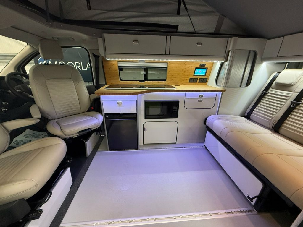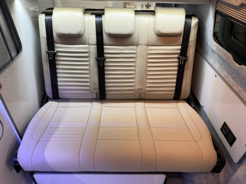 Welcome to the ALL-NEW VW Transporter (also know as the T7). This is the BRAND NEW version of this iconic camper with over 75 years of pedigree. We have these in stock now, and more vans available to redesign to your preferred specification. These vans come with 5 YEAR warranty and 5 YEAR servicing included. We also offer a 5 YEAR warranty on the interior campervan conversion (Ts and Cs apply). The standard spec on all our new Transporters is as follows: CAMPER SPEC: • Three-seater rear seat on sliding rails, bringing your passengers closer to you, giving you a huge amount of boot space. • Solar panel • Night heater • Rear shower • Microwave • Gas hob • Sink with running water • Electric 240v hookup • 12v leisure battery • Isofix on rear seats • 4 berth with sprung bed platform up top • Scenic roof (opens up completely) • Integrated table • Van Shades Window Blinds • USBs • Wireless phone charger • LED lighting • 50L fridge with freezer compartment VAN SPEC: • Rear speakers • DAB • Car play • Keyless start • AC • Bluetooth • Touchscreen • Cruise Control • Multifunction Steering Wheel • Keyless Start • Parking sensors • Electrically adjustable door mirrors • Front electric windows ALSO ON THIS CAMPER: • Rear camera • Heated rear screen, • Heated front screen, • 20" Velare wheels (change to ano 13in Digital Drivers Display, 13in Touchscreen Infotaintment Display w, 16in Steel Wheels - 6.5J, 2 LED Lights in Roof of Load Compartment, 2 x 15-W USB-C Data and Charging Ports i, 2-Seater Bench and Single Drivers Seat i, 2-Seater Bench with Load-Through System , 4 Speakers - x2 in Dashboard - x2 in Cab, 4-Way Head Restraints - Adjustable in He, 5 Plus Promise, 55L Fuel Tank, 5G Modem, 6-Way Adjustable Driver Seat, AGM Vehicle Battery and 2nd Battery - Un, Air Conditioning System with Manual Cont, Alternator - 230A, Anti-Theft Alarm System with Interior Mo, Black Plastic Scuff Plate for Sliding Do, Black Plastic Scuff Plate in Front, Body-Coloured Add-On Parts and Body-Colo, Body-Coloured