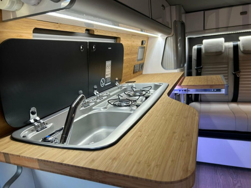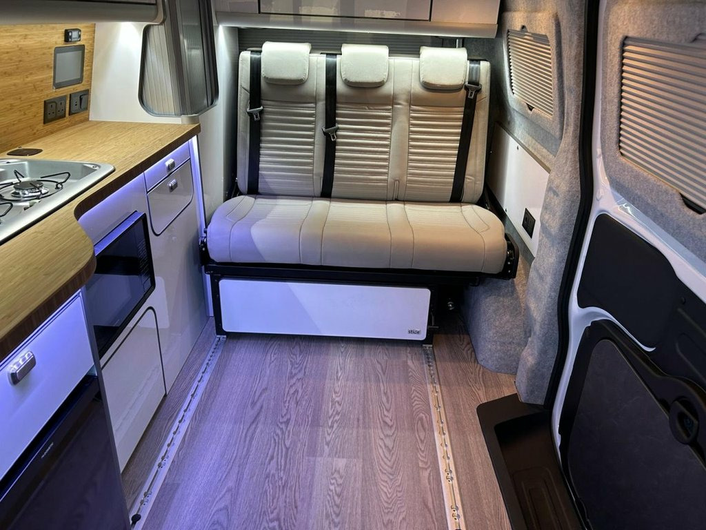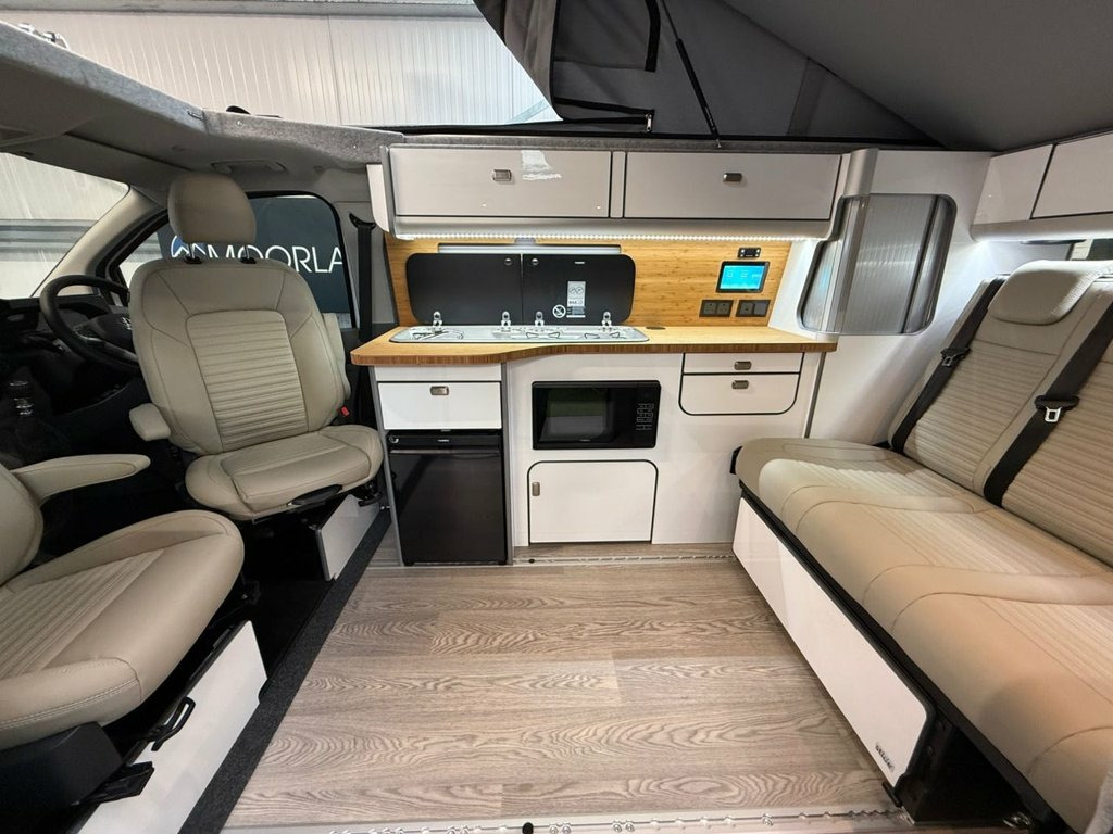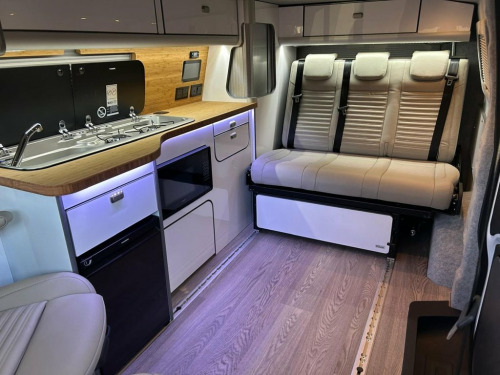Welcome to the ALL-NEW VW Transporter (also know as the T7). This is the BRAND NEW version of this iconic camper with over 75 years of pedigree. We have these in stock now, and more vans available to redesign to your preferred specification. These vans come with 5 YEAR warranty and 5 YEAR servicing included. We also offer a 5 YEAR warranty on the interior campervan conversion (Ts and Cs apply). The standard spec on all our new Transporters is as follows: CAMPER SPEC: • Three-seater rear seat on sliding rails, bringing your passengers closer to you, giving you a huge amount of boot space. • Solar panel • Night heater • Rear shower • Microwave • Gas hob • Sink with running water • Electric 240v hookup • 12v leisure battery • Isofix on rear seats • 4 berth with sprung bed platform up top • Scenic roof (opens up completely) • Integrated table • Van Shades Window Blinds • USBs • Wireless phone charger • LED lighting • 50L fridge with freezer compartment VAN SPEC: • Rear speakers • DAB • Car play • Keyless start • AC • Bluetooth • Touchscreen • Cruise Control • Multifunction Steering Wheel • Keyless Start • Parking sensors • Electrically adjustable door mirrors • Front electric windows ALSO ON THIS CAMPER: • Rear camera • Heated rear screen, • Heated front screen, • 20" Velare wheels (change to ano 13in Digital Drivers Display, 13in Touchscreen Infotaintment Display w, 16in Steel Wheels - 6.5J, 2 LED Lights in Roof of Load Compartment, 2 x 15-W USB-C Data and Charging Ports i, 2-Seater Bench and Single Drivers Seat i, 2-Seater Bench with Load-Through System , 4 Speakers - x2 in Dashboard - x2 in Cab, 4-Way Head Restraints - Adjustable in He, 5 Plus Promise, 55L Fuel Tank, 5G Modem, 6-Way Adjustable Driver Seat, AGM Vehicle Battery and 2nd Battery - Un, Air Conditioning System with Manual Cont, Alternator - 230A, Anti-Theft Alarm System with Interior Mo, Black Plastic Scuff Plate for Sliding Do, Black Plastic Scuff Plate in Front, Body-Coloured Add-On Parts and Body-Colo, Body-Coloured