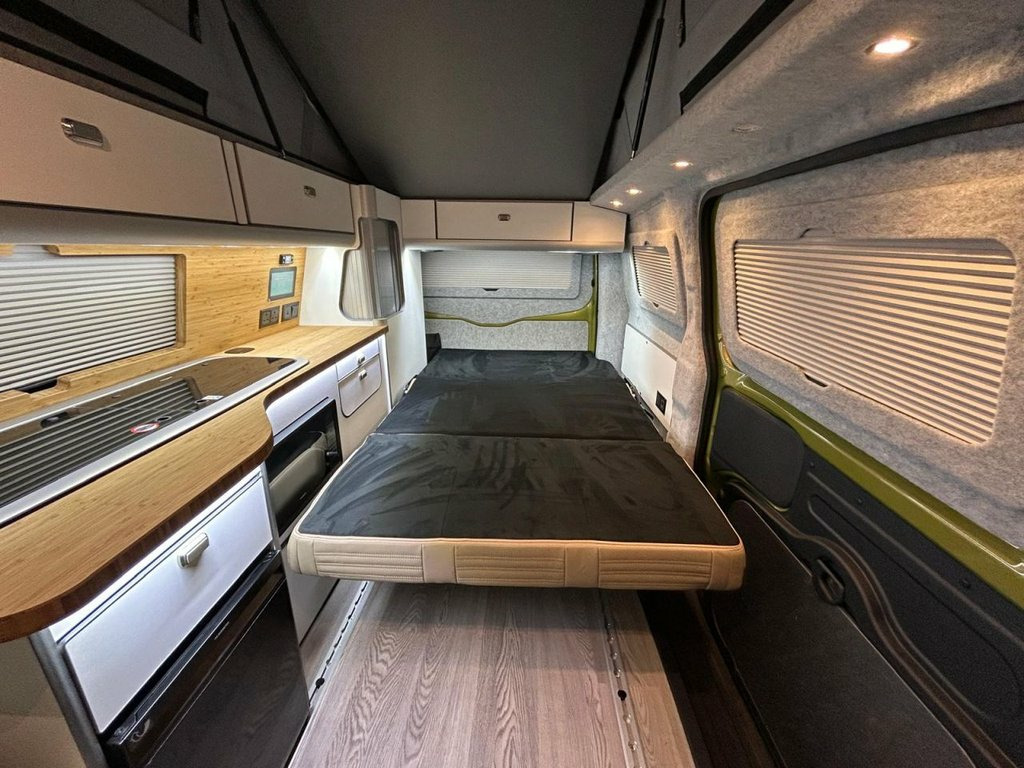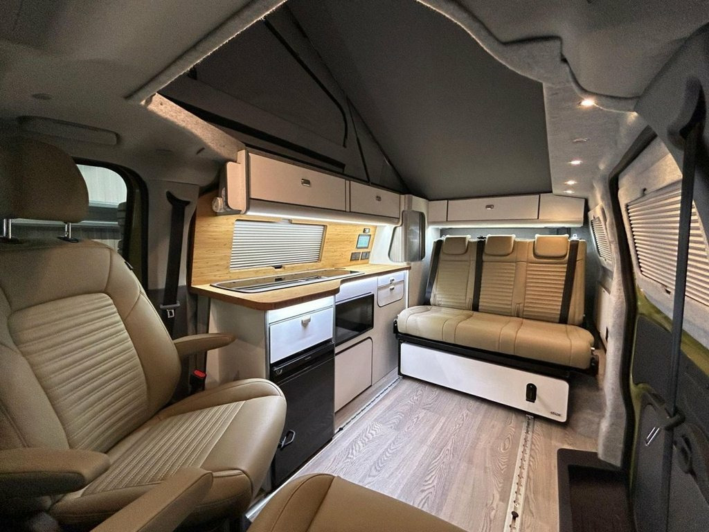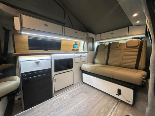 Welcome to the ALL-NEW VW Transporter (also know as the T7). This is the BRAND NEW version of this iconic camper with over 75 years of pedigree. We have these in stock now, and more vans available to redesign to your preferred specification. These vans come with 5 YEAR warranty and 5 YEAR servicing included. We also offer a 5 YEAR warranty on the interior campervan conversion (Ts and Cs apply). The standard spec on all our new Transporters is as follows: CAMPER SPEC: • Three-seater rear seat on sliding rails, bringing your passengers closer to you, giving you a huge amount of boot space. • Solar panel • Night heater • Rear shower • Microwave • Gas hob • Sink with running water • Electric 240v hookup • 12v leisure battery • Isofix on rear seats • 4 berth with sprung bed platform up top • Scenic roof (opens up completely) • Integrated table • Van Shades Window Blinds • USBs • Wireless phone charger • LED lighting • 50L fridge with freezer compartment VAN SPEC: • Rear speakers • DAB • Car play • Keyless start • AC • Bluetooth • Touchscreen • Cruise Control • Multifunction Steering Wheel • Keyless Start • Parking sensors • Electrically adjustable door mirrors • Front electric windows ALSO ON THIS CAMPER: • Rear camera • Heated rear screen - Heated Front Screen - Folding Mirrors • 20" Velare wheels (ch 12-V Outlet on D-Pillar at The Bottom - , 12-Volt Outlet in Centre Console and 12-, 13in Digital Drivers Display, 13in Touchscreen Infotainment Display wi, 16in Alloy Wheels - Montreal in Silver, 2 LED Lights in Roof of Load Compartment, 2 x 15-W USB-C Data and Charging Ports i, 2-Seater Bench and Single Drivers Seat i, 2-Seater Bench with Load-Through System , 3 Super-Bright LED Lights in Rear of Car, 4 Speakers - x2 in Dashboard - x2 in Cab, 4-Way Head Restraints - Adjustable in He, 5 Additional USB-C Charging Ports, 5 Plus Promise, 55L Fuel Tank, 5G Modem, 6-Way Adjustable Driver Seat, AGM Vehicle Battery and 2nd Battery - Un, Adaptive Cruise Control System with Pred, Alternator - 230A, A