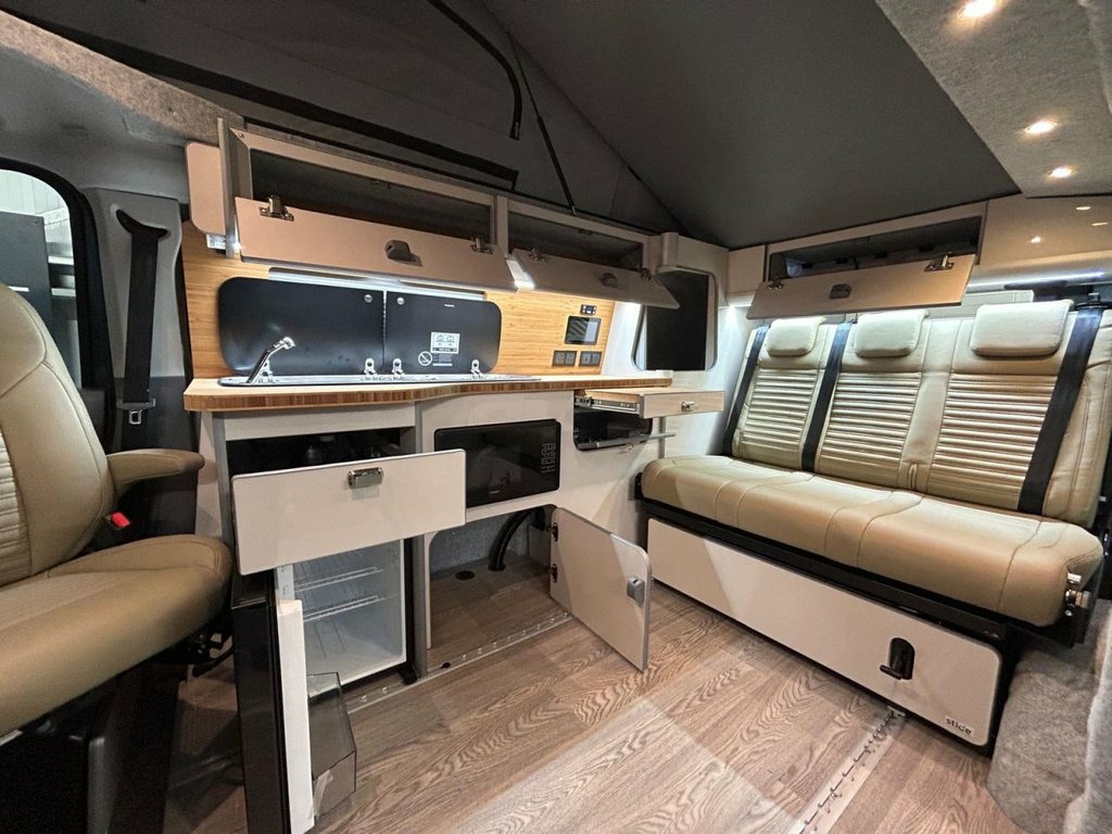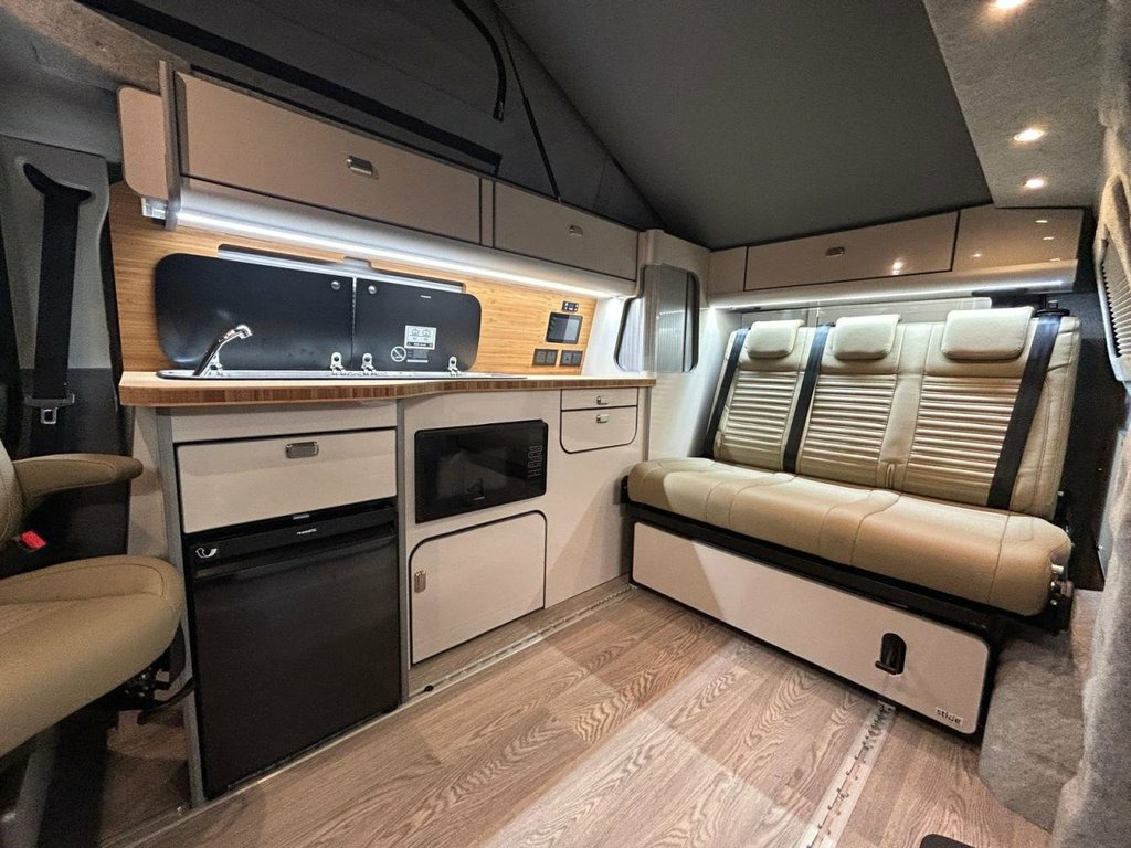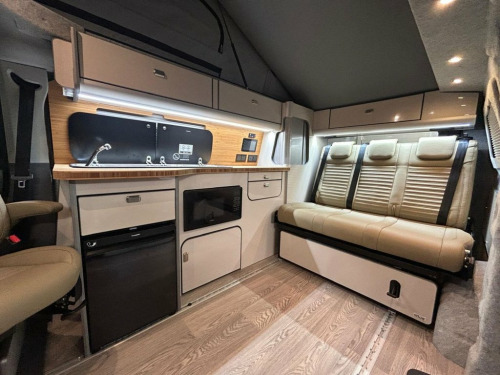 Welcome to the ALL-NEW VW Transporter (also know as the T7). This is the BRAND NEW version of this iconic camper with over 75 years of pedigree. We have these in stock now, and more vans available to redesign to your preferred specification. These vans come with 5 YEAR warranty and 5 YEAR servicing included. We also offer a 5 YEAR warranty on the interior campervan conversion (Ts and Cs apply). The standard spec on all our new Transporters is as follows: CAMPER SPEC: • Three-seater rear seat on sliding rails, bringing your passengers closer to you, giving you a huge amount of boot space. • Solar panel • Night heater • Rear shower • Microwave • Gas hob • Sink with running water • Electric 240v hookup • 12v leisure battery • Isofix on rear seats • 4 berth with sprung bed platform up top • Scenic roof (opens up completely) • Integrated table • Van Shades Window Blinds • USBs • Wireless phone charger • LED lighting • 50L fridge with freezer compartment VAN SPEC: • Rear speakers • DAB • Car play • Keyless start • AC • Bluetooth • Touchscreen • Cruise Control • Multifunction Steering Wheel • Keyless Start • Parking sensors • Electrically adjustable door mirrors • Front electric windows ALSO ON THIS CAMPER: • Rear camera • Heated rear screen • 20" Velare wheels (change to another style at no cost) Heated 12-Inch Digital Drivers Display, 12-V Outlet on D-Pillar at The Bottom - , 12-Volt Outlet in Centre Console and 12-, 13in Touchscreen Infotainment Display wi, 16in Alloy Wheels - Montreal in Silver, 2 LED Lights in Roof of Load Compartment, 2 x 15-W USB-C Data and Charging Ports i, 2-Seater Bench and Single Drivers Seat i, 2-Seater Bench with Load-Through System , 3 Super-Bright LED Lights in Rear of Car, 3 x 15-W USB-C Charging Ports - 1 x Stor, 4 Speakers - x2 in Dashboard - x2 in Cab, 4-Way Head Restraints - Adjustable in He, 5 Additional USB-C Charging Ports, 5 Plus Promise, 55L Fuel Tank, 5G Modem, 6-Way Adjustable Driver Seat, AGM Vehicle Battery and 2nd Battery - Un, Adaptive Cruise C