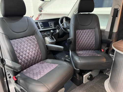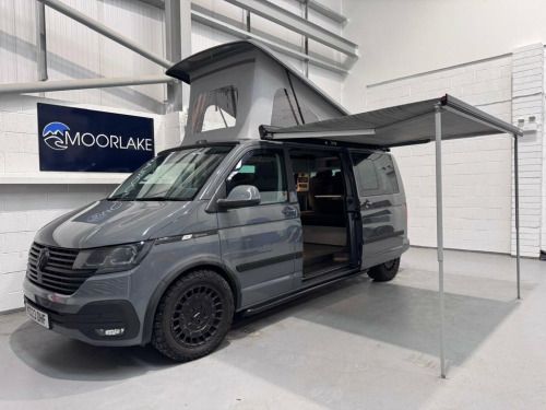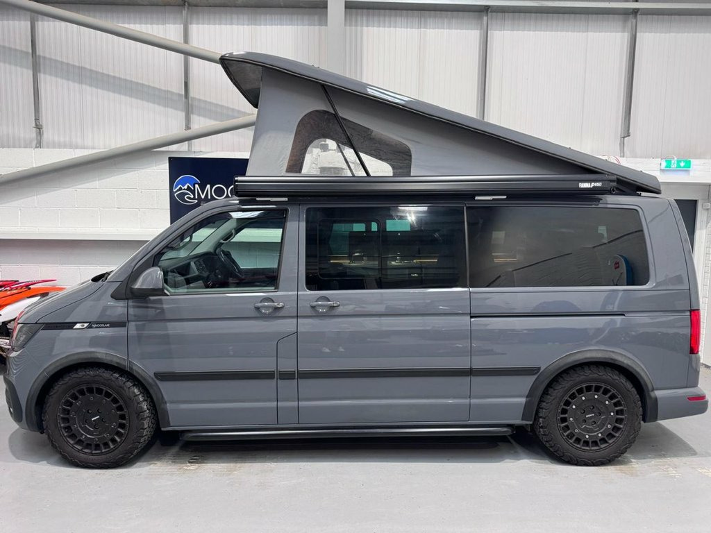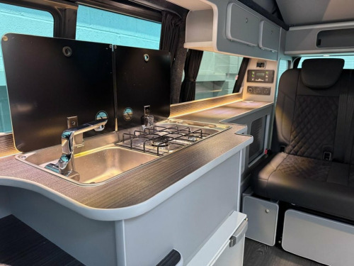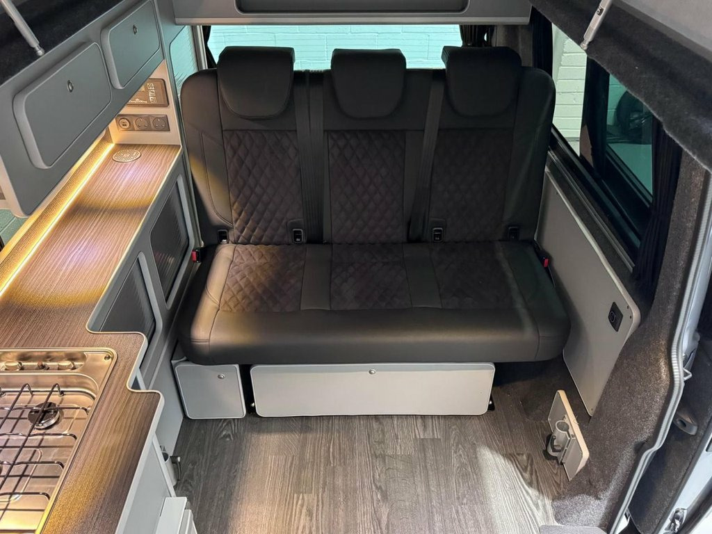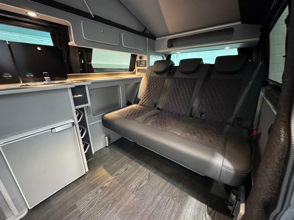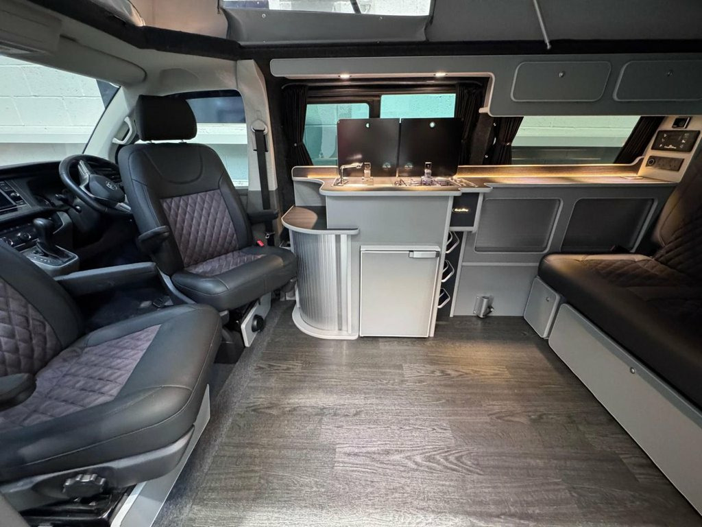 HUGE SPEC on this 5 SEATER T6.1 LWB Transporter Finished in Stunning Pure Grey Paintwork, with the superb Camper King Santorini interior. HEATED SEATS, Diesel Heater, Deluxe Upholstery, Wireless Charging Pad, 20L integrated Water Tank, Gas hob, Sink with running water, 4 Berth, Pop top roof, LED lighting, Leisure/Auxiliary battery, Fridge, New TITAN bed, 5 Belted seats, Isofix on rear seats, DAB Radio and Touchscreen, Bluetooth, Apple Car Play/Android Auto/Mirror Link, Air conditioning, Cruise Control, Front and Rear Parking Sensors, Multifunction Steering Wheel, 20" Velare Wheels (change to another style at no cost) Electrically adjustable door mirrors, Electric front windows, 2 Keys, Low Miles. VW Warranty and VW Commercial roadside assistance until 2027. Why not come along to one of our showrooms to see what we have in stock or to choose your very own specification from one of our vans ready to convert. SHOWROOMS IN HULL AND WATFORD - PLEASE CALL OR EMAIL FOR DETAILS. SOME OF THE PHOTOS ON OUR LISTINGS ARE STOCK PICTURES AND MAY SHOW FEATURES NOT ON THIS VAN. PLEASE CHECK WITH US FOR DETAILS. 1 Waste Bin in Door Storage Compartment, 12V Socket - Additional, 12V Socket - Front, 16in Steel Wheels, ABS - Anti-Lock Braking System, ACC - Adaptive Cruise Control, ASR - Anti Slip Regulation, Air Conditioning - Electronically Contro, Allergen Filter, Anti-Theft Alarm System with Interior Mo, App-Connect, Armrest - Drivers and Passenger, Automatic Dimming Rear View Mirror, Automatic Headlight Activation with Dayt, Automatic Post-Collision Braking System, BAS - Brake Assist System, Body-Coloured Door Mirror Housings and H, Comfort Pack, Composition Colour DAB Plus Radio System, Crosswind Assist, Dash Panel with Open Stowage Compartment, Dashboard - Dimmable Illumination, Door Mirrors - Ele