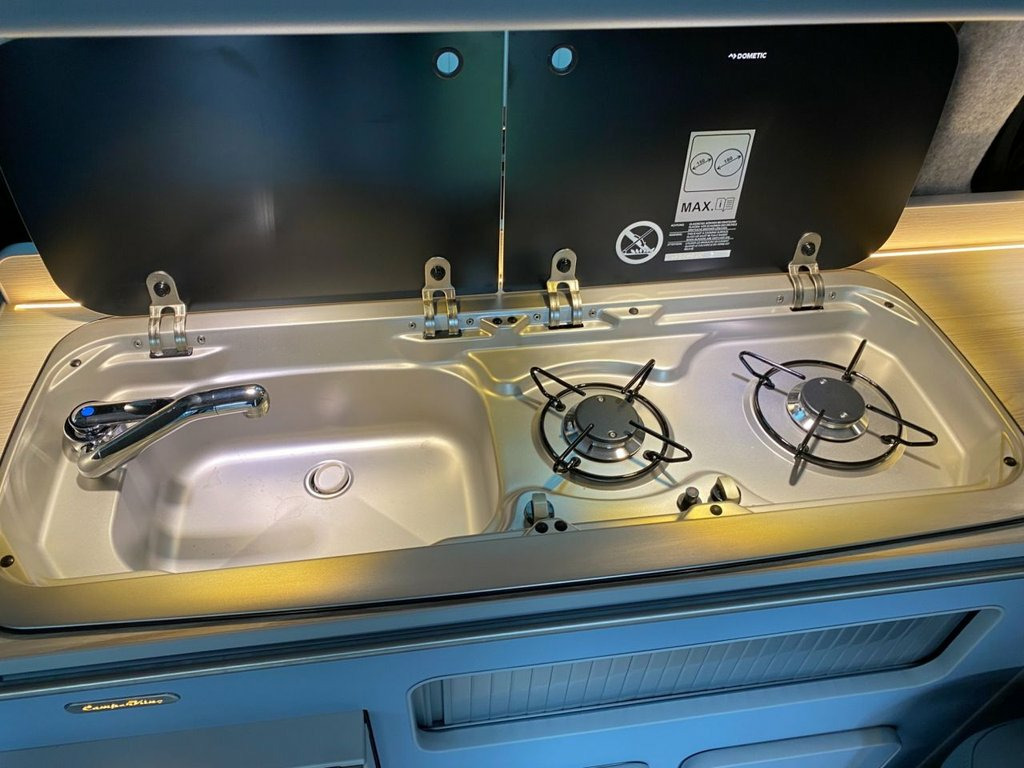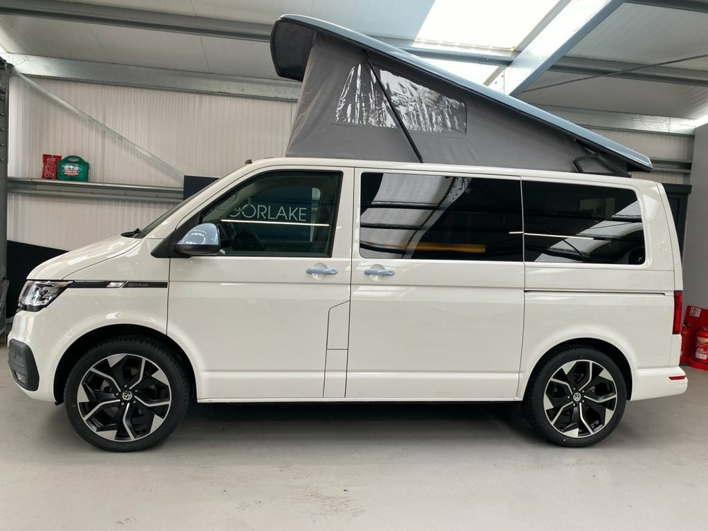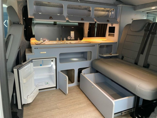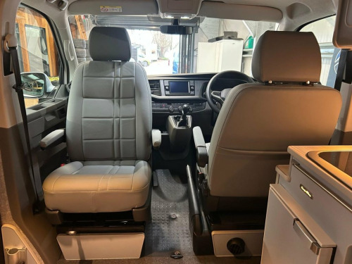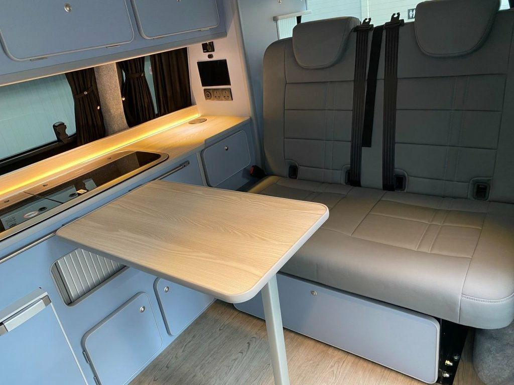 LOVELY SPEC NEARLY NEW Highline T6.1 Transporter, with the superb Camper King St Tropez interior and genuine low miles. Diesel Heater, Vamoose Awning Rail LED Headlights Rear Camera Heated Front Seats Heated Windscreen Deluxe Upholstery, Wireless Charging Pad, 20L integrated Water Tank, Gas hob, Sink with running water, 4 Berth, Pop top roof, LED lighting, Leisure/Auxiliary battery, Fridge, New TITAN bed, 4 Belted seats, Isofix on rear seats, DAB Radio and Touchscreen, Bluetooth, Apple Car Play/Android Auto/Mirror Link, Air conditioning, Adaptive Cruise Control, Front and Rear Parking Sensors, Heated Rear Screen with wiper Auto Lights Auto Wipers Multifunction Steering Wheel, 20" Velare Wheels (change to another style at no cost) Electrically adjustable and folding door mirrors, Electric front windows, 2 Keys, Very Low Miles. VW Warranty to 2027, VW Commercial roadside assistance to 2027. Why not come along to one of our showrooms to see what we have in stock or to choose your very own specification from one of our vans ready to convert. SHOWROOMS IN HULL AND WATFORD - PLEASE CALL OR EMAIL FOR DETAILS. SOME OF THE PHOTOS ON OUR LISTINGS ARE STOCK PICTURES AND MAY SHOW FEATURES NOT ON THIS VAN. PLEASE CHECK WITH US FOR DETAILS. 12V Socket - Additional, 12V Socket - Front, 16in Alloy Wheels - Clayton, ABS - Anti-Lock Braking System, ACC - Adaptive Cruise Control, ASR - Anti Slip Regulation, Air Conditioning - Electronically Contro, Allergen Filter, Anti-Theft Alarm System with Interior Mo, App-Connect, Armrest - Drivers, Automatic Dimming Rear View Mirror, Automatic Headlight Activation with Dayt, Automatic Post-Collision Braking System, BAS - Brake Assist System, Body-Coloured Door Mirror Housings and H, Comfort Pack, Composition Colour DAB Plus Radio System, Crosswind Assist, Dash Panel with Open Stowage Compartment, Dashboard - Dimmable Illumination, Door Mirrors - Heated - Power Adjustable, Driver Alert System,