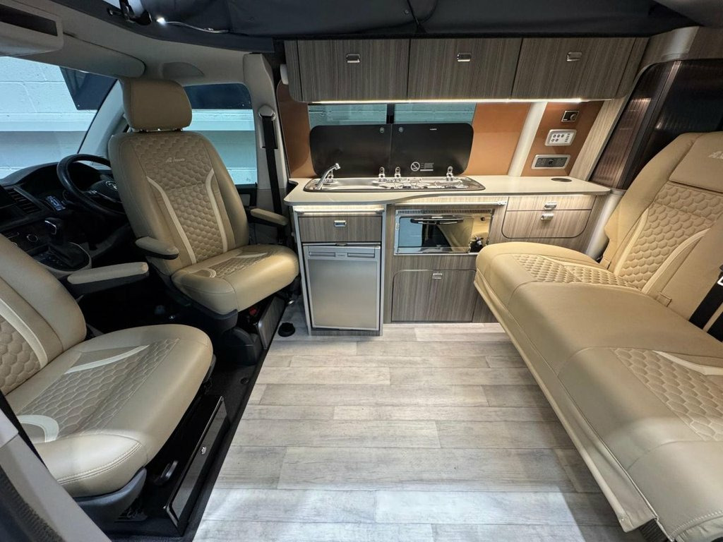 Absolutely lovely styling on this 2019 VW T6 camper conversion by All Seasons Leisure. 150BHP DSG automatic with 23,000 miles on the clock. Has full service history, with latest service done in July 2025 at 21,000 miles, by Williamsons in Driffield. The van has factory cruise control, central locking and it has an Alpine 9 inch floating touchscreen head unit professionally installed in 2022 which is linked to a reversing camera. It has all the apple car play functions via the Alpine head unit / phone etc. The van has 20 inch alloys and runs on lowering springs, which all came as part of the original conversion from All Seasons. Leisure battery which allows off-grid use, and a diesel night heater. The conversion has full strip LED lighting and spots lights integrated into the conversion design. It's fitted with a dometic gas burner hob, grill and single bowl sink unit and 50L dometic fridge / freezer. It also has a lockable safe under the passenger chair. The bed conversion is a full memory foam bed on the reverse of the rear seats. The seats themselves are leather effect and they are rotating captains chairs up front. 12V Socket - Additional, 12V Socket x2, 16in Alloy Wheels - Clayton, ABS - Anti-Lock Braking System, Airbags - Driver and Front Passenger wit, Alarm - Anti-Theft System with Interior , Armrest - Drivers, Automatic Dimming Rear View Mirror with , Automatic Driving Light Control, Automatic Headlight Activation with Dayt, Automatic Post-Collision Braking System, BAS - Brake Assist System, Bluetooth Hands Free Set, Body Coloured - Bumpers - Door Mirrors -, Climatic Cab Air Conditioning System - S, Comfort Pack, Composition Colour DAB+ Radio with 5in T, Cruise Control, Dashboard - Dimmable Illumination, Digital Clock, Door Mirrors - Electrically Adjustable a, Driver Alert with Multi-Function Disp