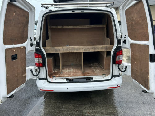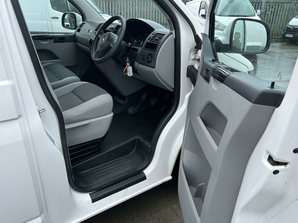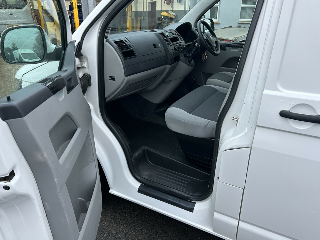 Volkswagen Transporter 2.0 TDI T30 Startline finished in White (Manual), 97100 miles, 1 Company Owner, Service History, 2.0 tdi 102ps, Short Wheelbase, Side loading door, PAS, Service indicator, Trip computer, Radio/CD, Electric door mirrors, Full size spare wheel, Front electric windows, ABS, Drivers airbag, ESP, Passenger airbag, Traction control, Remote central locking, Cloth seat trim, Ply-lined, Bulkhead, Roof Rack, Rear Parking Sensors, Alloy Wheels, Racking