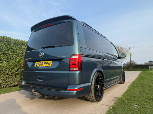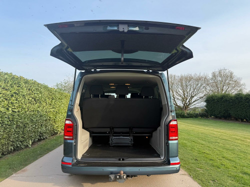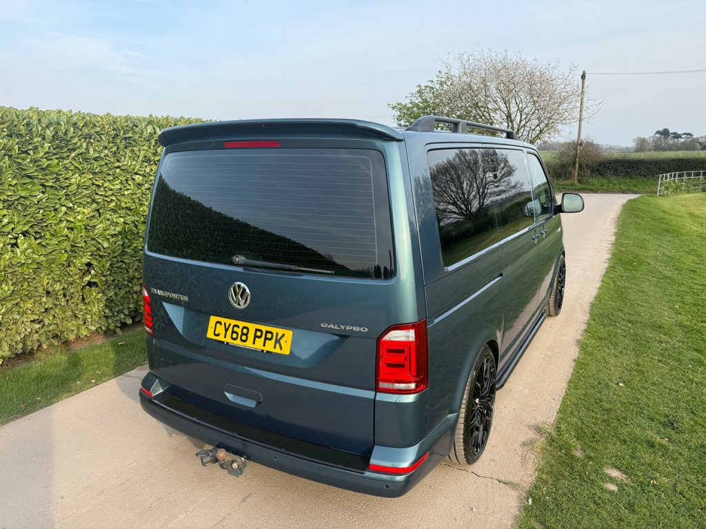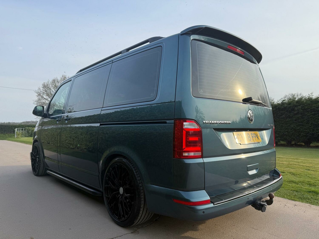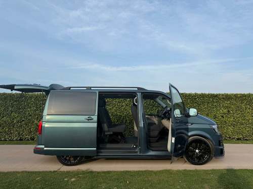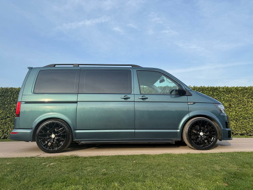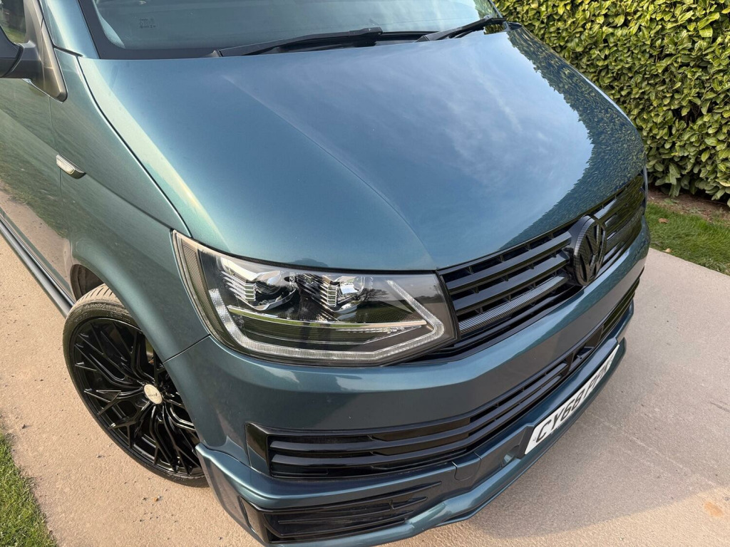 We love this van! , T32 2019 in Bamboo Green! , Just 60100 miles from new. 8 seater! , Just been fully machined detailed, and had the 20 inch gloss black alloys refurbished. Sportline front spoiler, carbon style front badge, and upper grille inserts, Matt black side bars, Matt black roof bars gloss black mirror covers, LED front headlights, rear spoiler, lowered 80mm on new coilover suspension. The vans drives and handles superbly well. Its not too firm and gives a lot of confidence in cornering, with massive road presence! Really does need to be seen to be appreciated. Navigation, park distance control, heated rear screen, air conditioning, window blinds, dusk sliding doors. RAC warranty with free Roadside assistance.