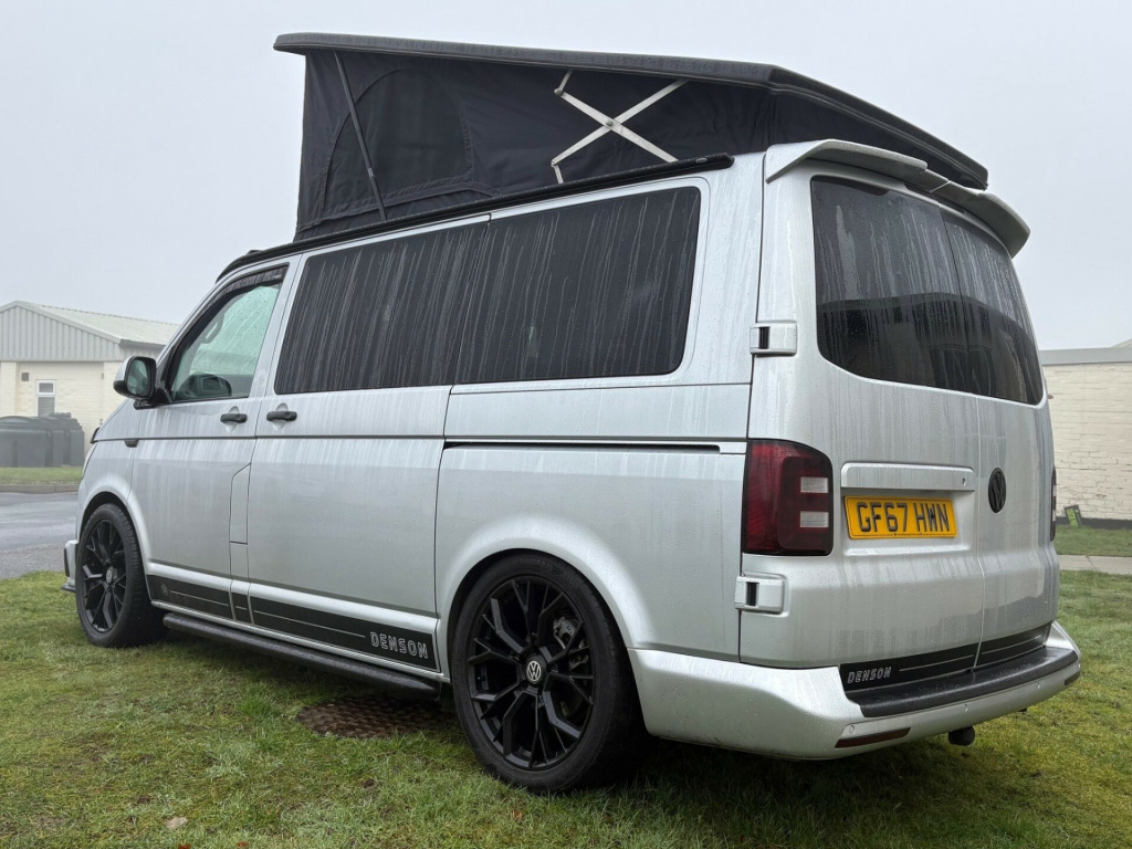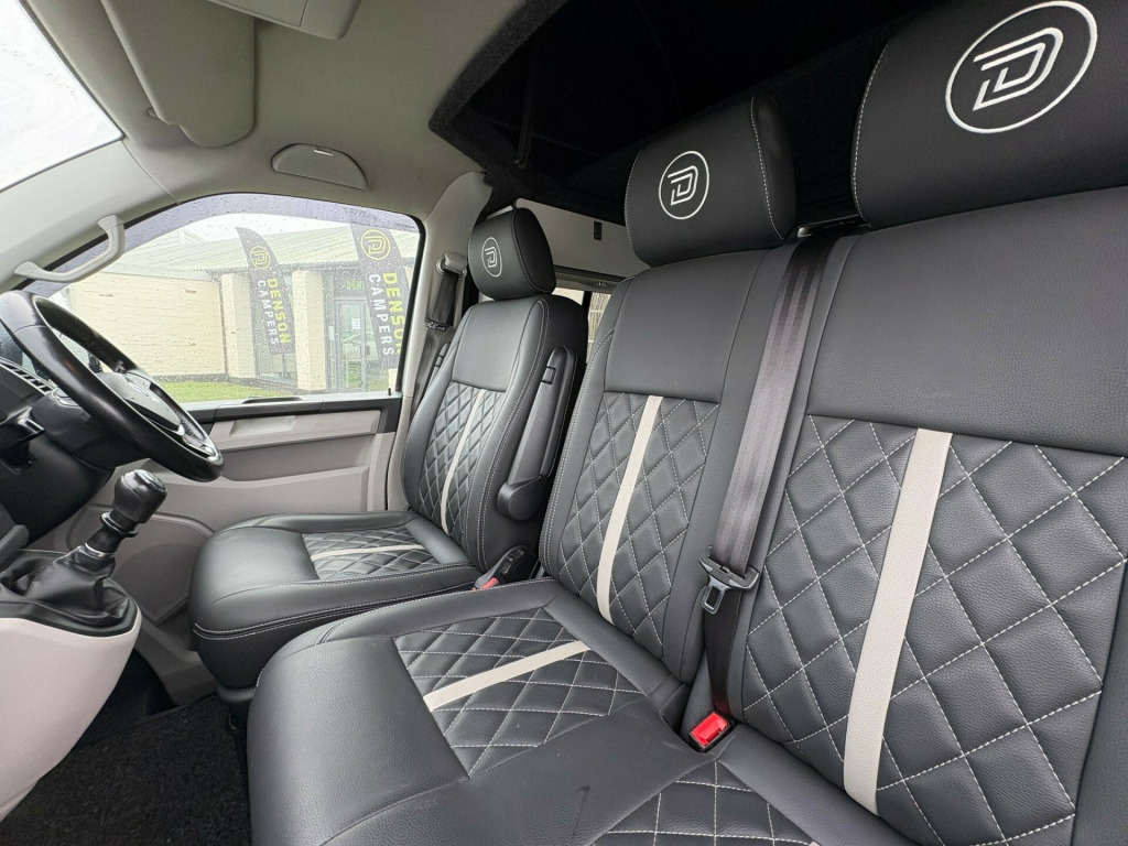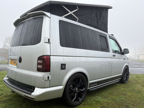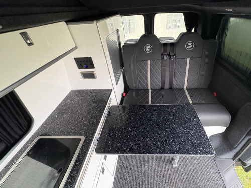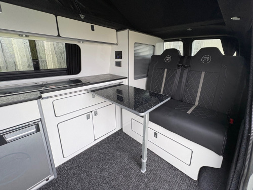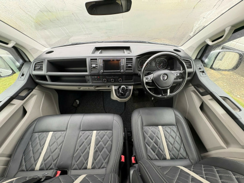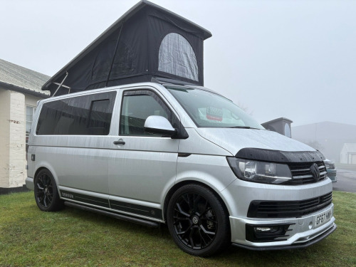 - 2017 Volkswagen Transporter 2.0 TDI T28 BlueMotion Tech Highline- 105,664 miles - Air Con - Retractable Tow Bar - Cruise Control- Sat Nav- Multi function steering wheel - Lowered - Fully converted with white kitchen and black sparkle worktop and table- Black seats with cream stitching- MOT until 04/07/2026 - 3 month warranty - 3 month roadside assistance v/240v fridge, 12v/240v power sockets & usb, awning rail, denson graphics & cab mat, double gas hob & smev sink, premium kitchen & soft close doors, quilted leather cab & rear seating, rock & roll bed with seat belts, scenic pop top roof, side bars, sportline body styling