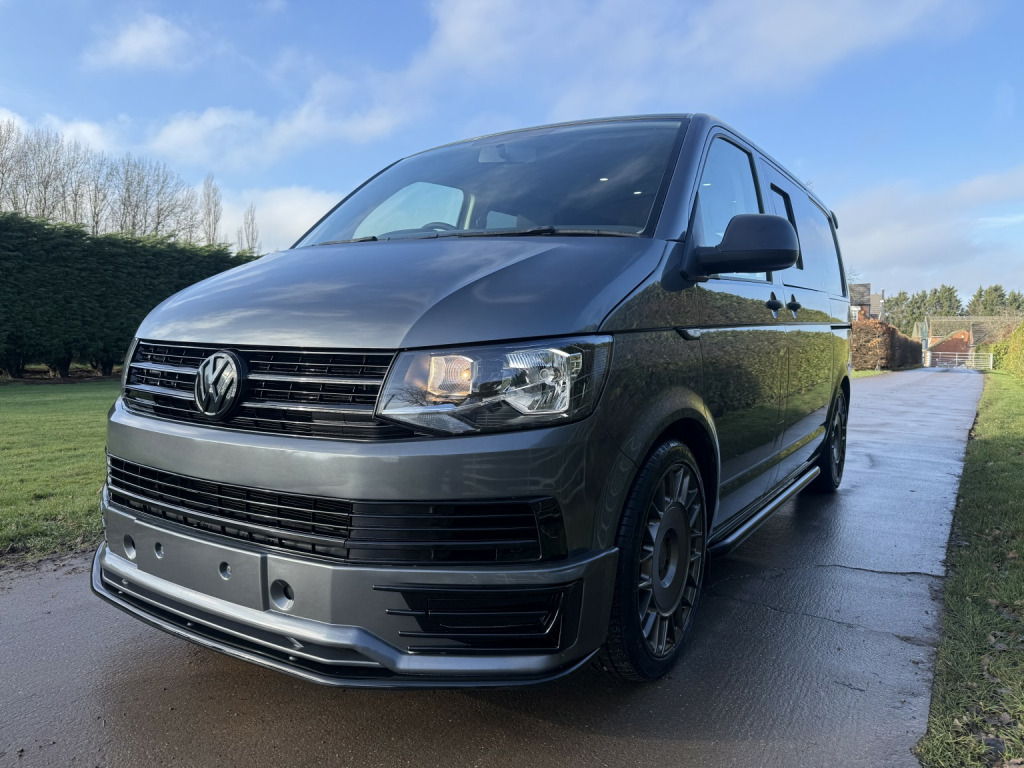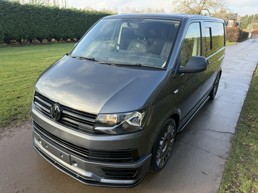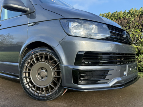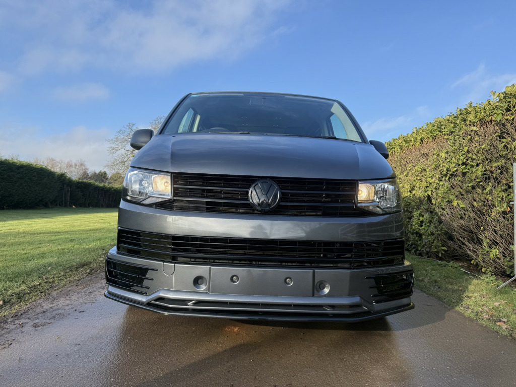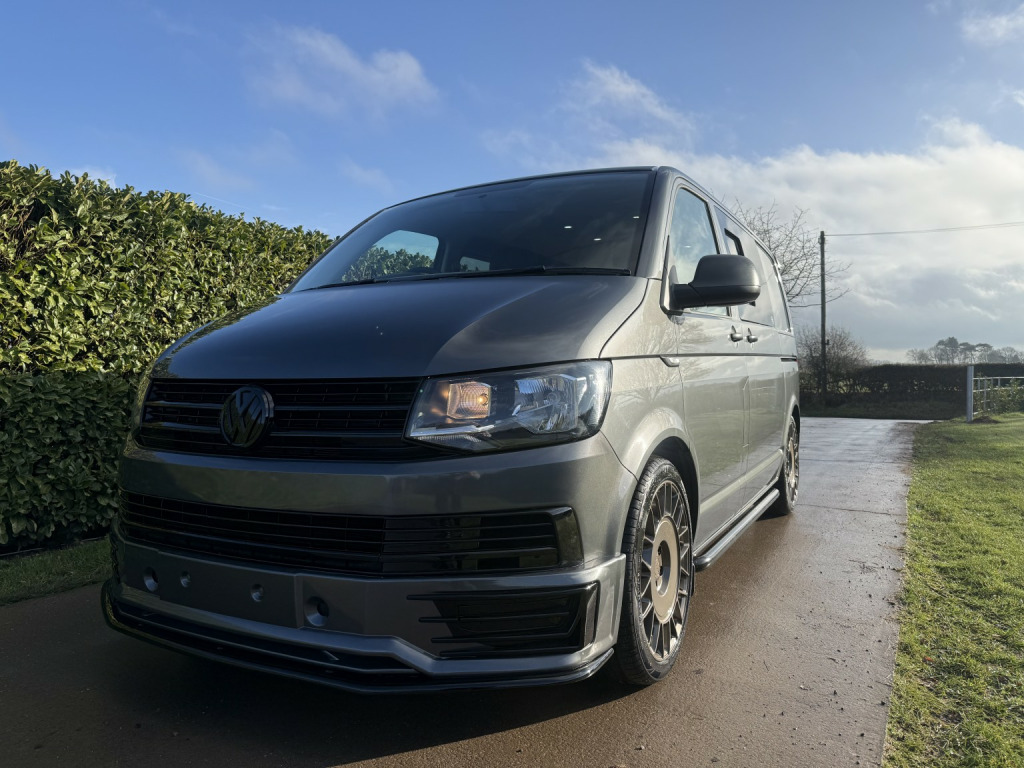 T6 Transporter Kombi 2017 T28 Kombi with just 28,000 miles! 6 services, 1 former keeper. Finished in metallic Indium grey, with captain front seats, triple rear bench, and factory heated tailgate! , Unmarked exterior. Full sportline body kit, consisting of front bumper, with lower spoiler, gloss black grille, and grille inserts. Matt black side bars, rear spoiler, lowered 50mm with 20inch bronze alloys. On the interior, the seats have black leather covers, with grey Bentley stitch and grey logos. Fully sound deadened and insulated. Dark grey carpet throughout, with contrasting stone, Alcantara headlining, and 6 spot lights. This van has our upgraded virtual cockpit. A full LCD with adaptive features. An amazing new addition to our range of bespoke VW upgrades. Hundreds of different functions and display options. For more information, have a look at our Facebook page, and the reel of the van to see the screen in action, or call for a virtual walkthrough. 3 months warranty, low rate finance available, part exchanged considered.