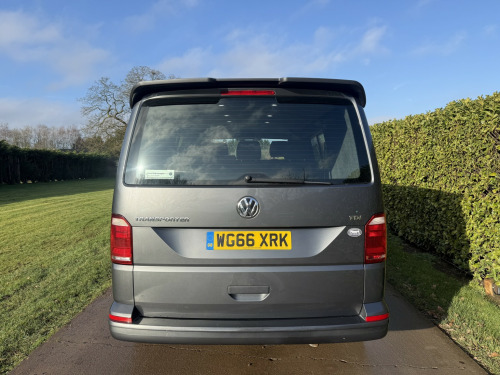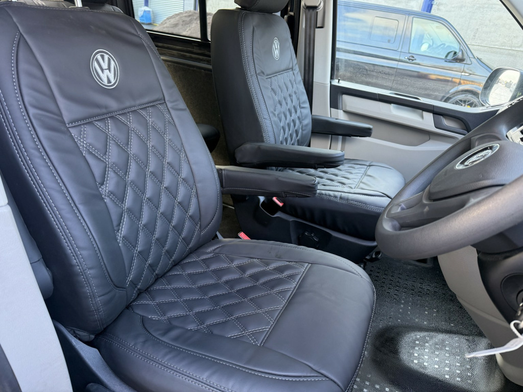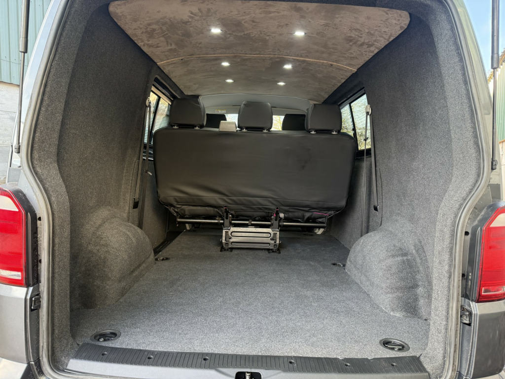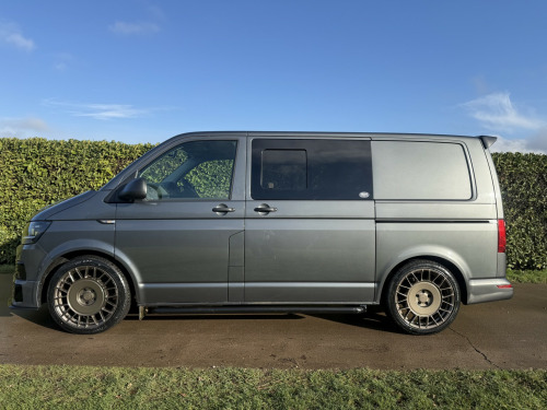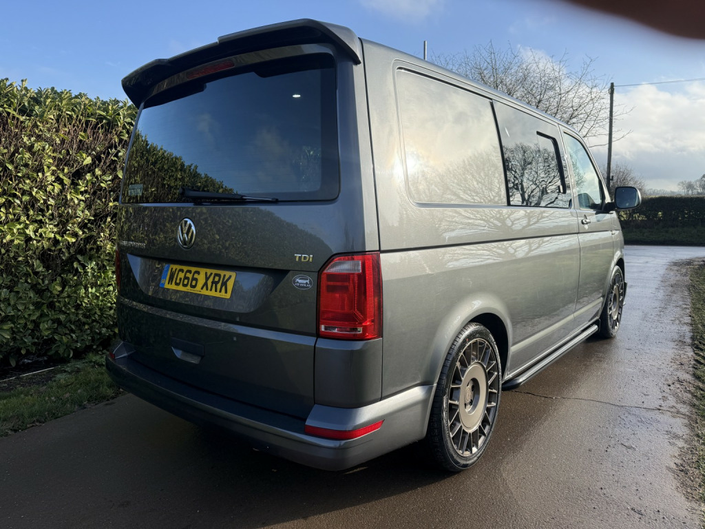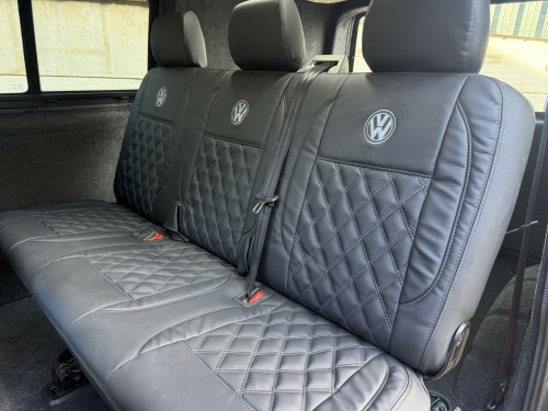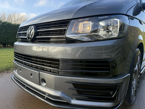 T6 Transporter Kombi 2017 T28 Kombi with just 28,000 miles! 6 services, 1 former keeper. Finished in metallic Indium grey, with captain front seats, triple rear bench, and factory heated tailgate! , Unmarked exterior. Full sportline body kit, consisting of front bumper, with lower spoiler, gloss black grille, and grille inserts. Matt black side bars, rear spoiler, lowered 50mm with 20inch bronze alloys. On the interior, the seats have black leather covers, with grey Bentley stitch and grey logos. Fully sound deadened and insulated. Dark grey carpet throughout, with contrasting stone, Alcantara headlining, and 6 spot lights. This van has our upgraded virtual cockpit. A full LCD with adaptive features. An amazing new addition to our range of bespoke VW upgrades. Hundreds of different functions and display options. For more information, have a look at our Facebook page, and the reel of the van to see the screen in action, or call for a virtual walkthrough. 3 months warranty, low rate finance available, part exchanged considered.