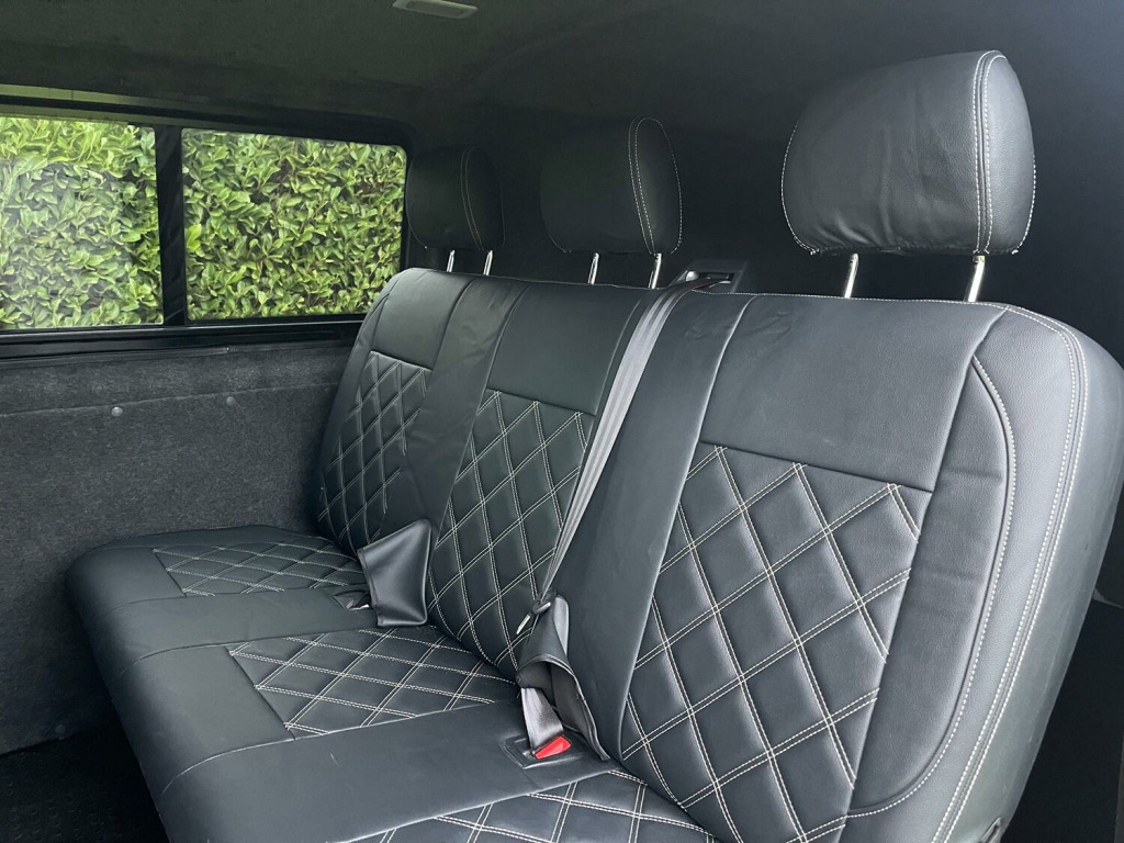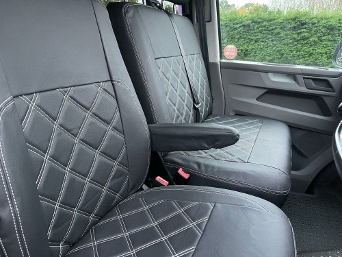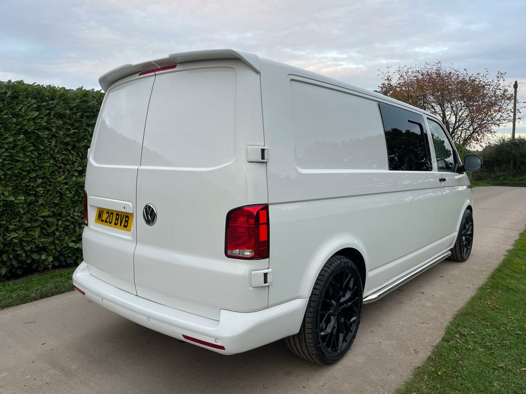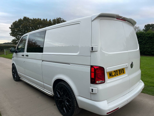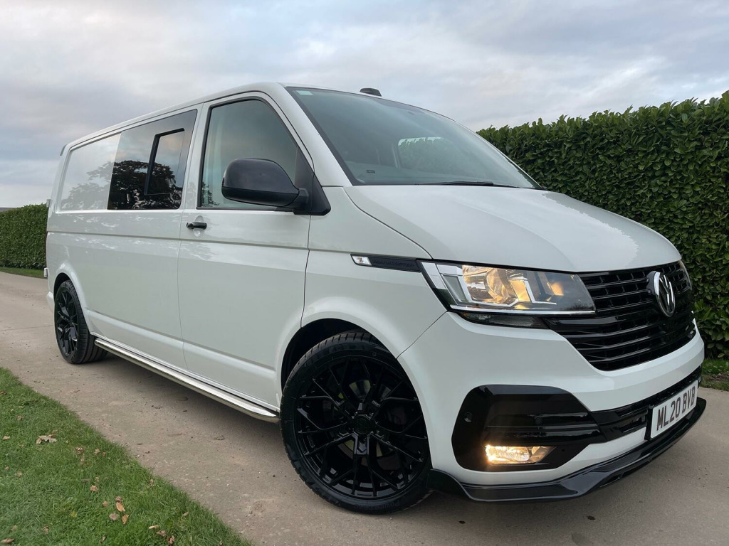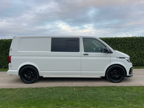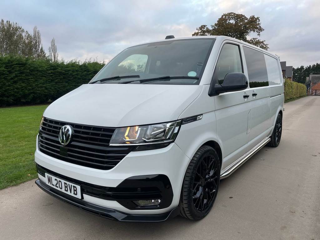Fabulous low mileage T6.1 LWB Kombi. 1 registered keeper. Benefiting from factory sat nav, reversing aid, cruise control, and air conditioning. Low mileage at just 41700. Fully carpet lined , Factory Kombi floor. Leather seat covers. Stainless side bars , Full highline front with gloss black grilles, gloss black splitter, mirror covers and door handles. Rear spoiler, Lowered 50mm, Brand new 20 inch alloy wheels and new tyres , Duel sliding windows , Colour coded rear spoiler. £24995+VAT
