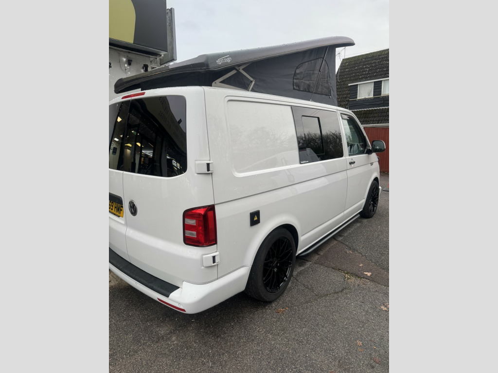Vw transporter t28 swb 2.0 tdi bmt 102 startline van euro 6 manual , 86200 miles , Stunning exterior, bodywork in great condition and looks fantastic with the additional styling tweaks , 3 seats and front and full size seat/bed at the rear seating a further 3 people , Westdubs crash tested pop top with bed system , 4 berth van , M1 tested rear bed , Front passenger seat swivel , Black side bars , 18 load rated alloys , 12v/240v elecs with hook up , Rear curtains, Led interior lights , USB sockets , Fully lined and insulated , , Sold by AVS Bransgore , Ringwood Road , Bh238jq , 01425200826 , , 6 months warranty on van and camper side , , Can fully convert for extra