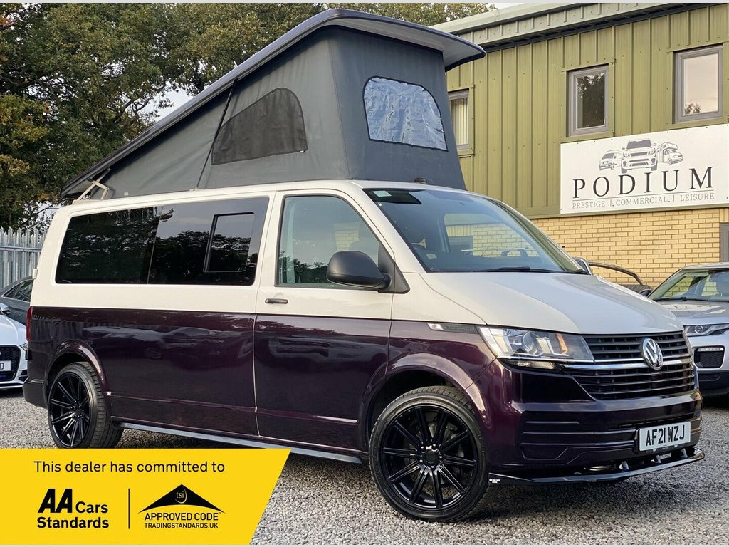 PODIUM PCL IS DELIGHTED TO PRESENT A VW TRASNPORTER LONG WHEEL BASE MOTORHOME FRESHLY CONVERTED, 4 BERTH AND 5 SEAT BELTS, REAR SPACIOUS LOUNGE A ROCK & ROLL BED AND A POP UP ROOF, M1 THE VULCAN RECLINER 1100mm DOUBLE SEAT BED WITH QUICK RELEASE MECHANISM, HALF PAINTED IN MID-NIGHT PURPLE WHICH MAKE IT STANDS OUT, ALL ELECTRICAL CONNECTIONS DONE, 2 BURNER STOVE CONNECTION, LARGE SINK INSTALLED, WINDOWS, AMPLE STORAGE, JUST SERVICED, MOT VALID UNTIL 26/06/2026, 1 OWNER FROM NEW. Step into the world of Podium PCL, where quality, trust, and expertise come together to create a refined vehicle-buying experience. We proudly showcase a wide selection of over 200 meticulously handpicked vehicles, including Cars, SUVs, Vans, Motorhomes, and Campervans. Each vehicle is carefully sourced by our expert purchasing team, backed by over 12 years of industry experience, and undergoes thorough checks to ensure the highest standards. All our vehicles are HPI clear and supported by the AA Dealer Promise, offering complete peace of mind with every purchase. Enjoy the added benefit of 12 months of complimentary AA breakdown cover, along with a 3-month warranty included within the advertised price, extendable up to 3 years for long-term reassurance. We also offer swift vehicle deliveryfree within a 60-mile radius and just ?2 per mile thereafter (Scotland rates may vary). Once payment is received, we aim to deliver your vehicle within 48 hours. Visit Podium PCL and discover automotive excellenc 12v Power, ABS, Air Con, Air Conditioning, Alarm, Alloy Wheels, Battery Charger, Blinds, Bluetooth, Cab Air Conditioning, Central Locking, Colour Coded Bumpers, Double Beds, Electric Windows, End Bedroom, External 240v, Hob, Immobiliser, Laminated Wall Construction, Mains electric, On board water tank, Second Battery