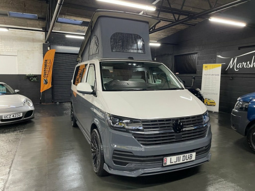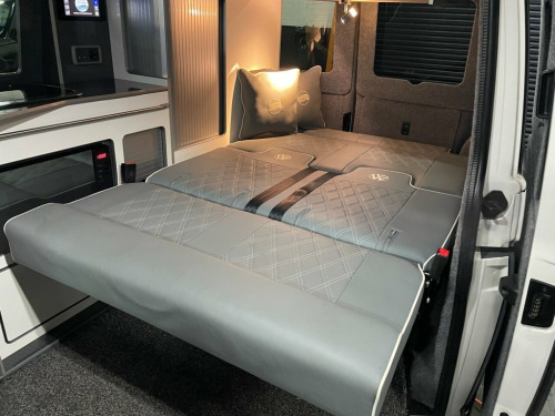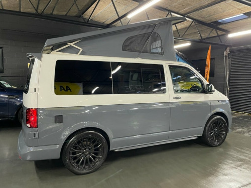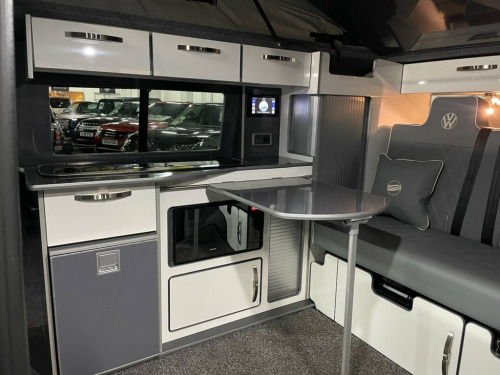 STUNNING 4 BERTH, TWO-TONE, 2020 TRANSPORTER T28 STARTLINE WITH ONLY 45200 MILES CONVERTED BY PLATINUM WAVE CAMPERS - 3 SERVICES TO 43.000 MILES - ALL READY TO HEAD OUT EXPLORING WITH A FANTASTIC SPECIFICATION OF: 20" ALLOY WHEELS - CARPETS THROUGHOUT - 240v HOOK UP - BREEZE UNO AWNING - ISOTHERM FRIDGE - BREVILLE MIRCOWAVE - TWIN GAS BURNERS - STAINLESS STEEL SINK - FABWORX ROCK & ROLL BED - DIESEL HEATER - BUILD IN BLINDS - REAR BARN DOORS WITH PRIVACY GLASS - AIR CON - PASSANGERS CAPTAIN CHAIR - REAR PARKING SENSORS - CRUISE CONTROL - LEATHER MULTI-FUNCTIONAL STEERING WHEEL - DAB RADIO - REAR SPOILER - FRONT SPLITTER 16in Steel Wheels - 20-Hole Style, ABS - Anti-Lock Braking System, Allergen Filter, Armrest - Drivers, ASR - Anti Slip Regulation, BAS - Brake Assist System, Black Door Mirrors and Door Handles, Bumpers - Grey, Composition Colour DAB Plus Radio System, Crosswind Assist, Cruise Control with Speed Limiter, Dash Panel with Open Stowage Compartment, Door Mirrors - Electrically Adjustable a, Driver Alert System, Drivers and Front Passengers Airbags wit, eCall Emergency System, EDL - Electronic Differential Lock, Electric Windows - Front, Electromechanical Speed Sensitive Power , Electronic Engine Immobiliser, Electronically Controlled Heating System, ESP - Electronic Stability Programme, Folding
