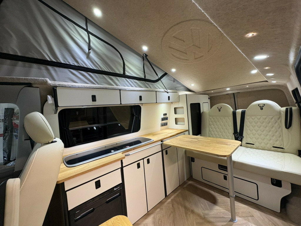 For Sale:2024 Volkswagen Transporter T6.1 LWB 4 berth campervan. This is a professional conversion completed by us here at Concept Vehicle Conversions Ltd and is being sold on behalf of our customer who is selling to get something a little bigger.The conversion was completed in May 2025 so only 6 months old!Vehicle:• 2024 Volkswagen Transporter T6.1• Long wheel base•2.0 TDI Diesel T28• 5000 miles• Grey• 2 keys• Air conditioning • Parking sensors• DAB Radio•Heated Seats•Reverse camera•Apple car play• Bluetooth connectivity• 6 speed manual transmission• HPI clear• Manufacturers warranty still valid Exterior:•Leighton van styling all round - LV-R front bumper, splitter and grill•40 mm lowering springs•Matt black side bars• Mains hook up• 4 privacy glass windows (o/s/f and n/s/f opening, 2 fixed)•Poptop roof in black with grey scenic canvas• 20'' Leighton alloy wheels in matt black Interior:• Light weight laminated ply furniture finished in matt cream colour with solid oak worktop and table• Dometic Smev 9222 sink and 2 gas burner hob• 50 litre 12v compressor fridge• 4 berth• Double swivel seat base• LED light bed board in poptop finished with VW badge• M1 tested reclining rock&roll bed with isofix• All seats upholstered in cream vinyl with cream stitching• Curtains on all rear windows• Oak effect vinyl flooring• Fully insulated and sound deadened• Fully carpet lined• Gas safety locker with full gas bottle included• Gas safety certificate• Victron split charger battery charging system• 100AH Leisure battery• Victron 240v mains intelligent battery charger• L.E.D lighting throughout• U.S.B/12v sockets• 2 Mains outlet sockets• Swivel table at door•200w solar panel and Victron controller•Planar diesel heater with smart controller £60,495**Finance available please ask for a quote**We are located in Burnley, LancashireViewings welcome by appointment onlyAny questions please don't hesitate to ask