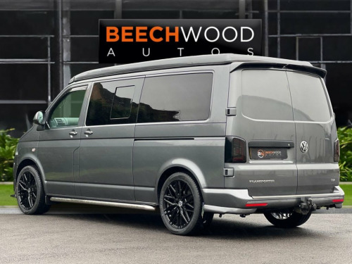 This stunning Volkswagen Transporter 2.0 TDI T30 Long Wheelbase camper van has been converted to a high-spec 4-berth pop-top, offering both comfort and practicality for everyday driving and extended adventures. Powered by a 2.0 TDI diesel engine and paired with a manual gearbox, this T30 L3 H1 model provides a smooth and reliable driving experience. The camper features six seats, including front captain chairs that swivel to create a comfortable dining area with a table. The fully equipped kitchen includes a gas hob, sink, and microwave, while a gas heater ensures all-season comfort. Additional amenities include a built-in toilet, TV with aerial, and ample storage throughout, making it ideal for families, couples, or festival trips. Finished to an exceptionally high standard, this camper conversion also boasts brand new 20-inch alloy wheels and tyres, adding to its stylish appearance. The pop-top roof provides excellent standing room and additional sleeping accommodation, enhancing practicality and comfort. This camper drives superbly, looks fantastic, and is ready to enjoy immediately. Viewing is highly recommended, as this rare, high-spec example won't be around for long. 12V Socket, 16in Steel Wheels with Wheel Trims, 2 Folding and Pivoted Sun Visors with Va, 2 Storage Compartments in Dash Panel, 2 , 3-Point Inertia Reel Seat Belts, Height , 4 Speakers, 8 Load Lashing Rings, Anti-Lock Braking System (ABS), Armrests for Driver and Front Passenger , Bluetooth Mobile Phone Connection, Body-Coloured Bumpers, Door Mirrors and , Cruise Control, Deadlocks, Digital Clock, Drinks Holder, Driver Airbag, Driver Seat with Lumbar Adjustment, Drivers Seat with Height Adjustment, Electronic Brakeforce Distribution (EBD), Electronic Immobiliser Transponder, Externally Adjustable Exterior Mirrors, Front Passenger Airbag with Deactivation, Full Height Steel Bulkhead, Grab Han