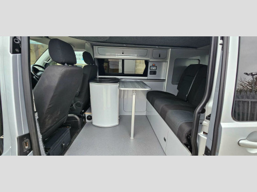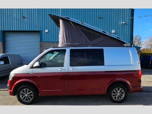 Was originally 39950, This superb vw T6 150bhp Highline campervan has just come to market and on the lookout for its new lucky owner. This van has fsh including cambelt. It has been fully health checked here and a new full service carried out along with mot ready for its new owner. What do you get for your money?, This is a high standard converted campervan. The biggest plus point for a van of this size is it has a rib-bed type. This gives you the greatest width possible for sleeping and is made with factory seat comfort for the journeys ahead when travelling in rear. These arent cheap beds and only seen in more upmarket conversions. , It has full rear electrics and leisure battery power controlling rear lights, water pump, fridge. Your see a unusual design layout whereby the fridge is fully hidden by a cupboard which can act as a secondary fixed workspace or table but also allows the fridge to be used when bed is out. The van has a sink and hob making it fully usable as what I would call a weekender type camper although many people would utilise the drive away awning rail for longer stays away. The van has a Slimline pop up roof which can be used as a bed and also gives the user additional height when using the van during the day. The roof has a Allen key type fastening which is easier to secure and more appealing then the cheaper strap type hold downs. It has multiple lighting in the van and can also be used in the cover months with its rear diesel heater. Passenger seat is swivel and there are various storage cupboards throughout, blinds over all windows. The van also benefits with a lockable safe to keep your important valuables, documents secure. , The van itself has factory nav, dab and Bluetooth,a rear reversing camera, cruise control, 150bhp of power a 7 speed dsg gearbox, electric windows, heated powerfold wing mirrors, upgraded led headlights giving great visabilty at night, alliy wheels, soft close side door, 2tone met paint