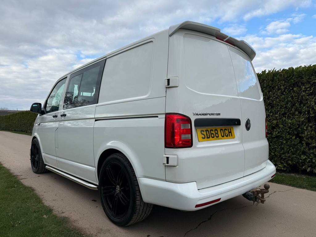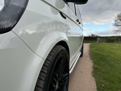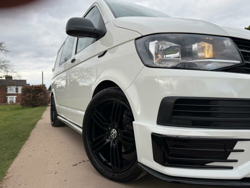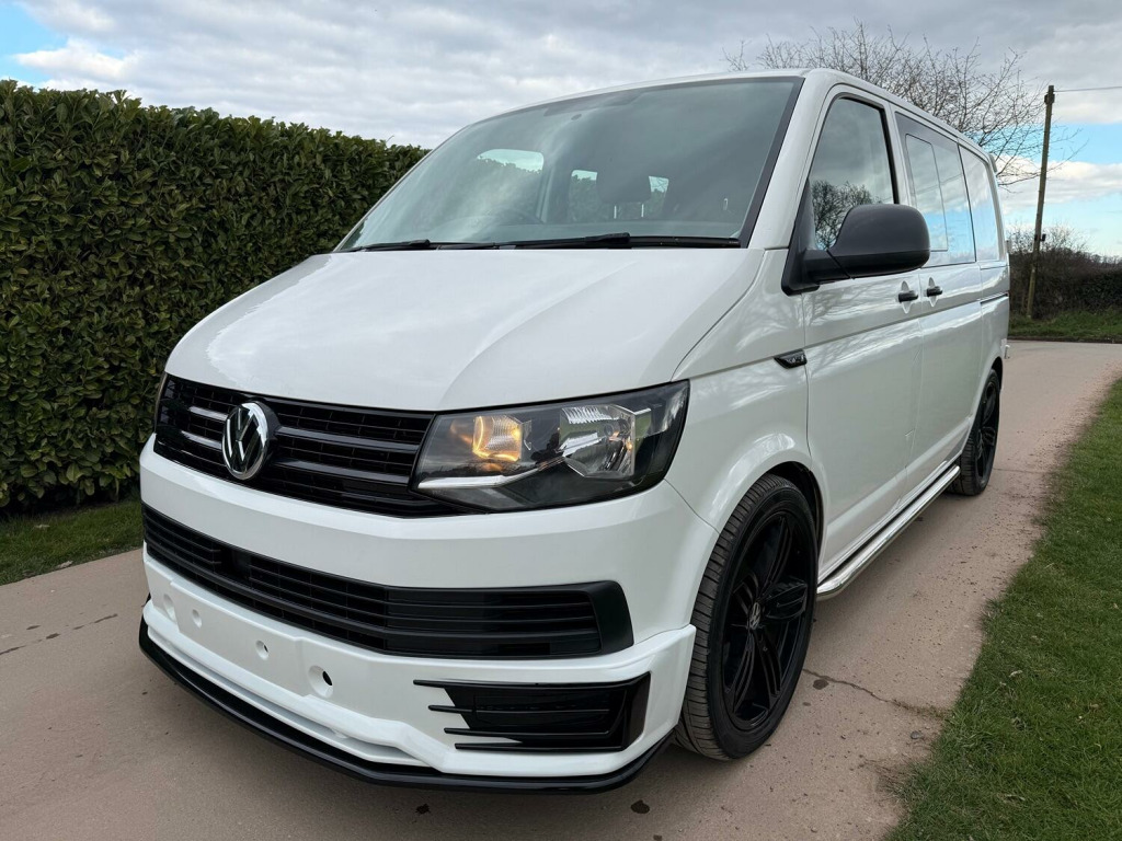 VW Transporter SWB Kombi conversion. 99500 miles, 5 services. 1 OWNER! , Brand new clutch and flywheel about to be fitted! , Fully carpet lined, and insulated. Full sportline kit consisting of front spoiler, gloss black front grille, gloss black grille inserts and lower gloss black front splitter. 20 inch gloss black alloy wheels. Colour coded rear spoiler, stainless side bars. Lowered 50mm. Isofix rear bench. Seat covers can be applied in any colour combination of choice. For more information on our builds and reviews, please visit our Facebook page.