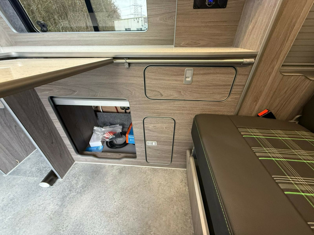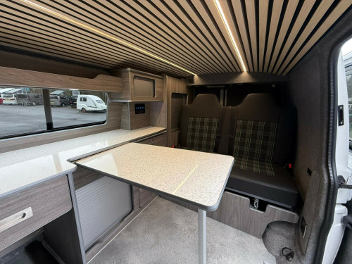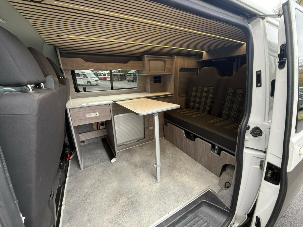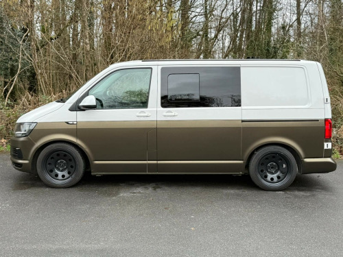 This 2018 VW Transporter StartLine Day Van is a proper head-turner finished in an incredible white and gold two-tone wrap that looks mega in any light, paired perfectly with smart black alloys and wide tyres for a real planted, sporty stance. With 102,000 miles, it's been enjoyed as it should be, and it still delivers that iconic Transporter drive that makes these vans so sought-after for weekends away, surf trips, bike days, or everyday style with serious practicality.Inside, it's been kitted out with a quality Vulcan Rock and Roll Bed and a full CNC camper conversion, giving you a clean, modern layout that's ready to use from day one. Whether you're chasing quick overnight escapes or building the perfect adventure van, this one's already set up to make life easy and if you want to take it a step further, a fridge, sink, and hob can also be added to create an even more complete touring setup. Just load up, turn the key, and go. r conditioning, bluetooth connection, full leather, barn doors, dual passenger seat, power steering, rear parking sensor, abs, air bag, central locking, immobiliser, remote central locking, electric windows, 3rd party sound system, radio, front head restraints, alloy wheels, electric battery charger, electric hook up, vulcan rock n roll bed, jbl speaker system, alloy wheels, barn doors, reversing sensors