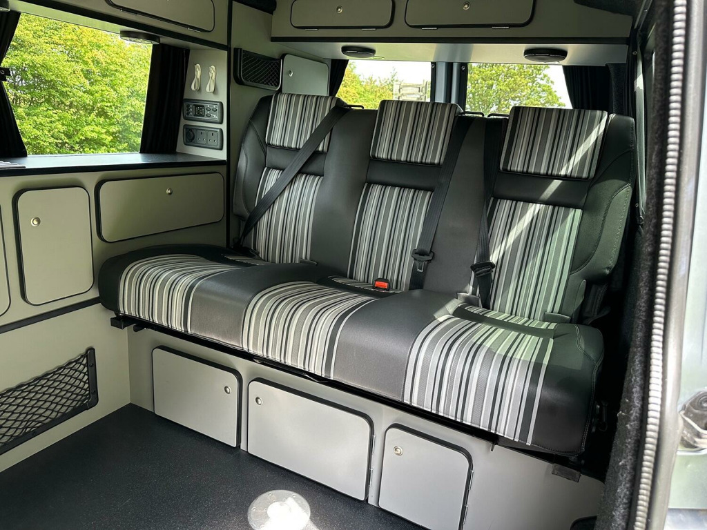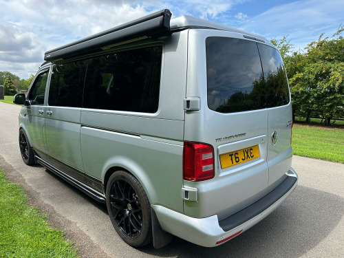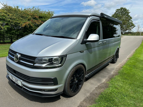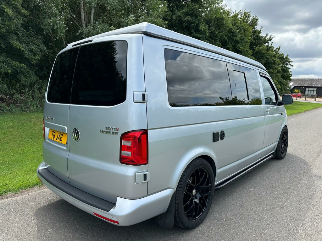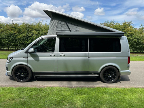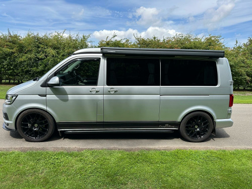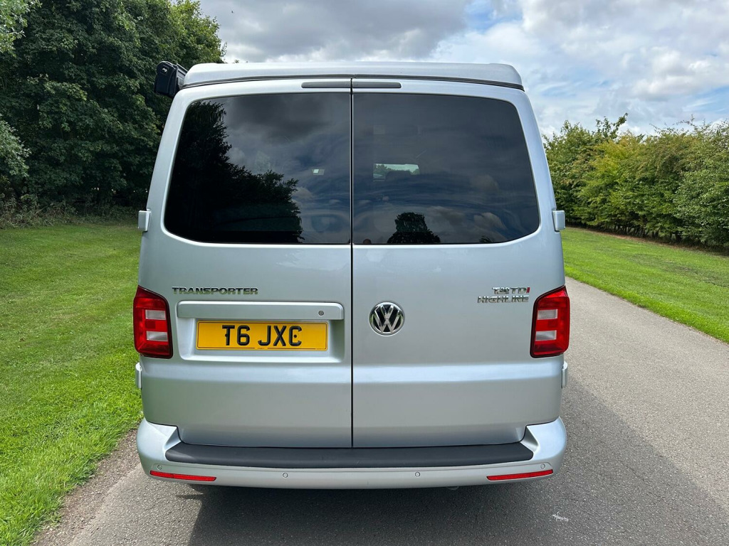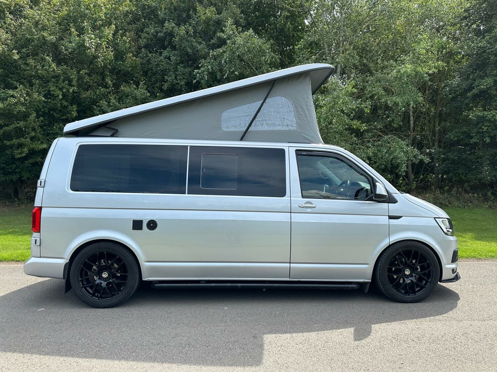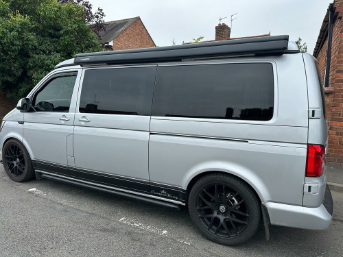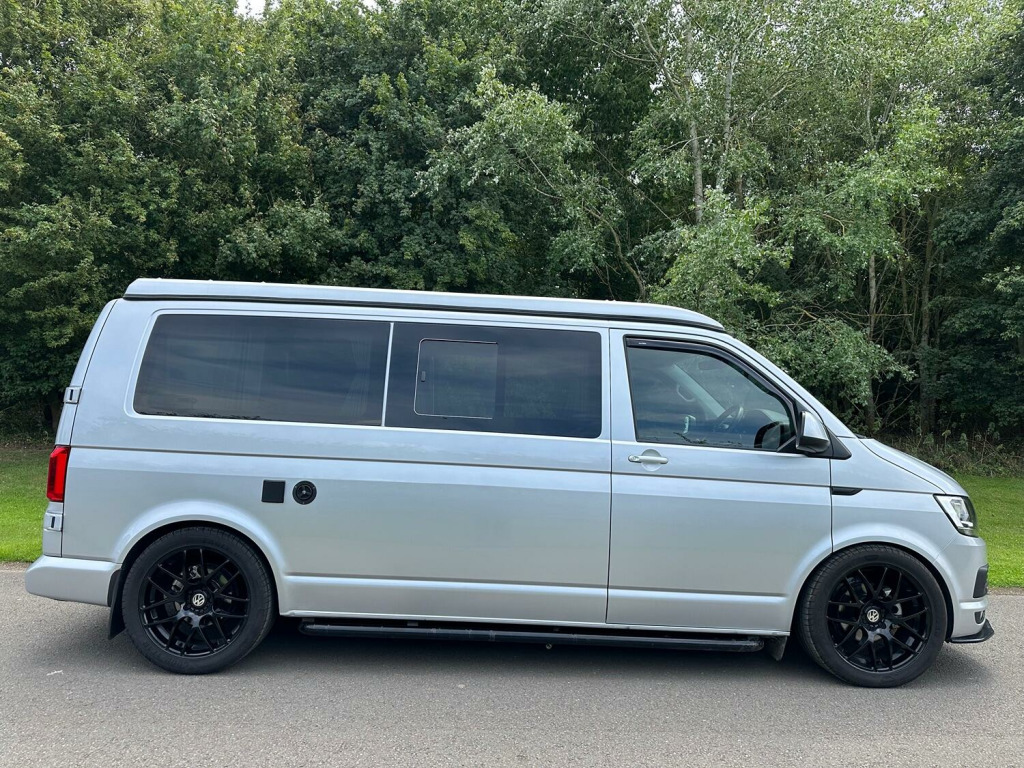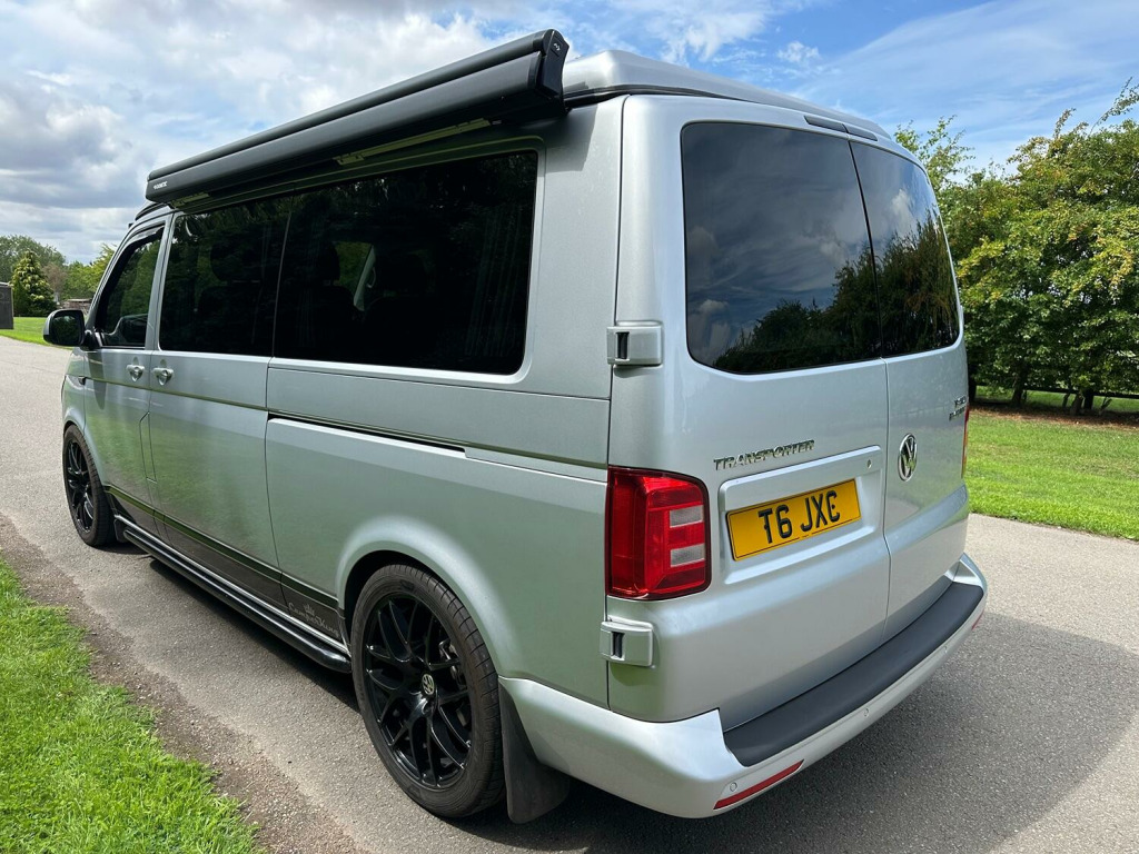 *THE ANSWER IS YES*, THE QUESTION- IS THERE A DEAL TO BE HAD, YES COME AND SEE US OR GET IN TOUCH. THIS IS A TRANSPORTER CAMPER CONVERSION CARRIED OUT BY AWARD WINNING CAMPER KING BASED ON A T6 T30 LWB TDi 150 6SPEED MANUAL HIGH LINE, THIS VAN HAS BEEN VERY WELL CARED FOR AND HAS SOME USEFUL TOUCHES INSTALLED BY THE PREVIOUS OWNER. THIS CAMPER HAS SEATS FOR 6 - 3 UP FRONT AND 3 IN THE REAR AS PART OF THE ROCK AND ROLL BED, ALL WITH SEATBELTS. FRONT TWO PASSENGER SEATS SWIVEL TO FACE THE REAR, THE BACK REST FOLDS FLAT AND HAS A REINFORCED BACK BOARD TO ALLOW YOU TO STAND ON IT FOR ACCESS TO THE POP TOP DOUBLE BED. FULL SIDE AWNING, AIR CONDITINING, NIGHT HEATED, HEATED SCREEN, CRUISE, LOVELY GREY/BLACK AND WHITE STRIPED LEATHER STYLE SEATS TO COMPLIMENT THE GREY CABINETS, 20 INCH ALLOYS WITH GOODYEAR EAGLE TYRES, BILSTEIN ADJUSTABLE SUSPENSION - THIS MAKES THE VAN DRIVE AND HANDLE SO MUCH BETTER THAN ONE ON STANDARD SUSPENSION. SIDE STEPS, WINDOWS AND CURTAINS ALL AROUND. POPPERS FITTED TO FACILITATE A BLACK OUT BLIND ON THE FRONT SCREEN, FITTED LEISURE BATTERIES. PLUS MUCH MUCH MORE. PLEASE NOTE THIS VEHICLE CAN COME WITH THE T6 REGISTRATION OR WE CAN REVERT IT TO THE ORIGINAL STANDARD REGISTRATION NUMBER. PX WELCOME