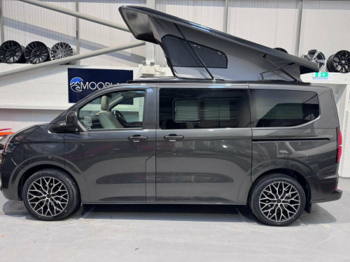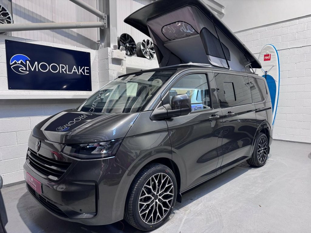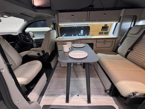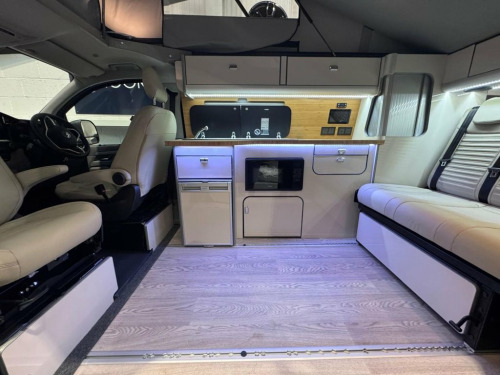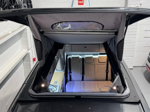Welcome to the ALL-NEW VW Transporter (also know as the T7). This is the BRAND NEW version of this iconic camper with over 75 years of pedigree. We have these in stock now, and more vans available to redesign to your preferred specification. These vans come with 5 YEAR warranty and 5 YEAR servicing included. We also offer a 5 YEAR warranty on the interior campervan conversion (Ts and Cs apply). The standard spec on all our new Transporters is as follows: Three-seater rear seat on sliding rails, bringing your passengers closer to you, giving you a huge amount of boot space. Solar panel, night heater, rear shower, microwave, gas hob, sink with running water, electric 240v hookup, 12v leisure battery, Isofix on rear seats, 4 berth with sprung bed platform up top, safari roof (opens up completely), integrated table, Van Shades Window Blinds, USBs, Wireless phone charger, rear speakers. DAB, car play, keyless start, AC, Bluetooth, LED lighting, 50L fridge with freezer compartment, Touchscreen, Cruise Control, Multifunction Steering Wheel, Keyless Start, Parking sensors, Electrically adjustable door mirrors, Front electric windows. ALSO ON THIS CAMPER: HEATED FRONT SEATS, REAR CAMERA, Heated rear screen, heated front screen, 20" Velare wheels (change to another style at no cost). Why not come along to one of our showrooms to see what we have in stock or to choose your very own specification from one of our vans ready to convert. SHOWROOMS IN HULL AND WATFORD - PLEASE CALL OR