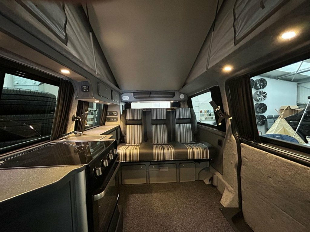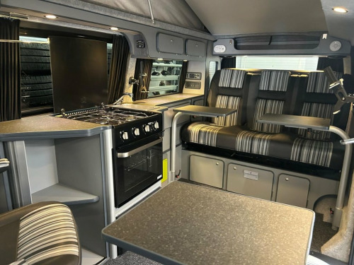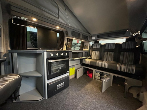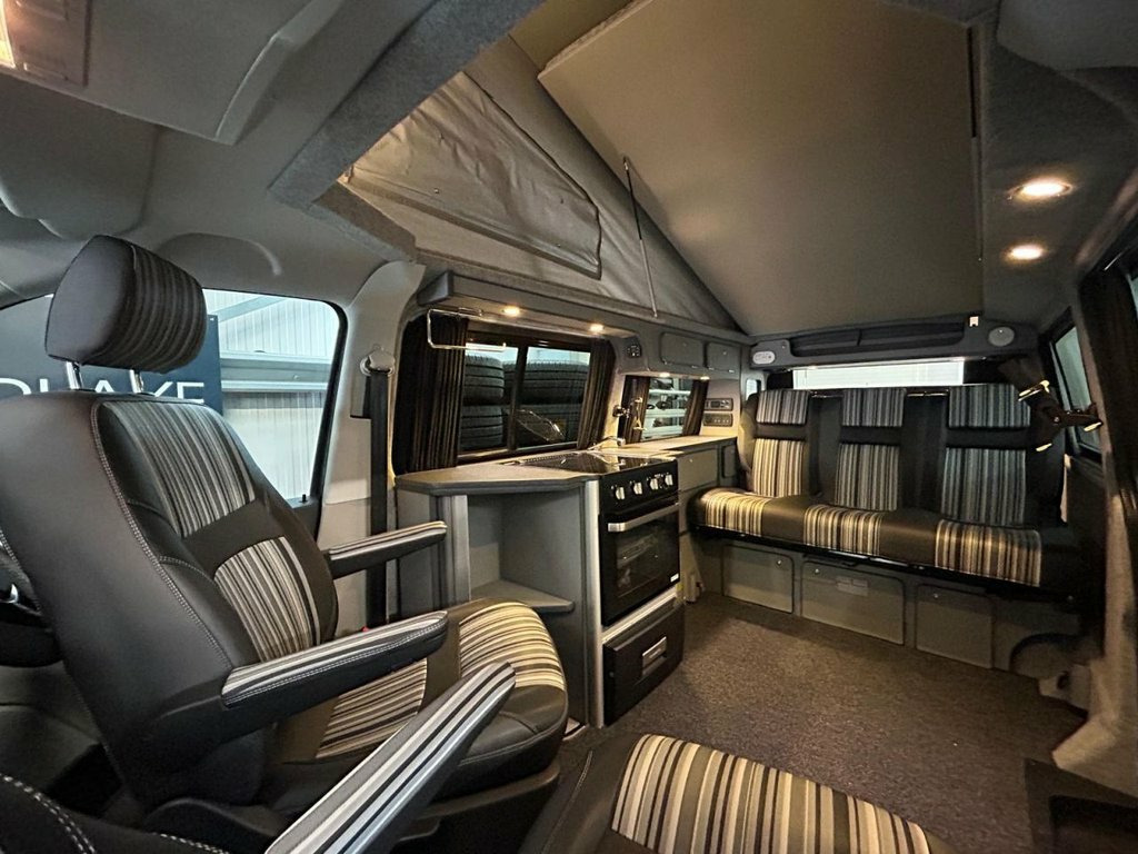 This spec Portofino van is incredibly rare - you'll be hard pushed to find another low mileage example in the UK. Lovely spec LWB AUTO CamperKing Santorini. 5 Seats, Full Oven/Hob, loads of storage and living space. Upgrades include solar panel, rear camera, recent tyres all round, wind-out sunshade, 20" alloy wheels, diesel night heater. Deluxe upholstery, triple rear seat with wider bed. The van itself has a full service history, long MOT, Air Con, Bluetooth, Towbar, DAB radio, electric windows, cruise control, electric mirrors. Running water, sink, LED lighting, full carpet lining, curtains. 12V Socket x2, 16in Steel Wheels, ABS - Anti-Lock Braking System, Airbags - Driver and Front Passenger wit, Automatic Post-Collision Braking System, BAS - Brake Assist System, Black Door Mirrors and Door Handles, Black Wheel Centre Caps, Bluetooth Hands Free Set, Bumpers - Front and Rear - Black, Composition Colour DAB+ Radio with 5in T, Dashboard - Dimmable Illumination, Digital Clock, Door Mirrors - Electrically Adjustable a, Driver Alert with Multi-Function Display, Drivers Seat with Height - Lumbar - Reac, EBD - Electronic Brake Pressure Distribu, EDL - Electronic Differential Lock, ESP - Electronic Stability Programme, Electric Windows - Front, Electronic Engine Immobiliser, Front Assis