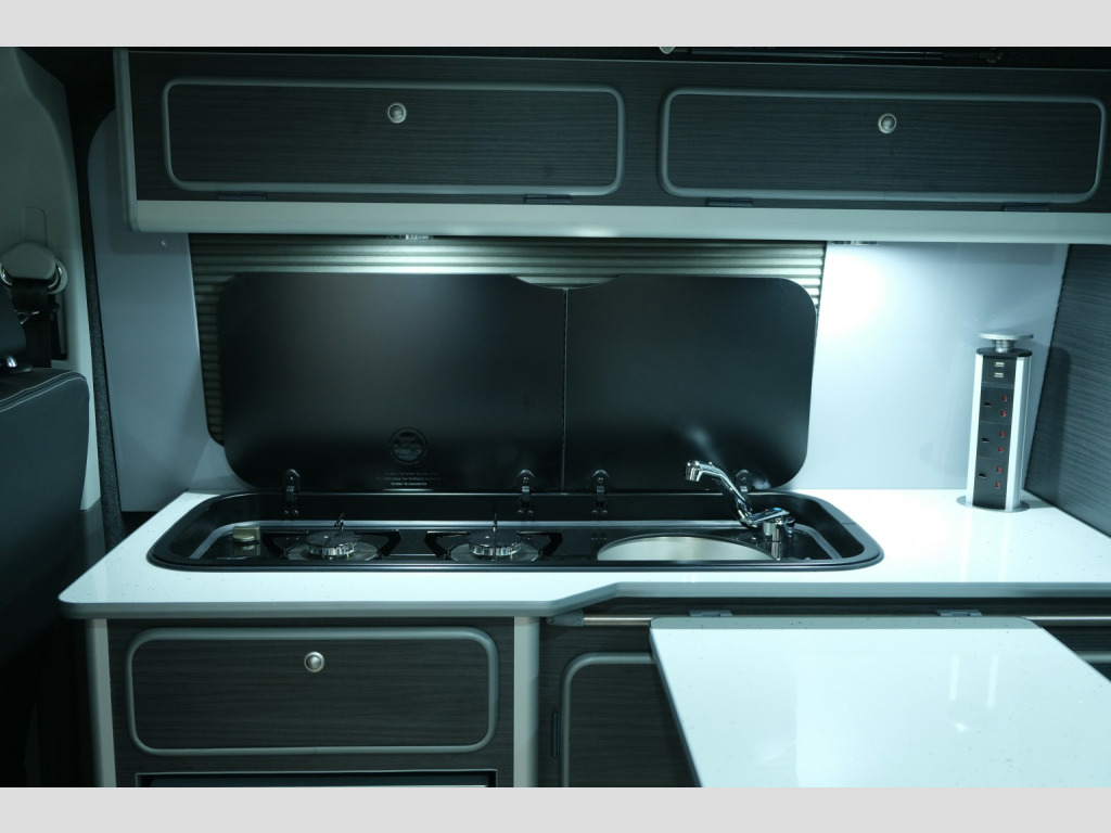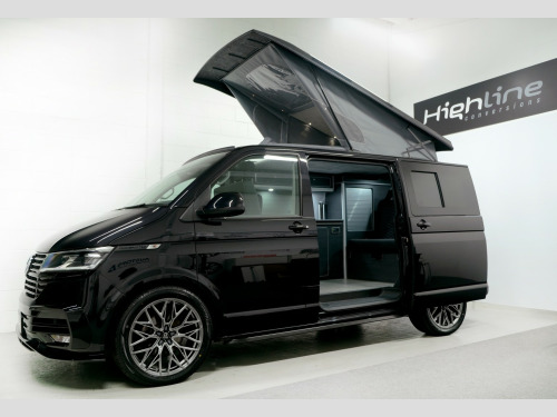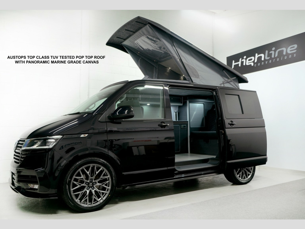 *** A SUPERB CONDITION LOW MILEAGE VW TRANSPORTER T6.1 R LINE DESIGN CAMPERVAN *** THIS IS A BRAND NEW CONVERSION CARRIED OUT BUY US ALL PARTS ARE NEW *** MASSIVE SPEC WHICH INCLUDES - ABT FRONT SPOILER AND SPLITTER - WOLFRACE 20 INCH MUNICH GTR CARBON RACING ALLOYS - 45 MM EIBACH LOWERING SPRINGS - 200 WATT RENOGY SOLAR PANEL PLUS DC TO DC CHARGER - 100Ah LITHIUM LEISURE BATTERY *** TOP QUALITY INTERIOR FINISH RE TRIMMED IN R LINE BLACK LEATHER WITH HEX DESIGN ALCANTARA CENTRES - PASSENGER SEAT M1 TESTED SWIVEL BASE TO FACE REAR - AUTOTERM DIESEL NIGHT HEATER - VANSHADES BLACKOUT THERMAL BLIND SYSTEM THROUGHOUT- ALPICOOL 50L FRIDGE / FREEZER - THETFORD Dual Gas HOB SINK - AUSTOPS TUV TESTED POP TOP ROOF BED WITH PANORAMIC CANVAS - DRIVER AND PASSENGER SIDE REAR OPENING GLASS - RUSTY LEE M1 TUV TESTED ROCK N ROLL BED - 240V MAINS HOOK UP *** THE VAN HAS ALSO BEEN FULLY INSULATED INCLUDING ALL DOORS - SIDE PANELS AND DEAD MAT ARCHES *** VW DISCOVERY MEDIA SYSTEM WITH NAVIGATION -CAR PLAY -BLUETOOTH PHONE CONNECTION - BLUETOOTH PHONE AND MUSIC STREAMING - FRONT & REAR PARKING SENSORS - FACTORY FIT LED HEADLIGHTS WITH LED DAYTIME RUNNING LIGHTS - CRUISE CONTROL - MULTI FUNCTION DASH - LEATHER STEERING WHEEL *** FULL SERVICE HISTORY ***JUST BEEN SERVICED *** 5 year warranty on Austops Elevating pop top Roof *** 3 year warranty on all other conversion parts *** 2 YEARS VW VEHICLE WARRANTY STILL REMAINING , ****OPTIONS AVAILABLE ON REQUEST - SWAN NECK TOW BAR - FIAMMA F45S AWNING - R DESIGN SIDE DECALS ****