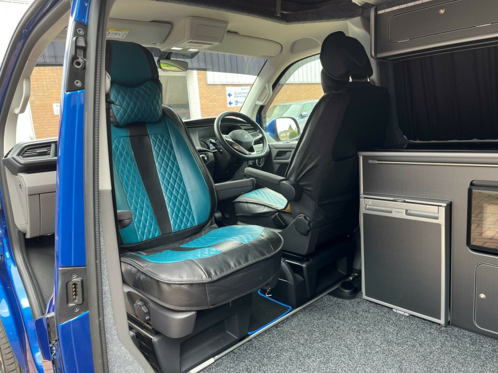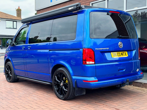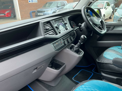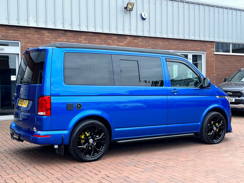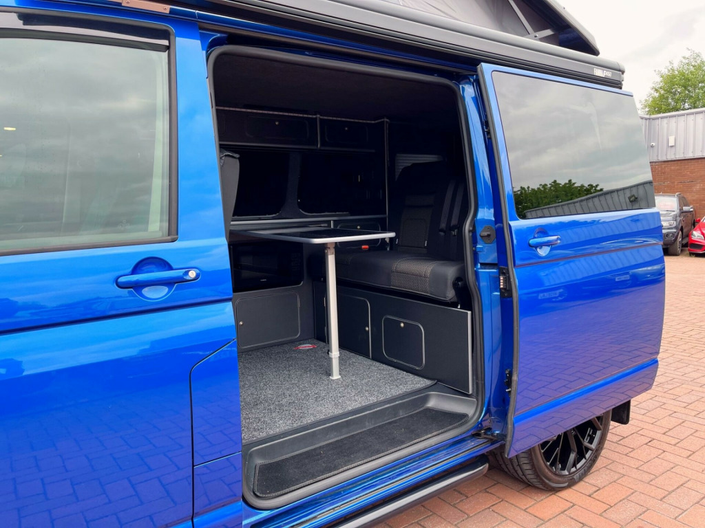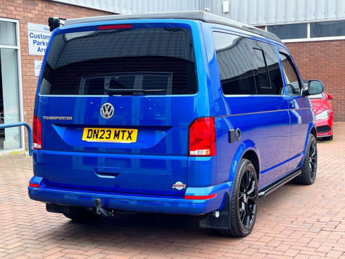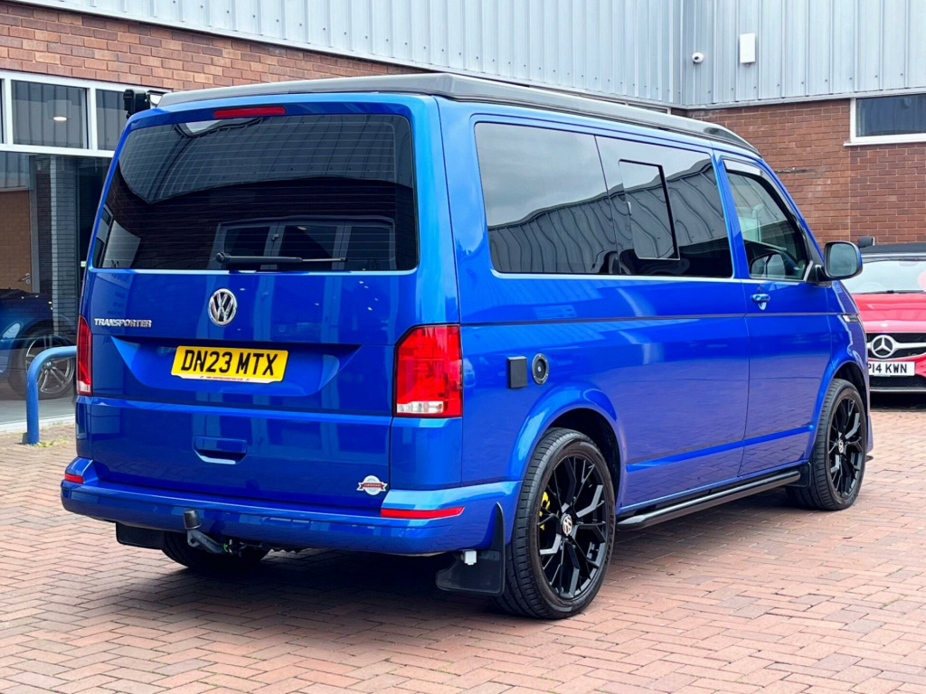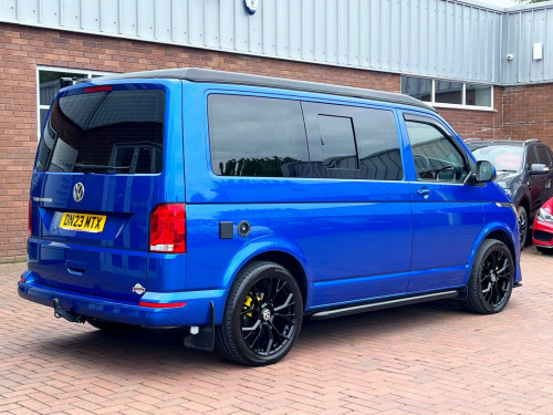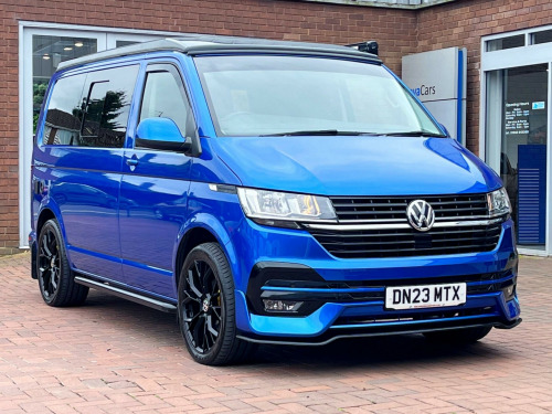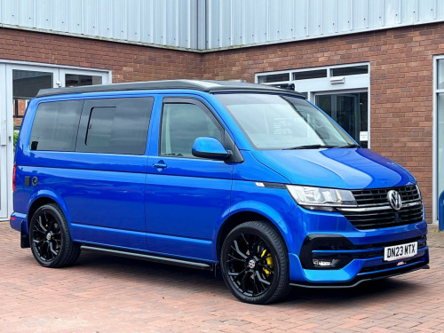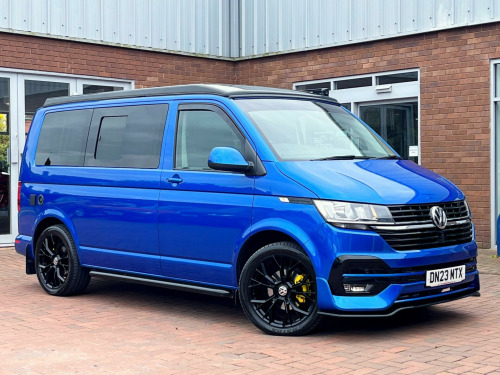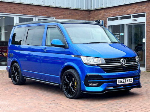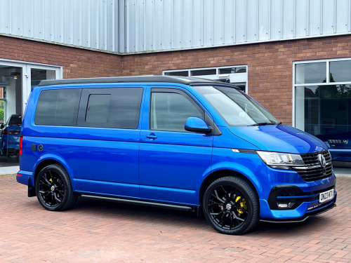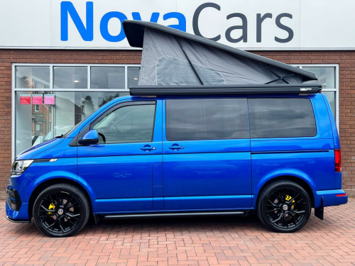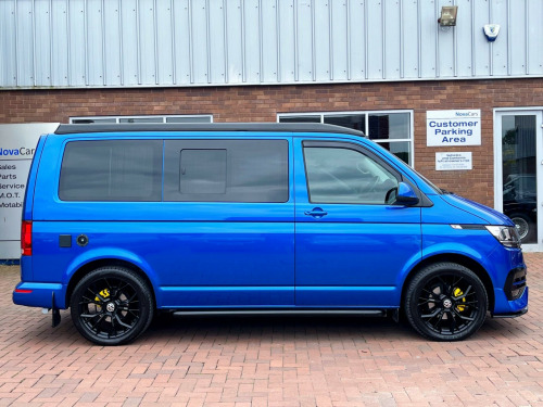 Here at NovaCars we are proud to present this 2023 23 Reg VW T6.1 110PS Highline in Ravenna Blue. The van comes with 3 years Manufacturer’s Warranty and 11,000 Miles only. The newest edition of the iconic Transporter van boasts amazing Highline spec, which includes as standard: Climatic Air Conditioning, Adaptive Cruise Control with speed limiter, Auto Headlights, Front Fog Lights, Auto Wipers, Bluetooth, Multi-Function Steering Wheel, Parking Sensors Front & Rear, Electric Heated, Adjustable and Foldable Mirrors, and APP Connect. The rear of the Campervan is fitted with a Tailgate and comes with a 13 Pin Factory Fitted Detachable Tow Bar, Iso fix, 20″ Alloy Wheels, Side Bars, and a Front Bodykit for a truly stunning finish. This Campervan is fitted with Single Captain’s Swivel Seats and there are a further 2 seats in the rear, both fitted with 3 point seatbelts. The Professional Conversion finished in Carbon Fibre wood, Jet Black flooring & Black Sparkle worktop consists of:A reimo style scenic pop top roof with hydraulic bed system4 black limo tinted privacy windows with slide opening window in kitchen areaFixed RIB bed (with isofix) with 2 (3 point) seat belts and under bed storageFull side conversionCompressor fridge (with ice box)Sink, Hob and MicroCompetitive finance available. Extended warranties available up to 3 years on all our vehicles. We are currently operating on an appointment-only basis and offer a Click&Collect/Delivery service where required. Our dedicated sales team are ready and waiting to take your enquiry, so if you are interested please get in touch on 01952 813388, or simply send us a message using the chat feature on this page. We are also happy to offer a live video viewing, where we can show you around the car as if you were here on site looking at it, for more information please get in touch.. 12V Socket - Additional, 12V Socket - Front, 16in Alloy Wheels - Clayton, ABS - Anti-Lock Braking System, ACC - Adaptive Cruise Control, ASR - Anti Slip Regulation, Air Conditioning - Electronically Controlled, Allergen Filter, Anti-Theft Alarm System with Interior Monitoring in Cab - Backup Horn and Tow-Away Protection, App-Connect, Armrest - Drivers, Automatic Dimming Rear View Mirror, Automatic Headlight Activation with Daytime Running Lights - Leaving Home - Manual Coming Home Function, Automatic Post-Collision Braking System, BAS - Brake Assist System, Body-Coloured Door Mirror Housings and Handles - Front and Rear Bumpers, Comfort Pack, Composition Colour DAB Plus Radio System with 6.5in Touch-Screen, Crosswind Assist, Dash Panel with Open Stowage Compartments - Drink Holders and Lockable Glovebox, Dashboard - Dimmable Illumination, Door Mirrors - Heated - Power Adjustable and Power Folding, Driver Alert System, Drivers Seat with Armrest - Height Adjustment and 4-Way Manual Lumbar Support, Drivers and Front Passengers Airbags with Front Passenger Airbag Deactivation Switch, EDL - Electronic Differential Lock, ESP - Electronic Stability Programme, Electric Windows - Front, Electronic Engine Immobiliser, Electronically Controlled Heating System, Exterior Package, Folding Grab Handles on Roof Frame, Folding Lashing Rings for Load Restraint System - Reinforced, Forward Collision Warning with Autonomous Emergency Braking, Front Fog Lights with Cornering Lights, Front Windshield Wipers with Intermittent Operation and Rain Sensor, Full Height Steel Bulkhead without Window, Glove Compartment with Illumination, Half-Height Side Trim Panels and Roof Trim Panels made of Hardboard, Halogen Twin Headlights, Heat Insulating Glass - Green in Cab and Passenger-Load Compartment, Heated Front Windscreen, Heavy-Duty Tool Kit and Jack, Hill Start Assist, Interior Lighting with LED Technology in Load Compartment, LED Interior Lighting - 2 Reading Lights in the Roof Console, Leather Trimmed Multi-Function Steering Wheel with Height and Longitudinal Adjustment, Locking Wheel Bolts, Manual Sliding Door Passenger Side, Multi-Function Display Plus with Black and White Display, Parking Sensors - Front and Rear, Power Steering - Electromechanical, Radiator Grille with Double Chrome Trim Strip, Rear Wing Doors Without Windows, Remote Central Locking with 2 Remote Folding Keys, Rubber Floor Covering in Cab, Seats - Dual Passenger in Cab, Single Tone Horn, Smartphone Interface, Steel Spare Wheel with Original Equipment Tyre, Sun Visors with Mirror - Airbag Label on Front Passenger Sun Visor, Warning Light and Buzzer for Front Seat Belt if Unfastened. Full dealership history