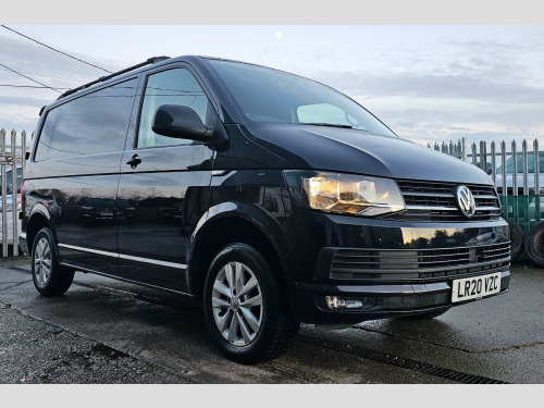 NO VAT, Finance arranged , This 2020 Volkswagen Transporter offers exceptional value with its remarkably low mileage of just 48,500 miles for its age. Spec wise you get carplay, powerfold wing mirrors, alloy wheels, cruise control, heated windscreen, rear parking sensors. This T30 Highline panel van is powered by an efficient 2.0 litre TDI diesel engine, delivering a robust 148 bhp 6 speed manual meeting Euro 6 emission standards. It, For enhanced security, it features a Thatcham Category 1 approved alarm and immobiliser system with tow away protection, perimeter and interior cab protection, and an anti-theft alarm system with interior monitoring, backup horn, and tow away protection. Additional security lock to rear doors and security plates to side door. The Highline trim also includes a Driver Alert System to help keep you focused on the road. The 148 bhp output from the 2.0 litre TDI engine means this Transporter offers a strong performance, making it better equipped for carrying loads and maintaining speed compared to many similar vehicles. The Euro 6 compliance indicates lower emissions, which is beneficial for driving in certain areas. The combination of the Highline trim, the powerful yet economical diesel engine, and the comprehensive security features makes this 2020 Volkswagen Transporter a practical and secure choice for your business needs.