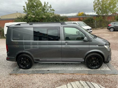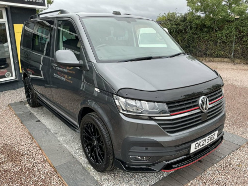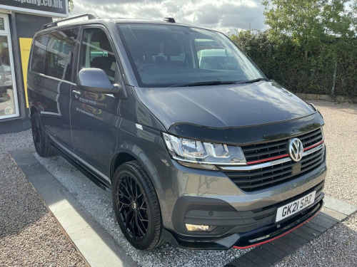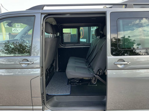 CHECK OUT THIS VAN AND THE EXTRAS!! 1 CAR COMPANY BUY WITH CONFIDENCE FROM A 5 STAR FAMILY RUN BUSINESS ..  1 CAR COMPANY ARE PLEASED TO PRESENT THIS SMART 2021 VOLKSWAGEN TRANSPORTER 2.0 TDI T30 Highline Kombi Double Cab 5dr Diesel Manual FWD SWB Euro 6 (s/s) (110 ps)! 6 seats package, 20" Black Edition Wolfrace Alloy Wheels, ABS Gloss Black Front Splitter, Black Roof Rails, Sportsline Side Bars, Gloss Black Tailgate Spoiler, Carbon Bumper Protector, Inside Full Kombi Carpet Set, Inside Rear Sides Carpeted, Roof in Alcantara, Full Highline Spec INC Heated Screen. Will come with a New MOT. New Service and a 6 Month Warranty wise Warranty. Service History: Serviced with VW Van Centre and Us now.  Indium Grey, Carpet Floor Covering in Cab, Tyres - All-weather, Tailgate without Window and Power Latchi, Armrest - Drivers and Passenger, Composition Colour DAB Plus Radio System