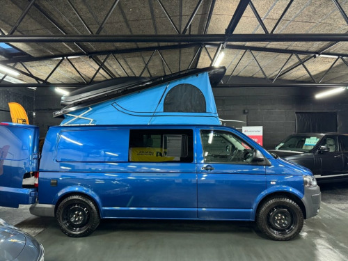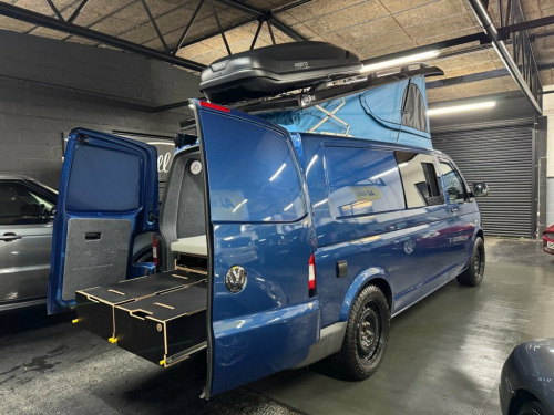2010 Volkswagen Transporter T30 2.0 TDI DSG Automatic – Long Wheelbase 4 Berth Campervan 82,000 miles | 10 documented services | Excellent condition throughout  This beautifully presented long wheelbase VW Transporter T30 offers a superb blend of comfort, practicality, and reliability. Converted to a high standard and featuring the smooth DSG automatic gearbox, it's ideal for both family adventures and relaxed touring breaks.  Key Details:  2.0 TDI Diesel Engine  DSG Automatic Transmission  82,000 miles with 10 documented services  Long Wheelbase (LWB) model  4 Berth sleeping configuration  4 seats (3 up front and 1 removable rear seat)  Camper Features:  Pop-top roof providing additional sleeping space and headroom  Fold-down double bed, designed to fold in two stages for full standing height when not in use  Roll-out awning for outdoor shelter and comfort  Cooler unit  LED interior lighting  Roof Rails  Roof Box  Roll-out rear storage compartments for easy access and practicality  Blackout curtains for privacy and warmth  Portable solar panels for off-grid capability  Off-road steel wheels with all-terrain tyres for a rugged and capable look  A smart, well-maintained campervan that's ready to drive away and enjoy — equally suited to weekend getaways or longer road trips.