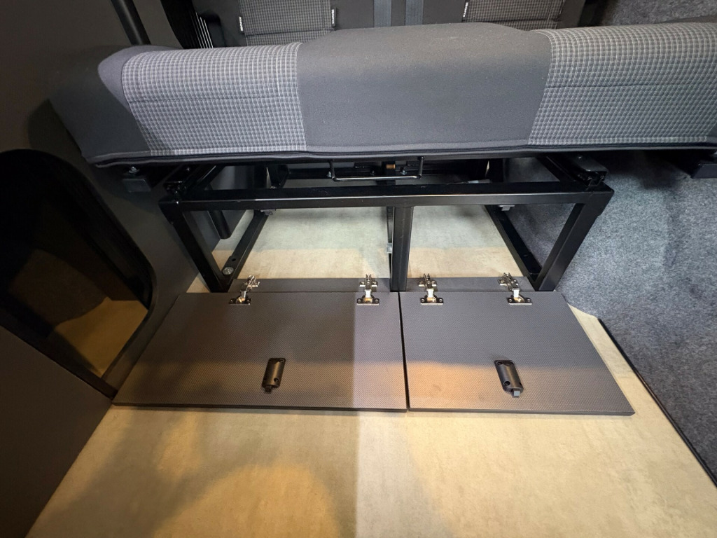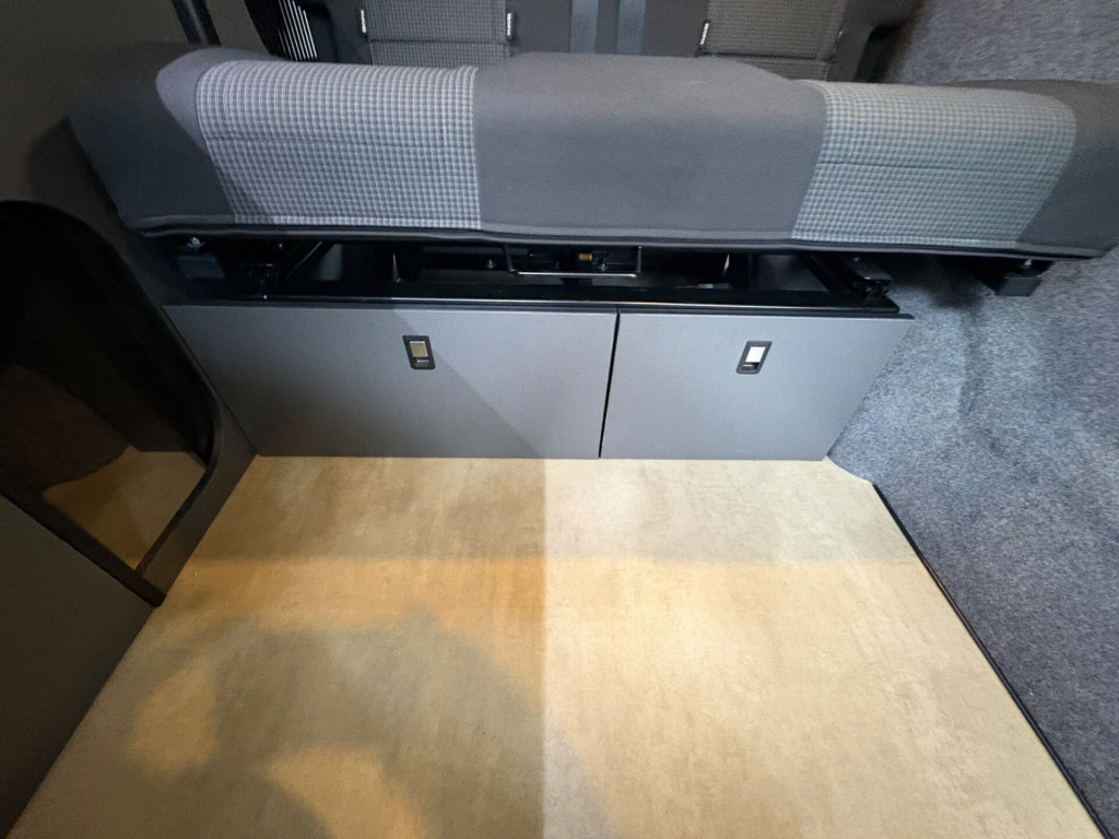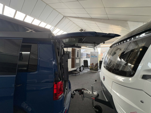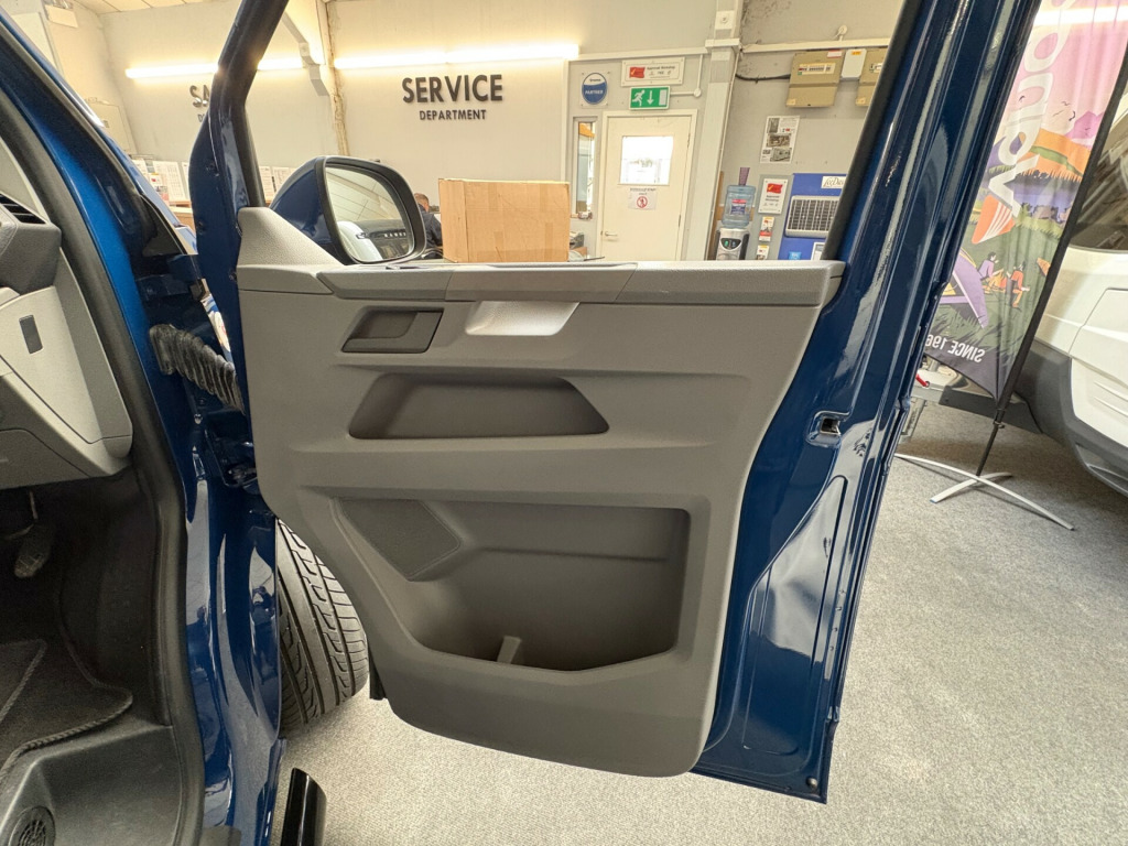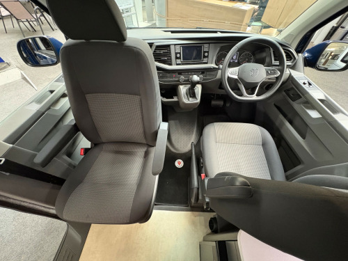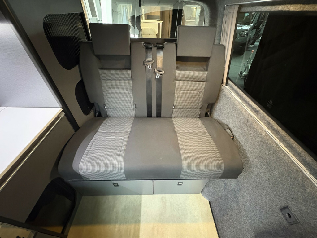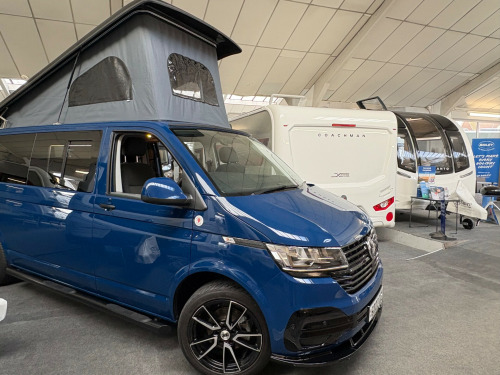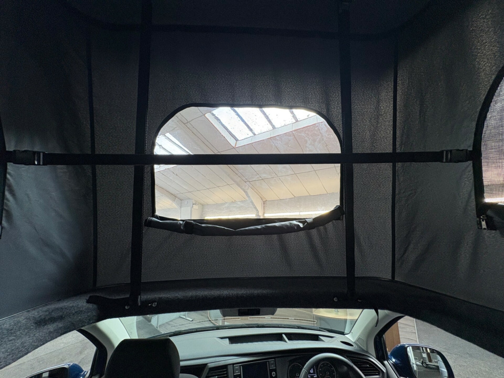 Year 2023, Berth: 4, 2.0 TDI, Automatic, Length: 4.9m / 16'1'', Width: 1.9m / 6'2'', Height: 1.99m / 6'6''. Ist reg 15.06.23. Rebellion campervan conversion. This four berth long wheel base camper has four travelling seats with seat belts. The rear seats become a double bed, while another bed is included within the pop top. A small kitchen with water a two burner gas hob, and a compressor fridge, provide options for a hot drink or to make a meal, whether you are just out for the day or out for longer. The Thule wind out canopy provides shade enabling people to sit outside, without worrying about the full glare of the sun. The cab air con and onboard diesel heater, provide a comfortable interior at any time of year. The rear tow bar is useful to tow a trailer, caravan or even to mount a cycle carrier. uise control, parking camera, power steering, rear parking sensor, steering wheel rake adjustment, abs, air bag, isofix child seat anchor points, twin air bags, immobiliser, remote central locking, electric front windows, electric handbrake, electric mirrors, electric windows, heated door mirrors, front armrest, alloy wheels, body coloured bumpers, front fog lights, side steps, solid paint, spare wheel, towbar - fixed, rear rock 'n' roll bed, cold water and sink, two burner gas hob, grill, sanjo compressor fridge, thetford porta potti toilet, thule wind out canopy, led lighting, usb sockets, two rear travel seats with seat belts, pop up top with additional bed, rebellion camper conversion, diesel heater, black side rails, apple car play, on board water tank, cab air conditioning, 19