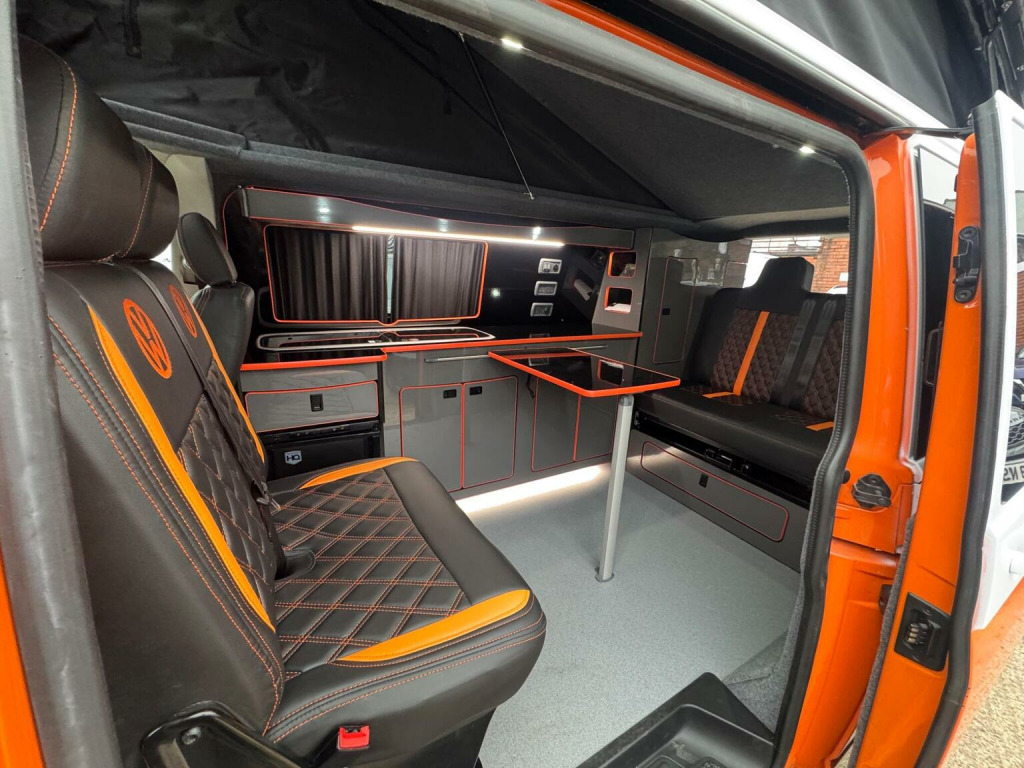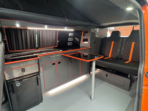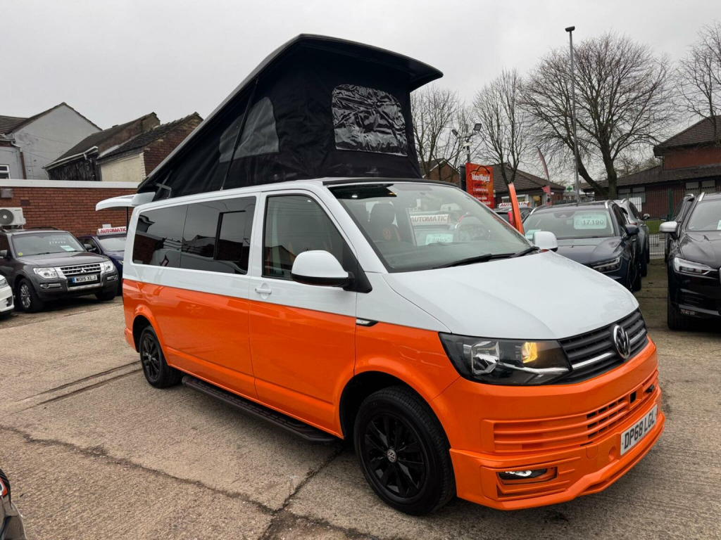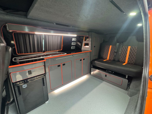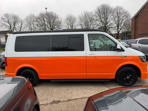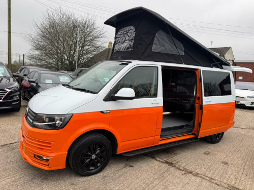 We are pleased to present a superb Volkswagen Transporter 2.0 TDI T32 BlueMotion Tech Startline DSG FWD LWB Euro 6 (s/s) 5dr, X RAC VEHICLE comes with full service history, 8 STAMPS, just been serviced with a pop Top Camper Conversion and a stunning layout.pop roof and rock and-rull seats. This versatile camper comes with a 6-month nationwide warranty.break down cover, The van has had the timing belt and water pump replaced in 17/11/2023 @ 79056 miles.new dual Mass flywheel on 22/04/2025, MOT valid until, 6 December 2026, with no advisories It runs and drives like new, featuring 5 seat belts, front swivel seat, Air condition, SAT NAV, DAB radio, Bluetooth, parking sensors and much more. Designed for comfort and practicality, it includes a 4-berth rock-and-roll bed with a spacious double inside the cabin and in the pop-up roof, a sink, fridge, and plentiful storage with cupboards throughout. USB charge points, wall socket, 2 keys spotlights, tinted glass, blinds, enhance its appeal. Mechanically, the van is sound, with excellent bodywork and interior condition. Its ready to use with no worries about damp or appliances. Features include ABS, airbags, remote central locking, electric heated and adjustable mirrors, lumbar and height-adjustable drivers seat, hill hold assist, immobiliser, and a note on, HPI CLEAR, certificate availble , Please check the pictures and videos for more details. This is a fantastic van in excellent condition inside and out, perfect for adventures or everyday use. or visit wwwmotorvillageltd.co.uk