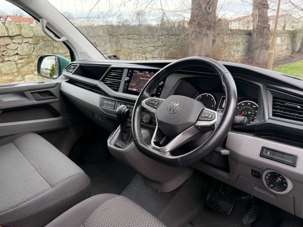We Are Delighted To Offer This Low Mileage Example Transporter T32 Highline DSG Specification With A Full VW Service History & The Following Impressive Factory Options. Finished In Bay Leaf Green Metallic With Black Trim. For Further Information Or To Arrange A Viewing please Contact Andrew Or Ross You Will Not Be Disappointed. Supplied WIth Original Book Packs & 2 Sets Of Keys This 2021 Volkswagen Transporter presents an exceptional opportunity with its remarkably low mileage of just 30,000 miles for its age. This Highline derivative, a 2.0 TDI T32 Kombi with a DSG automatic transmission, is a front wheel drive, short wheelbase model that meets Euro 6 emissions standards. It comes equipped with convenient features such as Adaptive Cruise Control with a speed limiter, electronically controlled air conditioning for optimal comfort, and automatic headlights with a manual coming home function. Parking is made easier with front and rear Park Distance Control, and the Composition Colour DAB Plus radio system includes Bluetooth connectivity for seamless audio and calls.The Highline trim level signifies a superior specification, offering a host of benefits that set this Transporter apart. Its generous cargo volume of 4300 litres ensures ample space for all your needs, while its low insurance group rating contributes to lower running costs. These highlights demonstrate how this vehicle offers enhanced value and practicality compared to other similar models on the market.. 17in Alloy Wheels - Devonport - Silver, ABS - Anti-Lock Braking System, ASR - Anti Slip Regulation, Air Conditioning - Electronically Controlled, Allergen Filter, Anti-Theft Alarm System with Interior Monitoring in Cab - Backup Horn and Tow-Away Protection, Armrest - Drivers and Passenger, Auto-Dimming Breakaway Interior Rearview Mirror, Automatic Headlight Activation with Daytime Running Lights - Leaving Home - Manual Coming Home Function, BAS - Brake Assist System, Basic Single Passenger Seat, Composition Colour DAB Plus Radio System with 6.5in Touch-Screen, Crosswind Assist, Cruise Control - Adaptive with Speed Limiter, Dash Panel with Open Stowage Compartments - Drink Holders and Lockable Glovebox, Driver Alert System, Drivers and Front Passengers Airbags with Front Passenger Airbag Deactivation Switch, EDL - Electronic Differential Lock, ESP - Electronic Stability Programme, Electric Windows - Front, Electromechanical Speed Sensitive Power Steering - Height and Longitudinally Adjustable Steering Column, Electronic Engine Immobiliser, Electronically Controlled Heating System, Exterior Package, Folding Grab Handles on Roof Frame, Forward Collision Warning - Front Assist with Autonomous Emergency Braking, Front Fog Lights with Cornering Lights, Front Windshield Wipers with Intermittent Operation and Rain Sensor, Full Height Side Trim Panels in the Load Compartment, Glove Compartment with Illumination, Grab Handles on A-Pillars - on Driver and Front Passenger Side, Half-Height Side Trim Panels and Roof Trim Panels made of Hardboard, Halogen Twin Headlights, Heat Insulated Glass - Green in Cab and Privacy Glass in Passenger Compartment, Heat Insulating Glass in Cab, Height Adjustment - Manual - Lumbar Support - Manual - For Driver and Single Passenger Seats, Hill Start Assist, Illuminated Instruments - Dimmable, Illuminated Steps in Passenger Compartment, Interior Lighting with LED Technology in Load and Passenger Compartment, Isofix and Top Tether Child Seat Anchors for the Outer Seats of the Three Seater Bench Seat, LED Interior Lighting - 2 Reading Lights in the Roof Console, Laminated Windscreen - Heated, Leather-Wrapped Multi-Function Steering Wheel, Load-lashing Rings - Six Folding, Locking Wheel Bolts, Multi-Function Display Plus, Park Distance Control in Front and Rear, Radiator Grille with Double Chrome Trim Strip, Rear Window with Heat-Insulating Glass - Heated - with Wiper and Washer System, Remote Central Locking with 2 Remote Folding Keys, Rubber Floor Covering in Cab, Rubber Floor Covering in Passenger and Load Compartment with Loading Edge Protection At Rear, Seats - Three Man Bench - Folding and Tipping Row 2, Single Tone Horn, Sliding Window in Front and Closed Side Panel in Rear in Load-Passenger Compartment Drivers Side, Sliding Window in Front and Closed Side Panel in Rear in Load-Passenger Compartment Passenger Side, Steel Spare Wheel with Original Equipment Tyre, Sun Visor with Mirror and Airbag Label - Passenger, Tailgate Closing with Unlatching from the Inside, Tailgate with Heated Rear Window, Tool Kit and Jack, Two 12V Outlets - Dashboard, Tyre Pressure Indicator, Volkswagen App Connect, Waste Bin for Door Pockets in Cab, Wing Mirrors - Heated - Power Adjustable and Power Folding, eCall Emergency System, Finished In Bay Leaf Green Metallic With Black Trim, Heated Front Seats, Discover Media Navigation System with 8in Touch Screen, Rear View Camera.