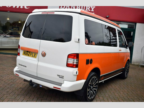 A sensational 4-berth Volkswagen T26 Campervan, converted with an OJ Conversion by Camper King. In exceptional condition throughout featuring 20" alloy wheels on uprated springs, pop-top raising roof, 2-ring gas hob, fridge-freezer, water supply, Rock n Roll bed, on-board Webasto heater, full curtain set, three front seats (2 of which swivel), cruise control, 240v mains hook up, 240v interior wall sockets, leisure battery, control panel, tow bar, black and white chessboard flooring, interior soft-touch LED lighting, plentiful storage, DAB radio with navigation, rear camera and Bluetooth connectivity. Only three owners from new with comprehensive service history, serviced at 12,431m, 19,163m, 26,831m, 30,830m, 34,506m, 38,591m and 47,735m. At point of sale the vehicle will receive an engine service. MOT'd (advisory free) until 15th August 2026. Complete with two keys, a full book pack along with instructions for all the camper fittings. Very, very eye-catching. This van is being sold privately by a member of staff. 12V Socket, 16in Steel Wheels, 2 Folding and Pivoted Sun Visors, 2 Speakers, 2 Storage Compartments in Dash Panel, 2 , 3-Point Inertia Reel Seat Belts, Height , 6 Load Lashing Rings, Anti-Lock Braking System (ABS), Deadlocks, Digital Clock, Drinks Holder, Driver Airbag, Driver Seat with Lumbar Adjustment, Drivers Seat with Height Adjustment, Electronic Brakeforce Distribution (EBD), Electronic Immobiliser Transponder, Externally Adjustable Exterior Mirrors, Front Passenger Airbag with Deactivation, Halogen Main Headlights with Range Contr, Height Adjustable Head Restraints, Height and Rake Adjustable Safety Steeri, Hill Hold Control, Interior Light, Power Steering, RCD 210 Single CD/Radio, R
