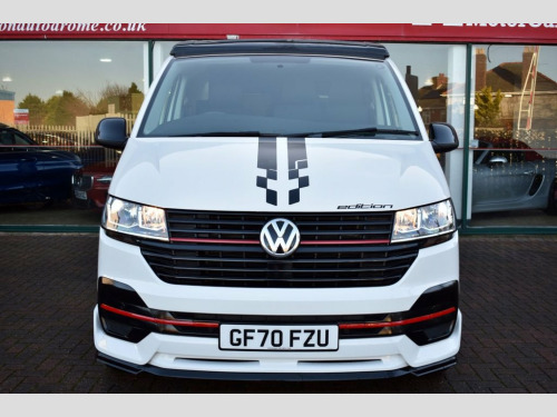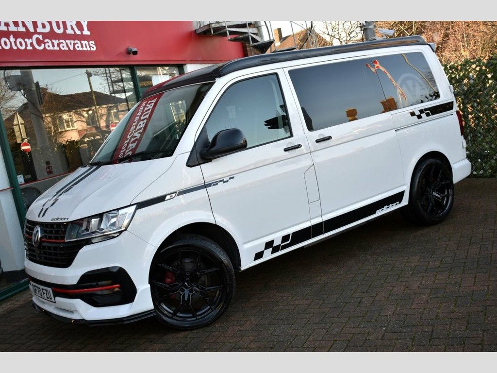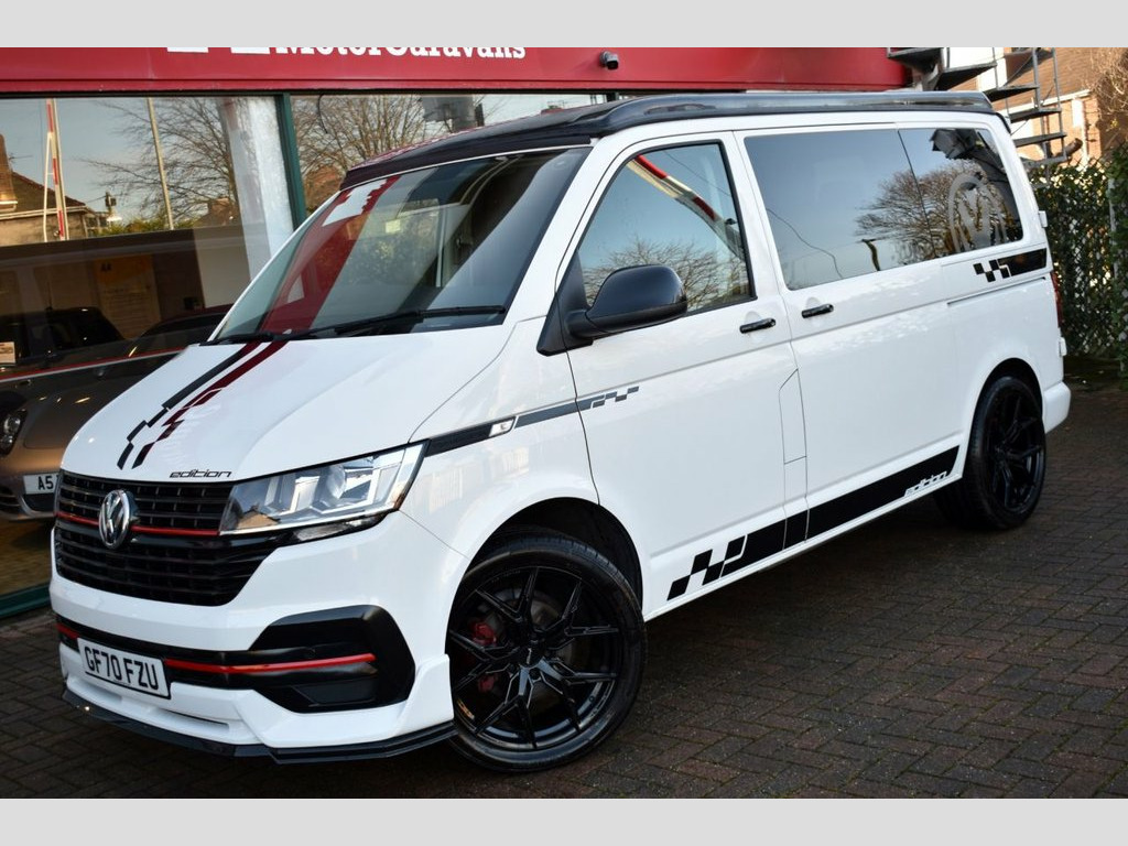 We have this exquisite, eye-catching camper conversion available now - probably the finest example we have ever had for sale. Candy White with Black leather and Red contrast stitching. It has everything you need - air conditioning, rock 'n' roll bed, pop-top roof providing further sleeping for two, twin gas hob, fridge freezer, microwave oven, solar panel, ducted heating system, LED lighting throughout, 240v hook-up, multiple interior sockets, USB-C charging ports, centre table, leisure battery, privacy glass, side windows, full sliding curtain set, swivel front seat, 20" alloy wheels, Apple CarPlay/Android Auto, folding driver seat armrests, DAB radio, multi-function steering wheel with cruise control, rear park assist, daytime running lights, height adjustable drivers seat, electric heated door mirrors, rear spoiler and more. Two owners from new with full service history - 4 records, serviced at 14,053m, 20,009m, 25,257m and 35,974m. MOT'd until 2nd October 2026. Original handbook pack and two remote keys. (Please note, selling on behalf of a member of staff).