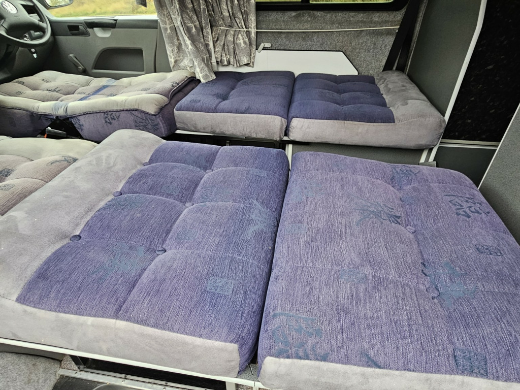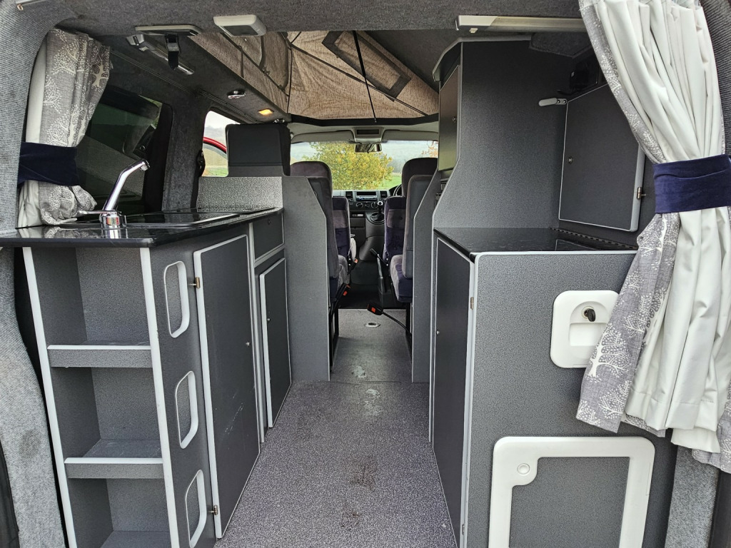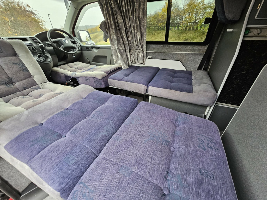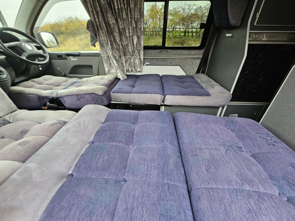 * VW Transporter , * 2.5 TDi , * Leisure drive Campervan, * Pop Top, * 6 speed manual, * 2005, * 4 Traveling seat, * 4 Berth, * Swivel passenger seat, * Swivel Toilet, * Fridge / Freezer, * Gas hobs / Sink, * Microwave, * Alloy wheels, * Towbar, * 240v hook up, * LED interior lighting, * Detachable table