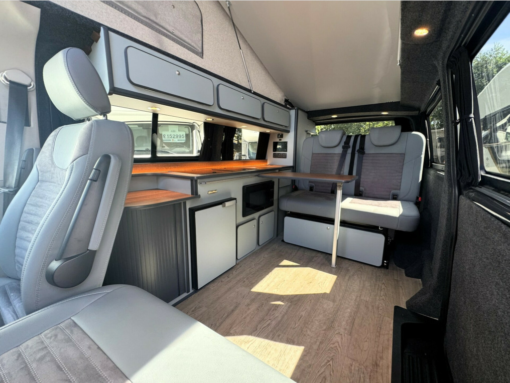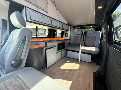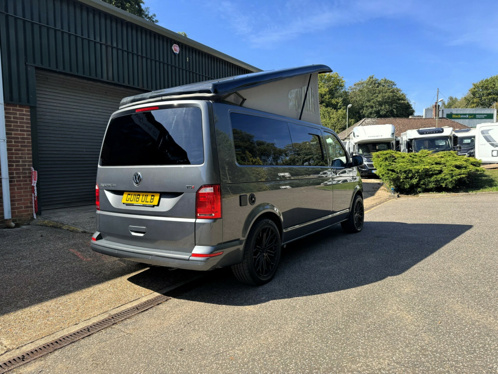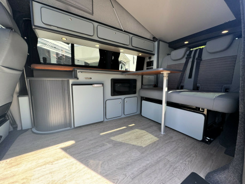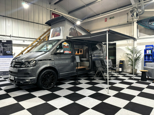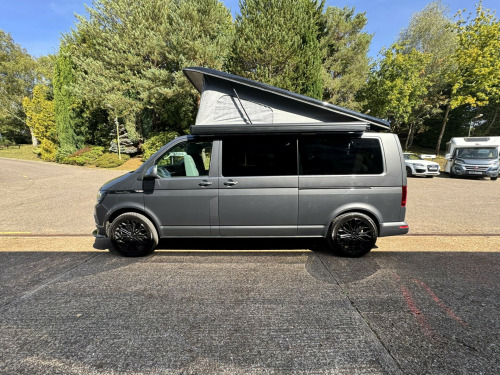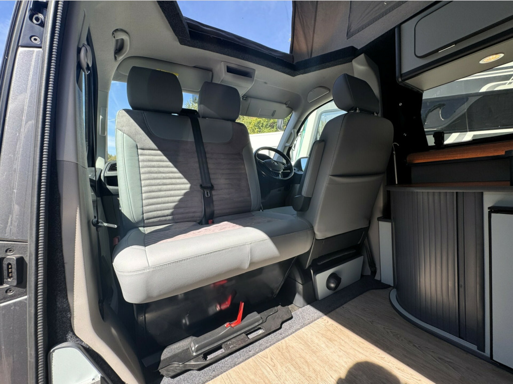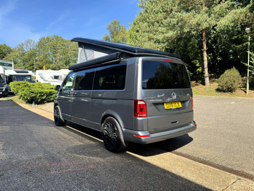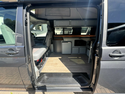 *** BRAND NEW CONVERSION *** Introducing this stunning conversion carried out by our partners at Camper King. This conversion is brand new and converted to the highest specification.Model: Monte Carlo LWB, Indium Grey colour ExteriorTotal of 5 belted seats with the front cab swivel bench seat. Half Grey leather with Alcantara inserts, 2x point isofix on rear bench seat. Titan rear bench seat allowing large boot space. Ample floor space when rear bench seat is in bed settingMain features on the camper conversion:150BHP optionDSG automatic gearboxCompressor fridge with freezer box compartmentAmple under and over counter storage cupboards2 burner gas hob and single bowl sink with glass lid cover,Ambient LED lighting throughout including in Pop-Top roof bed area,USB sockets throughout240v Main sockets throughoutBuilt in under counter microwaveUnder bench seat pull out draw unitFull LED display control panel (features battery voltages, fresh water tank level, lighting control panel)Webasto Diesel rear heating with digital control panelPhone charging docking pad stationMemory foam mattress to Pop-Top double bed (complete with bed guard)Umbrella stand holderFreshwater tank with external filler pointBody mounted external mains 240v connection socketGas locker with drop vent (space for 907 gas bottle)Large rear boot space with USB and mains 240v sockets20'' Black gloss alloy wheelsTailgateSide opening windowFull habitation curtainsFull Sargent electrical system with split charge system.Fiamma F45s wind out canopy awningFront bumper lower splitterRubber VW cab matsWindscreen quick clear selectionOPTIONS available on request:LED headlightsTow barRoof mounted solarOn board Wi-Fi optionsSide bar running railsExternal rear spoilerRear door mounted bike rack(These are just some of our available options on request, please ask for more information)Maybe this model isn't perfect for you? Build options on New and Pre owned chassis options available today. Please contact our sales team today where we will happily run through your build options or why not visit our indoor showroom today.Andrew James Motorhomes are now the proud Sussex dealers for the fantastic stunning brand manufacture of Camper King. This market leading campervan converter offers exceptional conversion options build to the highest standard. We are delighted to be part of this. All the new conversions come with a national backed manufacture 1 years warranty and all chassis are supplied by ourselves with a national backed market leading 1 years warranty.Disclaimer: Whilst every effort is made to ensure the accuracy of the data shown, it is not a definitive statement of specification of the vehicle and no responsibility will be accepted for errors in listing made on this site. r conditioning, bluetooth connection, door mirrors electrically foldable, half leather, manufacturer direct, rain-sensing wipers, double bed, end bedroom, hand basin, 2-burner hob, fridge freezer, microwave, side kitchen, 3 point seatbelts, power steering, cruise control, multi-function steering wheel, steering wheel reach adjustment, trip computer, abs, isofix child seat anchor points, quick-clear screen, service indicator, twin air bags, alarm, immobiliser, privacy glass, remote central locking, auto-dip rearview, electric mirrors, heated door mirrors, windscreen heating, bluetooth enabled stereo, cd player, digital radio, radio, front armrest, height adjustable drivers seat, 12v compressor fridge, 12v points, 12v usb charging points, 20, 7 speed automatic, ample storage offered, colour coded wing mirrors, diesel heating, fiamma f45 awning, fresh water onboard tank, front bumper splitter, internal fitted curtains, led lighting throughout, leisure battery, m1 type approved bed, mains 240v sockets, overhead led lighting, space for 907 gas bottle, swivel bench seat