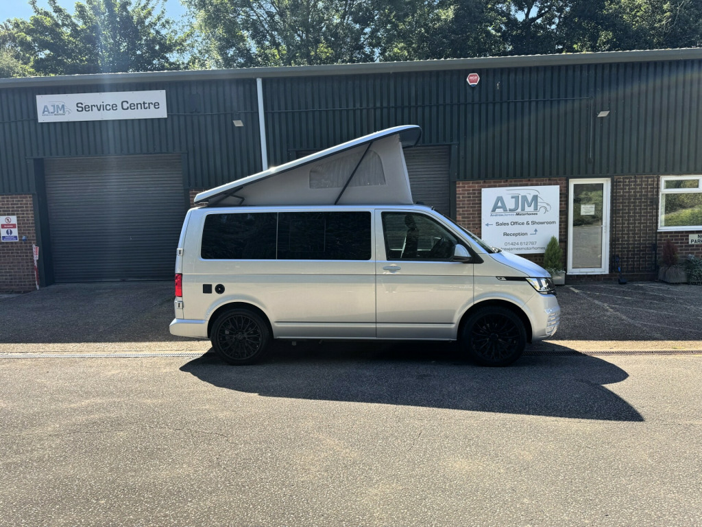 *** BRAND NEW CONVERSION *** Introducing this stunning conversion carried out by our partners at Camper King. This conversion is brand new and converted to the highest specification.Model: St Tropez SWB, Reflex Silver colour Exterior with light blue handles, mirror covers and badge inserts to match carpentry interior colour schemeTotal of 5 belted seats with the front cab swivel bench seat. Full black leather with white stitching, 2x point isofix on rear bench seat. Titan rear bench seat allowing large boot space. Main features on the camper conversion:Compressor fridge with freezer box compartmentAmple under and over counter storage cupboards2 burner gas hob and single bowl sink with glass lid cover,Ambient LED lighting throughout including in Pop-Top roof bed area,USB sockets throughout240v Main sockets throughoutUnder bench seat pull out draw unitFull LED display control panel (features battery voltages, fresh water tank level, lighting control panel)Webasto Diesel rear heating with digital control panelPhone charging docking pad stationMemory foam mattress to Pop-Top double bed (complete with bed guard)Umbrella stand holderFreshwater tank with external filler pointBody mounted external mains 240v connection socketGas locker with drop vent (space for 907 gas bottle)Large rear boot space with USB and mains 240v sockets20'' Black gloss alloy wheelsBarn doorsSide opening windowFull habitation curtainsFull Sargent electrical system with split charge system.OPTIONS available on request:Reimo railSide wind out canopy awningLED headlightsTow barRoof mounted solarOn board Wi-Fi optionsSide bar running railsExternal rear spoilerRear door mounted bike rackFront bumper lower splitter(These are just some of our available options on request, please ask for more information)Maybe this model isn't perfect for you? Build options on New and Pre owned chassis options available today. Please contact our sales team today where we will happily run through your build options or why not visit our indoor showroom today.Andrew James Motorhomes are now the proud Sussex dealers for the fantastic stunning brand manufacture of Camper King. This market leading campervan converter offers exceptional conversion options build to the highest standard. We are delighted to be part of this. All the new conversions come with a national backed manufacture 1 years warranty and all chassis are supplied by ourselves with a national backed market leading 1 years warranty.Disclaimer: Whilst every effort is made to ensure the accuracy of the data shown, it is not a definitive statement of specification of the vehicle and no responsibility will be accepted for errors in listing made on this site. r conditioning, bluetooth connection, door mirrors electrically foldable, full leather, manufacturer direct, rain-sensing wipers, double bed, hand basin, 2-burner hob, fridge freezer, side kitchen, 3 point seatbelts, electric windows, power steering, cruise control, multi-function steering wheel, parking sensors, spare wheel, steering wheel reach adjustment, traction control, trip computer, abs, isofix child seat anchor points, service indicator, twin air bags, alarm, immobiliser, remote central locking, auto-dip rearview, electric front windows, electric mirrors, heated door mirrors, bluetooth enabled stereo, digital radio, radio, front armrest, height adjustable drivers seat, body coloured bumpers, colour coded body, led 3rd brake light, spare wheel, 12v compressor fridge, 12v points, 12v usb charging points, 20, ample storage offered, diesel heating, dometic hob & sink, fresh water onboard tank, internal fitted curtains, led lighting throughout, leisure battery, m1 type approved bed, mains 240v sockets, overhead led lighting, overhead pop roof bed guard, sargent control unit, space for 907 gas bottle, swivel bench seat, 20'' Alloys