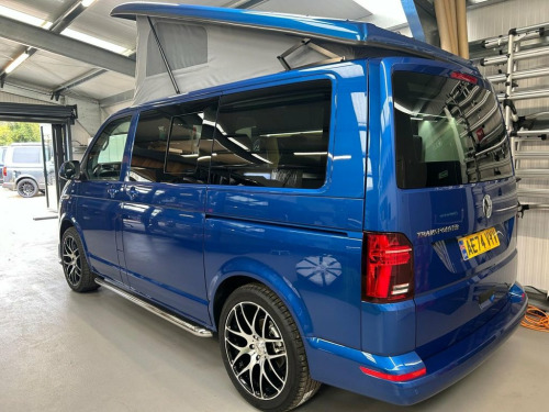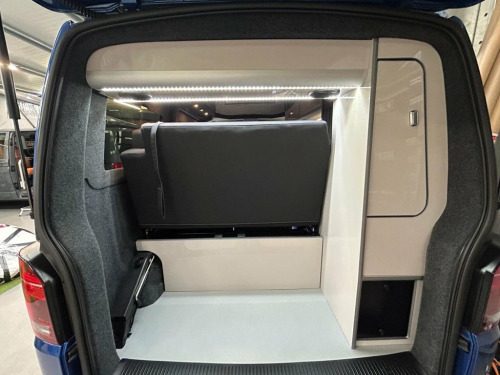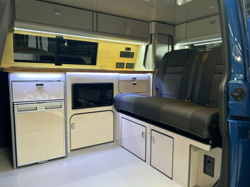 STUNNING BRAND NEW DELIVERY MILES 2024 74 REG VW T6.1 2.0 TDI 150PS DSG HIGHLINE EURO 6 4 BERTH POP TOP LUXURY CAMPER VAN CONVERSION WITH TAILGATE IN VW RAVENNA BLUE METALLIC, Balance Of 3 Year 100,000 Mile Vehicle VW Warranty, This Is Our New Luxury Kit With Soft Closed Draws And Soft Closed Cupboard Doors, Diesel Heating System With Digital Thermostat, Fitted Microwave, Vanshade Blinds, Fast Wireless Worktop Phone Charger, USB Charger Points Either Side Of The Rear Bed Plus Two Charge Points In The Roof, Fitted Rear Speakers For Rear Passengers, Courtesy Lighting In The Rear Of The Conversion Along With Inside Of The Cupboard, LV-S Body Kit, Side Bars, Brand New Correctly Load Rated 20" Alloy Wheels, RIB Bed With Isofix In Standard VW Upholstery With The Option To Upgrade To Any Colour Or Style You Like, Roof Mounted Slimline Off Grid Solar Kit With Charge Control, Under Counter Lighting Package, Free Standing Table To Use Both Inside And Outside With Its Own Table Store Within The Sliding Door, Pull Out Work Top Table, Air Conditioning, Factory Fitted Electric Windows And Mirrors, Heated Mirrors, Power Folding Mirrors, Blue Tooth, App Connect DAB Radio, Front And Rear Distance Parking Sensors, Colour Rear Park Camera, Active Cruise Control, Heated Front Screen, Front Fog Lamps, Automatic Lights And Wipers, Multi Function Leather Steering Wheel, Competitive Rates Of Finance Available Subject to Status With Finance Deals Available With Up To 10 Year Terms, Our Professio