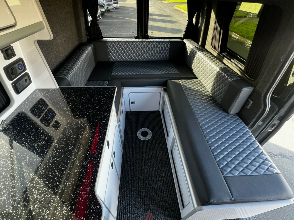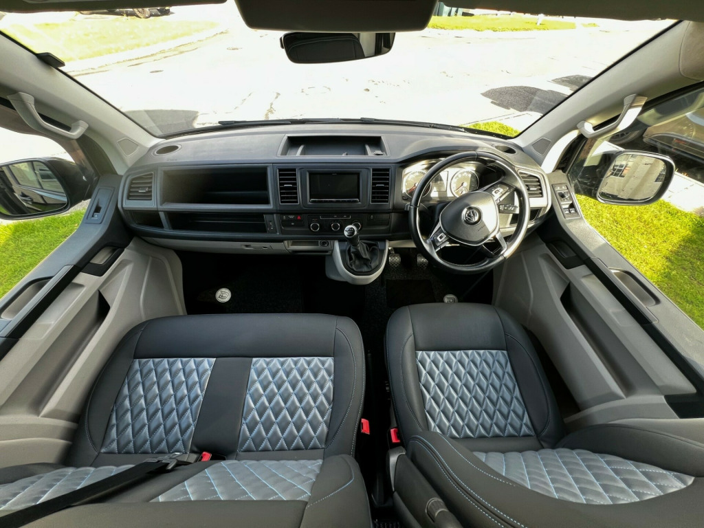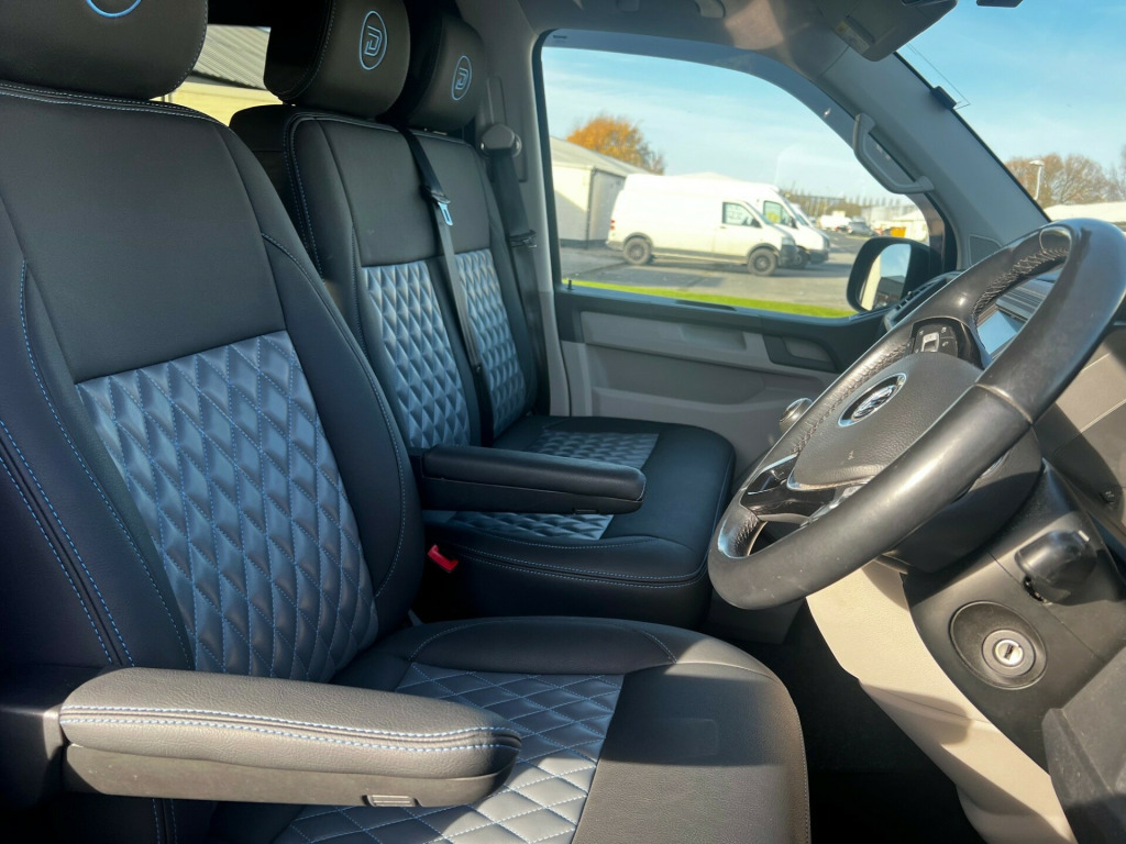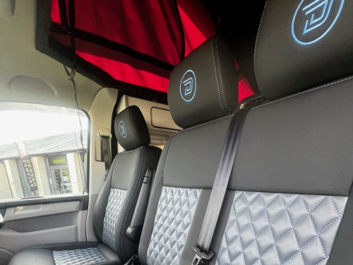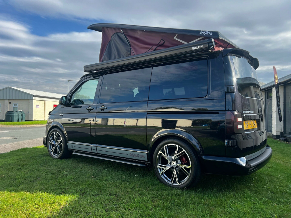 Low mileage, high spec VW T6 Denson Camper Conversion with rare U Shape Layout ready to view and drive away from our Wetherby Showroom (LS23 7FG) Originally converted by Denson Automotive to customer spec in March 2023, the vehicle is now advertised as a customer resale. Key features include:Full Dealership Service History2 KeysKenwood Touch Screen Head Unit Dash CamMulti Function Steering WheelCruise ControlParking SensorsElectric WindowsDiesel HeaterConversion Highlights:Upgraded 12v/240v set up providing additional capacity when not on hook up. U Shaped Living area Layout which converts into a 2-person sleeping areaTable stowaway brackets on rear barn door**No Cooking Hob and Sink installed** We can install an after sale extra if required. **No rear seat belts** v/240v fridge, 12v/240v power sockets & usb, 20, bonnet stone protection, carbon door handles, colour coded bumpers, denson graphics & cab mats, diesel heater, double gas hob & smev sink, premium kitchen & soft close doors, privacy glass all round, quilted leather cab & rear seating, rock & roll bed with seat belts, scenic pop top roof, side bars, sportline body styling