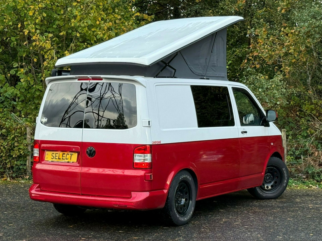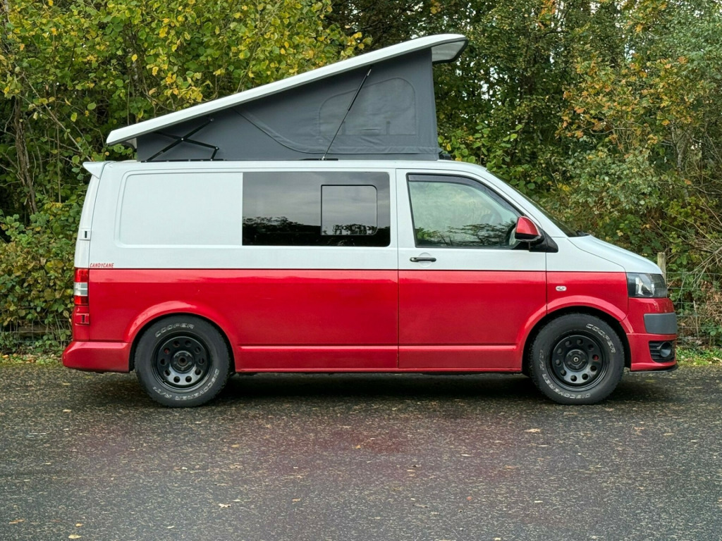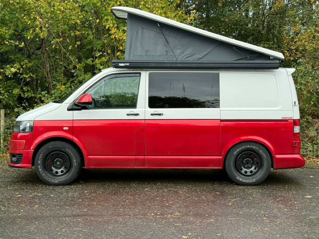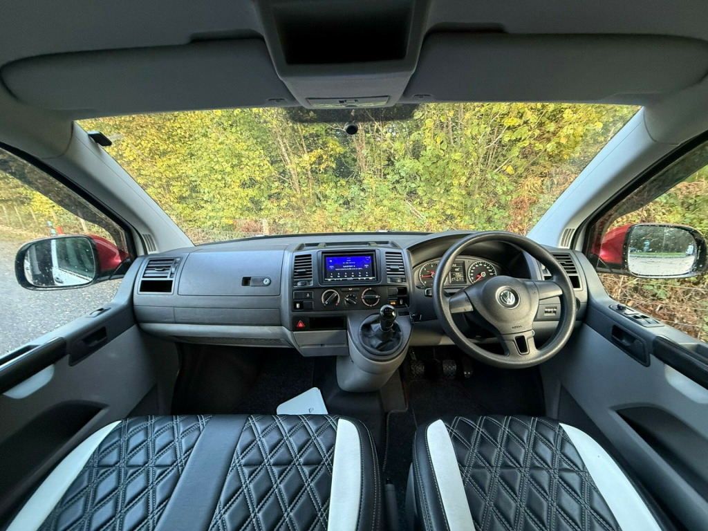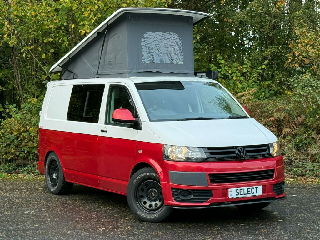 This stunning 2014 VW T28 Camper is a real head-turner in its eye-catching candy red and white two-tone finish a true classic with a modern twist! Having covered 143,098 miles, it comes with a comprehensive service history and the reassurance of a new cambelt fitted in 2023, showing it's been cared for exactly as a VW should be. The iconic pop-top roof transforms the van into a versatile 4-berth adventure vehicle, while the swivel front bench seat and rock and roll bed create a spacious and flexible living area perfect for weekends away or long-haul road trips.This T28 stands proudly on 4x4 off-road tyres paired with smart black steel wheels, giving it a bold stance and confident road presence wherever your travels take you. Whether it's the coast, the countryside, or festivals, this camper is ready to roll in style and comfort. With its blend of practicality, reliability, and standout looks, this VW is the ultimate go-anywhere, do-anything van that's sure to make every trip unforgettable. rta potti, hob, sink/drainer, 3 point seatbelts, central locking, electric windows, power steering, abs, air bag, radio, front head restraints, steel wheels, awning, barn doors, c rail, cab blinds, electric hook up, pop top, rock and roll bed, sink with folding tap, swivel front bench, remapped to 178bhp, off road tyres