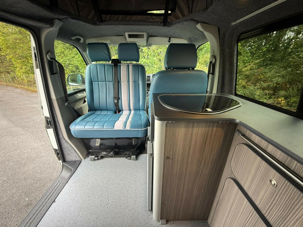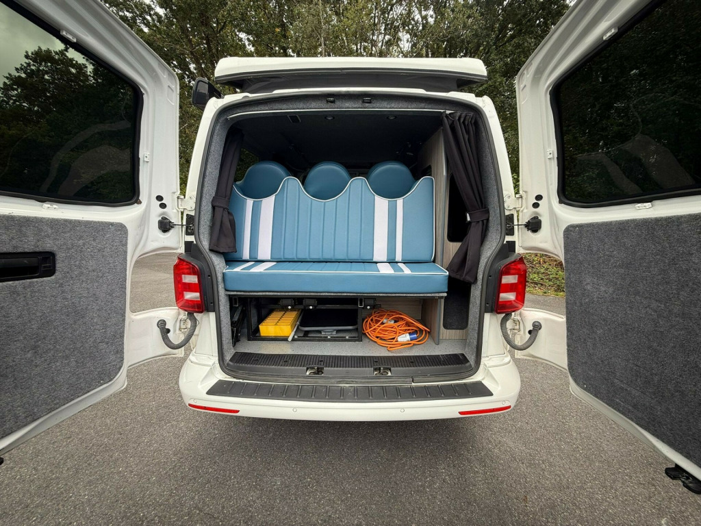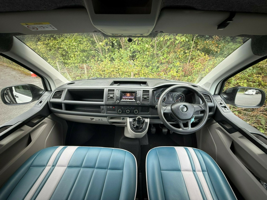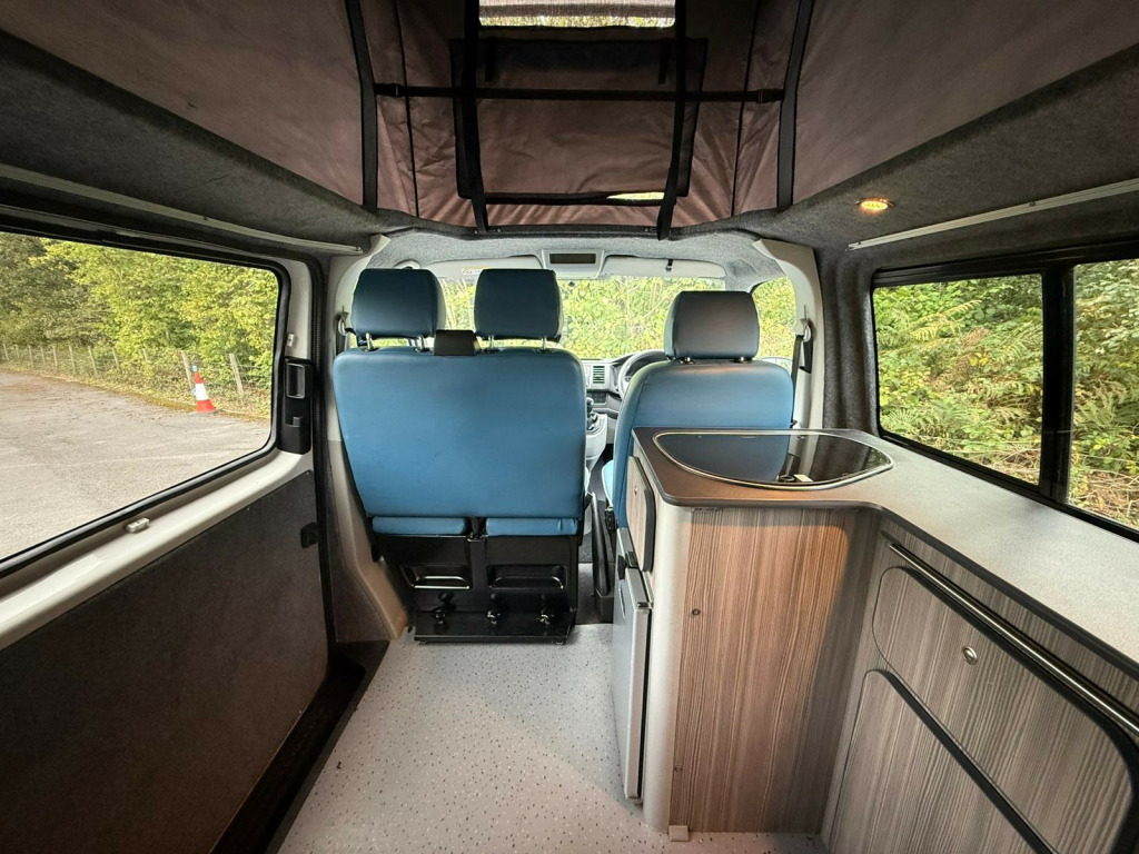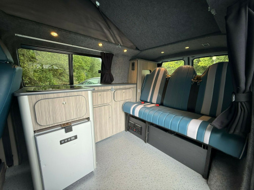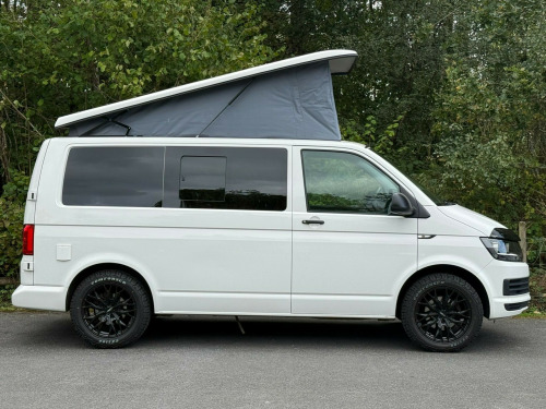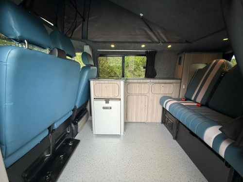 This stunning 68-reg VW Transporter Camper Conversion is ready to take you wherever adventure calls! With black alloys wrapped in rugged off-road tyres, a sleek body design, and that iconic VW style, it's built to turn heads on the open road or at the campsite. The pop-top roof opens up a world of versatility, offering extra sleeping space and standing room, while the 6 belted seats make it ideal for families or groups looking to travel in comfort and style.Inside, you'll find everything you need for life on the road a fridge freezer, hob, and sink, along with Bluetooth audio, air conditioning, and cruise control to keep every journey smooth and enjoyable. With parking sensors and an exterior awning, setup and manoeuvring are a breeze whether you're at the beach, in the countryside, or off the beaten path. This Transporter has done 120,070 miles and is packed with practicality and adventure-ready features the perfect balance of everyday usability and weekend freedom. Don't miss your chance to own this ultimate go-anywhere camper! r conditioning, bluetooth connection, full leather, end bedroom, fixed bed, wardrobe, fridge freezer, hob, side kitchen, sink/drainer, 3 point seatbelts, air conditioning, central locking, electric windows, power steering, cruise control, multi-function steering wheel, power steering, rear parking sensor, trip computer, multiple airbags, service indicator, tyre pressure monitor, central locking, immobiliser, electric mirrors, electric windows, bluetooth enabled stereo, radio, steering wheel audio controls, front armrest, front head restraints, alloy wheels, body coloured bumpers, colour coded body, solid paint, air awning, parking sensors, pop top, swivel front bench
