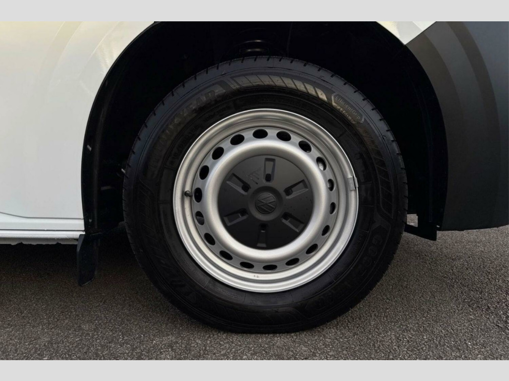 Clear White Solid Paint, Steel spare wheel, Anti-theft alarm system, interior monitoring, backup horn and towing protection, Cab seat package 10A with single seat in striped fabric incl. side airbag and 2-seater front passenger bench seat, Manually adjustable 2-way lumbar supportfor drivers seat, 6-way adjustable driver seat, Air conditioning, Rear parking sensors, Front collision warning with braking, Windshield wiper intermittent control with rain sensor for windshield wipers, 16" chassis with 16" brake system, Radiator grille with 2 chrome trims, Transporter nameplate on the rear fender, Automatic headlight control, leaving home and manual coming home feature, Electronic stability control, ABS, ASR with deactivation button, hill start assist and brake assist system, Start/stop system with regenerative breaking, Cross wind assist, Electromechanical speed sensitive power steering, height and longitudinally adjustable steering column, Left convex exterior mirror, Right convex exterior mirror, 3 point height adjustable seat belts on outer seats cab with electric pretensioners, Driver and front passenger airbag with front passenger airbag deactivation, Single tone horn, Warning buzzer and light for driver and front passenger seat belt not fastened, Without child safety lock in passenger compartment, Mobile phone interface, 2 USB interfaces type C in dashboard, 4 speakers with 2 tweeters and 2 woofers, Composition colour radio with 6.5" touchscreen, Digital radio reception (DAB+), Closing rear wing door with unlatching from the inside, Rear wing doors without window apertures, Dimmable illuminated instruments, Driver alert with Multi-function display plus, Multi function display plus with black and white display, eCall emergency system, Forward collision warning front assist with autonomous emergency braking, Diesel particulate filter, Dust/pollen filter, Auto dimming breakaway interior rear view mirror, Comfort headliner in cab, hardboard roof trim in passenger and load compartment, Glove compartment with illumination, High partition, Rubber floor covering in cab, Standard lower part dashboard in palladium, Storage compartments on cab seats and reading light, Front and rear left without window closed side panel in load compartment, Interior plastic loading edge protection, Without right side window apertures in passenger and load compartment, Front seats on the right in 1st row of seat, Manual adjustable lumbar support for right single seat in 1st row seats, Anti theft alarm system with interior monitoring in cab, backup horn and towing protection, Lockable wheel bolts
