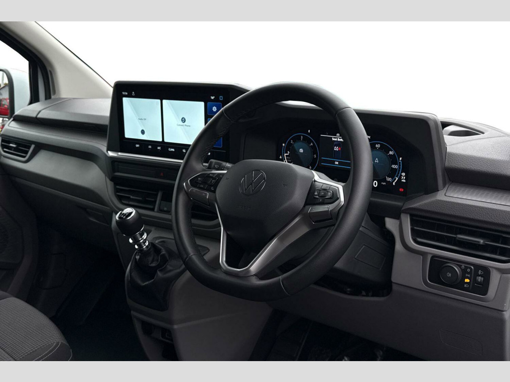 The Volkswagen Transporter TDI T28 Commerce Plus is designed for practicality and efficiency. Its low insurance group rating indicates that running costs are kept to a minimum, making it an economical option. The 2.0 TDI engine's power output of 148 bhp positions it favourably against other vehicles in its class, offering a strong performance. This short wheelbase (SWB) 5 door model provides a versatile platform, suitable for both commercial use and personal transport, all backed by Volkswagen's renowned build quality. Solid paint-Clear White, LED headlights with separate LED daytime running lights, Single sliding side load door, Rear wing cargo doors, Parking sensors front + rear, Rear view camera, High metal partition without window, Rear wing doors, Sliding door on front passenger side, 3 seat cab package - Transporter, 5 Plus Promise Pack inc. the remainder of:, 5 years warranty✔, 5 Years Roadside Assist✔, 5 Services✔, 3 MOTs✔, (all from date of registration), Solid - Clear White, Striped fabric - Titanium/Palladium black, 16" steel wheels with hub caps, Steel spare wheel with jack and without tyre pressure sensor, Heat reflecting side window glass, Body coloured door handles, Mud flaps front and rear, Rear Transporter nameplate in black grained decorative trim, Vehicle opening configuration 1x 1st row of seats, 2x all doors, Electronic stability control, ABS, ASR with deactivation button, hill start assist and brake assist system, Cruise control, Electromechanical speed sensitive power steering, height and longitudinally adjustable steering column, Lane assist, Wrong way driver warning, Driver and front passenger airbag with front passenger airbag deactivation, Dual tone horn, Front and curtain airbags for driver and front passenger, Seat belt pretensioner for driver seat, Apple CarPlay and Android Auto, 4 speakers - 2x dashboard, 2x cab doors, 12" digital drivers display, 13" touchscreen infotainment display with wireless app connect and DAB radio, 5G Modem, Dynamic road sign display, eCall emergency system, Preparation of VW connect and connect plus, Alternator - 230A, 2x 15-W USB data/charging ports in dashboard and 1x USB-C, 1x USB-A center bottom, 3 spoke leather wrapped multi function steering wheel, Black plastic scuff plate for sliding door in cargo without illumination, Leatherette gear lever, Narrow centre console with cup holder and compartment for mobile phone, Overhead storage compartment, Roof grab handle on front passenger side, Rubber floor covering in cab, Striped fabric upholstery, Cabin interior lighting, 2x LED lights in load compartment, Lashing rings for reinforced floor covering, Without passenger seats in load compartment, 4 way height and tilt adjustable head restraints, Anti theft alarm system with interior monitoring in cab, backup horn and towing protection, Electronic immobiliser, Preparation for alcohol ignition interlock, 5+ Promise