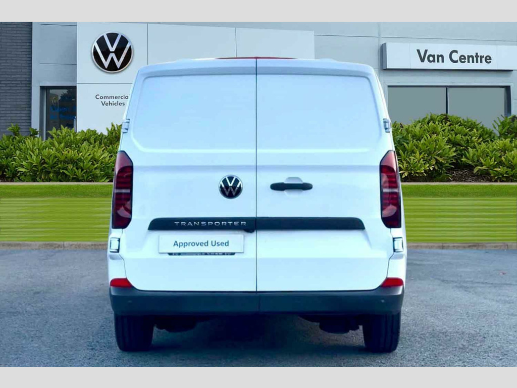 Clear White, Anti-theft alarm system, interior monitoring, backup horn and towing protection, High-Gloss Black exterior mirror housings and door handles, Exterior mirrors, power-adjustable, heated and power folding via vehicle interior, Black grained bumpers in front and rear, Keyless Start with SAFELOCK, Air Conditioning, Rubber floor covering in cab, Parking sensors front and rear, Rear view camera, Green tinted heat insulating glass in cab and passenger compartment, Heated front windscreen, Windshield wiper intermittent control with rain sensor for windshield wipers, 16" chassis with 16" brake system, Radiator grille with 2 chrome trims, Transporter nameplate on the rear fender, Automatic headlight control, leaving home and manual coming home feature, Front fog lamps with cornering light, Electronic stability control, ABS, ASR with deactivation button, hill start assist and brake assist system, Start/stop system with regenerative breaking, Adaptive cruise control, Cross wind assist, Electromechanical speed sensitive power steering, height and longitudinally adjustable steering column, Left convex exterior mirror, Power adjustable and heated exterior mirrors, Power folding adjustable door mirrors with separately heated, Right convex exterior mirror, 3 point height adjustable seat belts on outer seats cab with electric pretensioners, Driver and front passenger airbag with front passenger airbag deactivation, Single tone horn, Warning buzzer and light for driver and front passenger seat belt not fastened, Without child safety lock in passenger compartment, Mobile phone interface, 2 USB interfaces type C in dashboard, 4 speakers with 2 tweeters and 2 woofers, Composition colour radio with 6.5" touchscreen, Digital radio reception (DAB+), Volkswagen app connect, Closing rear wing door with unlatching from the inside, Rear wing doors without window apertures, Dimmable illuminated instruments, Driver alert with Multi-function display plus, Multi function display plus with black and white display, eCall emergency system, Forward collision warning front assist with autonomous emergency braking, Diesel particulate filter, Dust/pollen filter, 3 spoke leather wrapped multi function steering wheel, Auto dimming breakaway interior rear view mirror, Comfort headliner in cab, hardboard roof trim in passenger and load compartment, Glove compartment with illumination, High partition, Refrigerant R134a, Rubber floor covering in cab, Standard lower part dashboard in palladium, Storage compartments on cab seats and reading light, LED Interior lighting in load and passenger compartment, Front and rear left without window closed side panel in load compartment, Interior plastic loading edge protection, Without right side window apertures in passenger and load compartment, Comfort pack - Transporter, Exterior pack without fog light- Transporter, Non smoker pack - Transporter, Front seats on the right in 1st row of seat, Manual adjustable lumbar support for right single seat in 1st row seats, Anti theft alarm system with interior monitoring in cab, backup horn and towing protection, Lockable wheel bolts, 16" Clayton alloy wheels