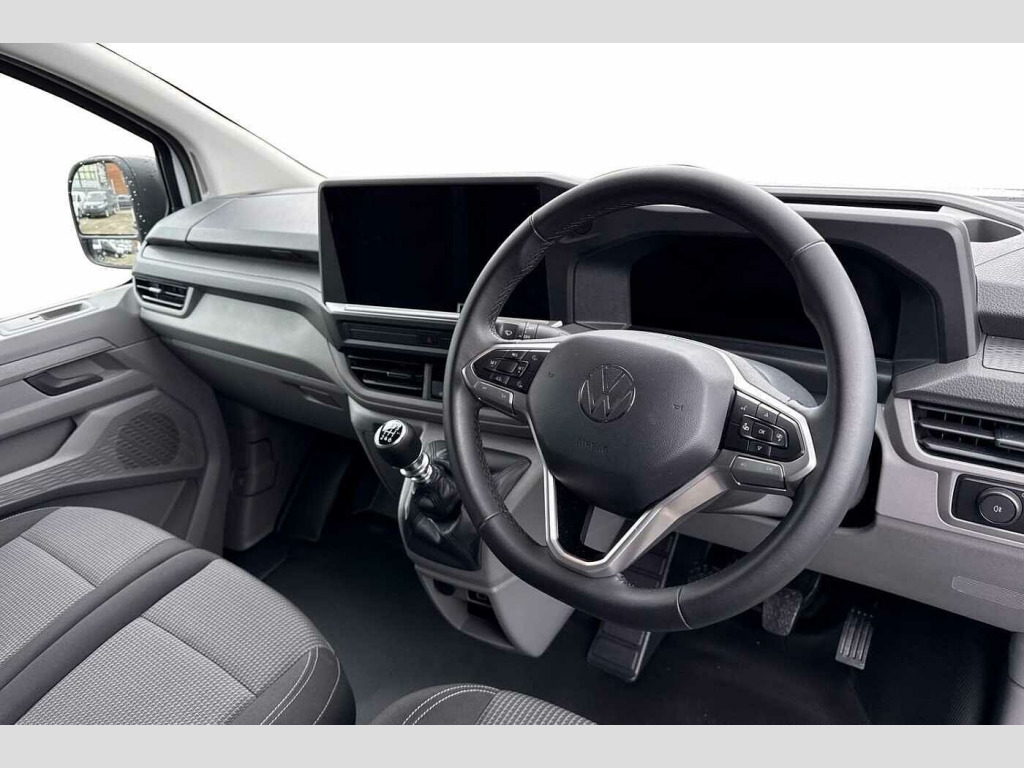Finished in crisp Clear White solid paint, this Volkswagen Transporter T28 Commerce Plus SWB combines powerful performance, professional styling, and practical features that make it an ideal choice for business or lifestyle use. Powered by a strong and efficient 2.0 TDI engine producing 150 PS, paired with a 6-speed manual gearbox, this short-wheelbase model delivers a confident and refined driving experience whether you're in town or out on the motorway. This well-equipped Commerce Plus model includes front and rear parking sensors and a rear-view camera, taking the stress out of reversing and tight-space manoeuvring. Inside the cabin, connectivity and entertainment are covered with App-Connect and a DAB digital radio, ensuring you stay connected and entertained on every journey. For added peace of mind, this Transporter features an anti-theft alarm system, while Keyless Start with SAFELOCK adds both convenience and security. Practical additions such as front mud flaps help protect the bodywork and keep things clean on the move. Solid paint, Rear wing doors, 3 seat cab package - Transporter, Solid - Clear white, Heat reflecting side window glass, Body coloured door handles, Mud flaps front and rear, Rear Transporter nameplate in black grained decorative trim, Vehicle opening configuration 1x 1st row of seats, 2x all doors, Electronic stability control, ABS, ASR with deactivation button, hill start assist and brake assist system, Cruise control, Electromechanical speed sensitive power steering, height and longitudinally adjustable steering column, Lane assist, Wrong way driver warning, Driver and front passenger airbag with front passenger airbag deactivation, Dual tone horn, Front and curtain airbags for driver and front passenger, Seat belt pretensioner for driver seat, Apple CarPlay and Android Auto, 4 speakers - 2x dashboard, 2x cab doors, 12" digital drivers display, 13" touchscreen infotainment display with wireless app connect and DAB radio, 5G Modem, Dynamic road sign display, eCall emergency system, Preparation of VW connect and connect plus, Alternator - 230A, 2x 15-W USB data/charging ports in dashboard and 1x USB-C, 1x USB-A center bottom, 3 spoke leather wrapped multi function steering wheel, Black plastic scuff plate for sliding door in cargo without illumination, Leatherette gear lever, Narrow centre console with cup holder and compartment for mobile phone, Overhead storage compartment, Roof grab handle on front passenger side, Rubber floor covering in cab, Striped fabric upholstery, Cabin interior lighting, 2x LED lights in load compartment, Lashing rings for reinforced floor covering, Without passenger seats in load compartment, 4 way height and tilt adjustable head restraints, Anti theft alarm system with interior monitoring in cab, backup horn and towing protection, Electronic immobiliser, Preparation for alcohol ignition interlock, 5+ Promise