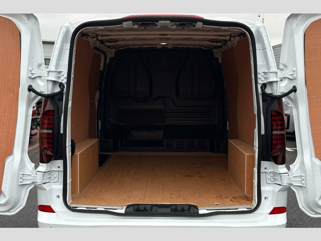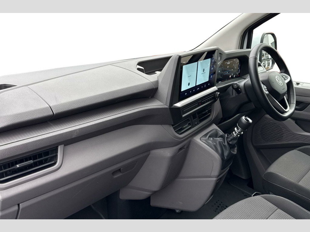 The Commerce Plus trim level ensures a well equipped experience, and its Euro 6 emission classification means it meets current environmental standards. Furthermore, this Transporter benefits from a low insurance group, indicating that running costs are likely to be more affordable compared to similar vehicles. This combination of manufacturer approval, efficient performance, and cost saving highlights makes it a sensible choice. Solid paint-Clear White, Body coloured bumpers, Body coloured mirrors, Body coloured door handles, LED headlights with separate LED daytime running lights, Single sliding side load door, Rear wing cargo doors, Parking sensors front + rear, Rear view camera, High metal partition without window, Rear wing doors, Sliding door on front passenger side, 3 seat cab package - Transporter, 5 Plus Promise Pack inc. the remainder of:, 5 years warranty✔, 5 Years Roadside Assist✔, 5 Services✔, 3 MOTs✔, (From date of registration), Solid - Clear White, Striped fabric - Titanium/Palladium black, 16" steel wheels with hub caps, Steel spare wheel with jack and without tyre pressure sensor, Heat reflecting side window glass, Body coloured door handles, Mud flaps front and rear, Rear Transporter nameplate in black grained decorative trim, Vehicle opening configuration 1x 1st row of seats, 2x all doors, Electronic stability control, ABS, ASR with deactivation button, hill start assist and brake assist system, Cruise control, Electromechanical speed sensitive power steering, height and longitudinally adjustable steering column, Lane assist, Wrong way driver warning, Driver and front passenger airbag with front passenger airbag deactivation, Dual tone horn, Front and curtain airbags for driver and front passenger, Seat belt pretensioner for driver seat, Apple CarPlay and Android Auto, 4 speakers - 2x dashboard, 2x cab doors, 12" digital drivers display, 13" touchscreen infotainment display with wireless app connect and DAB radio, 5G Modem, Dynamic road sign display, eCall emergency system, Preparation of VW connect and connect plus, Alternator - 230A, 2x 15-W USB data/charging ports in dashboard and 1x USB-C, 1x USB-A center bottom, 3 spoke leather wrapped multi function steering wheel, Black plastic scuff plate for sliding door in cargo without illumination, Leatherette gear lever, Narrow centre console with cup holder and compartment for mobile phone, Overhead storage compartment, Roof grab handle on front passenger side, Rubber floor covering in cab, Striped fabric upholstery, Cabin interior lighting, 2x LED lights in load compartment, Lashing rings for reinforced floor covering, Without passenger seats in load compartment, 4 way height and tilt adjustable head restraints, Anti theft alarm system with interior monitoring in cab, backup horn and towing protection, Electronic immobiliser, Preparation for alcohol ignition interlock, 5+ Promise