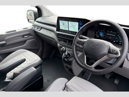 The Transporter T28 Commerce Pro is designed for practicality and efficiency. Its low insurance group rating makes it an economical choice for many drivers, indicating it is likely to be less expensive to insure than comparable vehicles. This combination of Volkswagen's renowned engineering, practical features, and cost effective ownership makes this Transporter a compelling option. Graphite Dust Grey-Metallic Paint, Single sliding side load door, LED main headlight, LED daytime running light, cornering light and poor weather light, LED rear lights with exclusive light signature, Rear loading cargo doors without windows, Power folding/Heated external mirrors with puddle lights, Full height bulkhead, 2 seater cab pack, Electric front sports seats-Heated, Illuminated scuff plates, Arm rests for both front seats, Heated leatherette-wrapped multi-function steering wheel, Style interior trim pack - Transporter, 2 Seater Cab Pack, Rear loading cargo doors-without windows, Single sliding side load door, Graphite Dust Grey-Metallic Paint, 17" 'Le Mans' alloy wheels in High Gloss Black, Temporary spare steel wheel, Heat reflecting side window glass, Body coloured door handles, Mud flaps front and rear, Rear Transporter nameplate in black grained decorative trim, Vehicle opening configuration 1x driver door, 2x all doors with additional CEP locking, Electromechanical brake booster, Electronic stability control, ABS, ASR with deactivation button, hill start assist and brake assist system, Adaptive cruise control, Electromechanical speed sensitive power steering, height and longitudinally adjustable steering column, Lane and blind spot assist with exit warning system, Wrong way driver warning, Electrically heated, adjustable and folding door mirrors, Driver and front passenger airbag with front passenger airbag deactivation, Dual tone horn, Front and curtain airbags for driver and front passenger, Seat belt pretensioner for driver seat, Apple CarPlay and Android Auto, Wireless mobile phone charging, 12" digital drivers display, 13" touchscreen infotainment display with wireless app connect and DAB radio, 5G Modem, Dynamic road sign display, eCall emergency system, Preparation of VW connect and connect plus, Alternator - 230A, 2x 15-W USB data/charging ports in dashboard and 1x USB-C, 1x USB-A center bottom, Additional 15W USB charging ports - 1x storage compartment front of steering wheel, 1x glove compartment, 1x interior rearview mirror, Black plastic scuff plate for sliding door in cargo without illumination, Glasses compartment in driver side roof, Grab handle on A-pillar passenger side, Illuminated lockable glovebox, Leatherette gear lever, Narrow centre console with cup holder and compartment for mobile phone, Overhead storage compartment, Rubber floor covering in cab, Striped fabric upholstery, Cabin interior lighting, 12V outlet in centre console and 12V outlet on rear right D-pillar, 2x LED lights in load compartment, 3x additional super bright LED lights in load compartment, Lashing rings for reinforced floor covering, Without passenger seats in load compartment, Exterior pack 2 - Transporter, 4 way height and tilt adjustable head restraints, Anti theft alarm system with interior monitoring in cab, backup horn and towing protection, Electronic immobiliser, Lockable wheel bolts, Preparation for alcohol ignition interlock, 5+ Promise