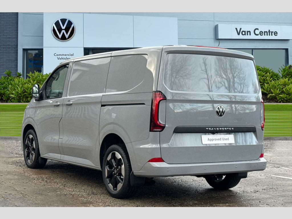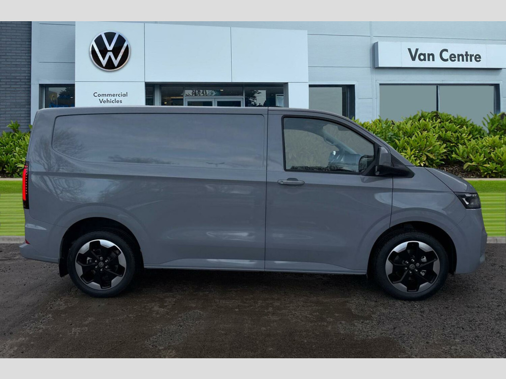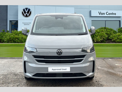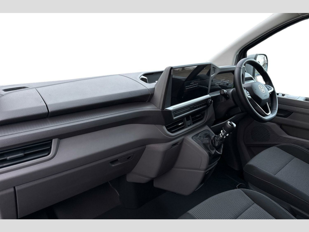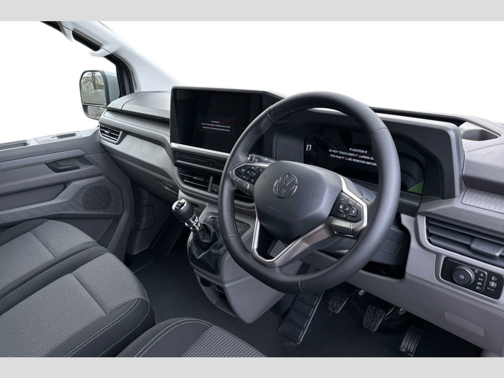 Volkswagen Transporter 2.0 TDI 110 Commerce Pro Van Solid paint, LED rear lights with exclusive light signature, Keyless start with safelock, Rear tailgate, 3 seat cab package heated - Transporter, Solid - Stone Grey, Goodyear summer tyres, 19" Indianapolis black diamond turned alloy wheels, Heat reflecting side window glass, Body colour bumpers, Body coloured door handles, Body coloured radiator grille, Mud flaps front and rear, Rear Transporter nameplate in black grained decorative trim, Vehicle opening configuration 1x 1st row of seats, 2x all doors, Electromechanical brake booster, Electronic stability control, ABS, ASR with deactivation button, hill start assist and brake assist system, Adaptive cruise control, Electromechanical speed sensitive power steering, height and longitudinally adjustable steering column, Lane and blind spot assist with exit warning system, Wrong way driver warning, Body coloured door mirrors, Electrically heated, adjustable and folding door mirrors, Driver and front passenger airbag with front passenger airbag deactivation, Dual tone horn, Front and curtain airbags for driver and front passenger, Seat belt pretensioner for driver seat, Apple CarPlay and Android Auto, Wireless mobile phone charging, 12" digital drivers display, 13" touchscreen infotainment display with wireless app connect and DAB radio, 5G Modem, Dynamic road sign display, eCall emergency system, Preparation of VW connect and connect plus, Alternator - 230A, 2x 15-W USB data/charging ports in dashboard and 1x USB-C, 1x USB-A center bottom, 5 additional USB-C charging ports, Black plastic scuff plate for sliding door in cargo without illumination, Glasses compartment in driver side roof, Grab handle on A-pillar passenger side, Illuminated lockable glovebox, Leatherette gear lever, Narrow centre console with cup holder and compartment for mobile phone, Overhead storage compartment, Rubber floor covering in cab, Striped fabric upholstery, Cabin interior lighting, 12V outlet in centre console and 12V outlet on rear right D-pillar, 2x LED lights in load compartment, 3x additional super bright LED lights in load compartment, Lashing rings for reinforced floor covering, Without passenger seats in load compartment, 4 way height and tilt adjustable head restraints, Anti theft alarm system with interior monitoring in cab, backup horn and towing protection, Electronic immobiliser, Lockable wheel bolts, Preparation for alcohol ignition interlock, 5+ Promise