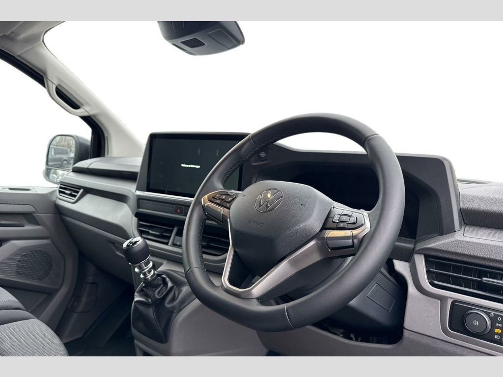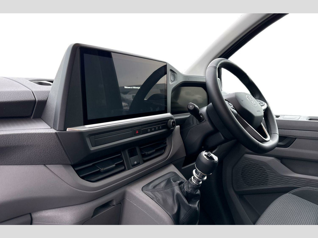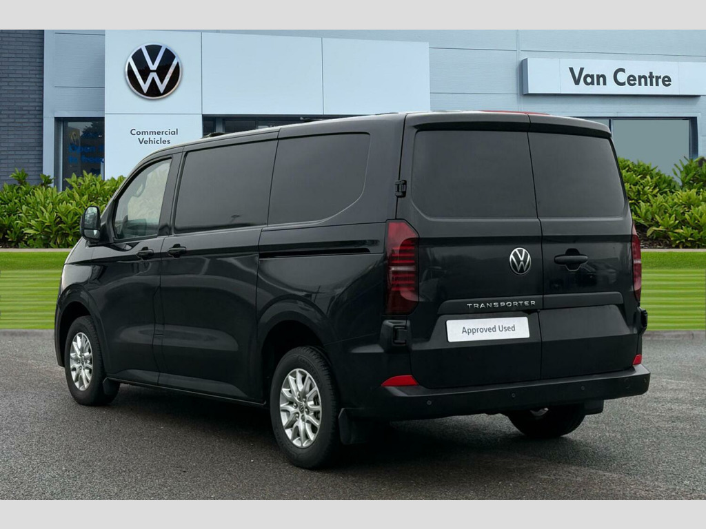 Midnight Black Metallic Paint, Navigation system, 16" Montreal Alloy Wheels, Wooden floor in the load compartment, 3 folding roof rack system, Exterior mirrors, power-adjustable, heated and power folding via vehicle interior, Steel spare wheel, Single-zone air conditioning system with automatic control in cab, Parking sensors front and rear, with manouver braking, Rear view camera, Adaptive Cruise control system with predictive speed limiter, Keyless Start with SAFELOCK, Heated windscreen, Wireless mobile phone charging, Heated seats, individually controllable, Green tinted heat insulating glass in cab and passenger compartment, Heated front windscreen, Windshield wiper intermittent control with rain sensor for windshield wipers, 16" chassis with 16" brake system, Radiator grille with 2 chrome trims, Transporter nameplate on the rear fender, Automatic headlight control, leaving home and manual coming home feature, Front fog lamps with cornering light, Electronic stability control, ABS, ASR with deactivation button, hill start assist and brake assist system, Start/stop system with regenerative breaking, Adaptive cruise control, Cross wind assist, Electromechanical speed sensitive power steering, height and longitudinally adjustable steering column, Left convex exterior mirror, Power adjustable and heated exterior mirrors, Power folding adjustable door mirrors with separately heated, Right convex exterior mirror, 3 point height adjustable seat belts on outer seats cab with electric pretensioners, Driver and front passenger airbag with front passenger airbag deactivation, Single tone horn, Warning buzzer and light for driver and front passenger seat belt not fastened, Without child safety lock in passenger compartment, Mobile phone interface, 2 USB interfaces type C in dashboard, 4 speakers with 2 tweeters and 2 woofers, Composition colour radio with 6.5" touchscreen, Digital radio reception (DAB+), Volkswagen app connect, Closing rear wing door with unlatching from the inside, Rear wing doors without window apertures, Dimmable illuminated instruments, Driver alert with Multi-function display plus, Multi function display plus with black and white display, eCall emergency system, Forward collision warning front assist with autonomous emergency braking, Diesel particulate filter, Dust/pollen filter, 3 spoke leather wrapped multi function steering wheel, Auto dimming breakaway interior rear view mirror, Comfort headliner in cab, hardboard roof trim in passenger and load compartment, Glove compartment with illumination, High partition, Refrigerant R134a, Rubber floor covering in cab, Standard lower part dashboard in palladium, Storage compartments on cab seats and reading light, LED Interior lighting in load and passenger compartment, Front and rear left without window closed side panel in load compartment, Interior plastic loading edge protection, Without right side window apertures in passenger and load compartment, Comfort pack - Transporter, Exterior pack without fog light- Transporter, Non smoker pack - Transporter, Front seats on the right in 1st row of seat, Manual adjustable lumbar support for right single seat in 1st row seats, Anti theft alarm system with interior monitoring in cab, backup horn and towing protection, Lockable wheel bolts, 16" Clayton alloy wheels